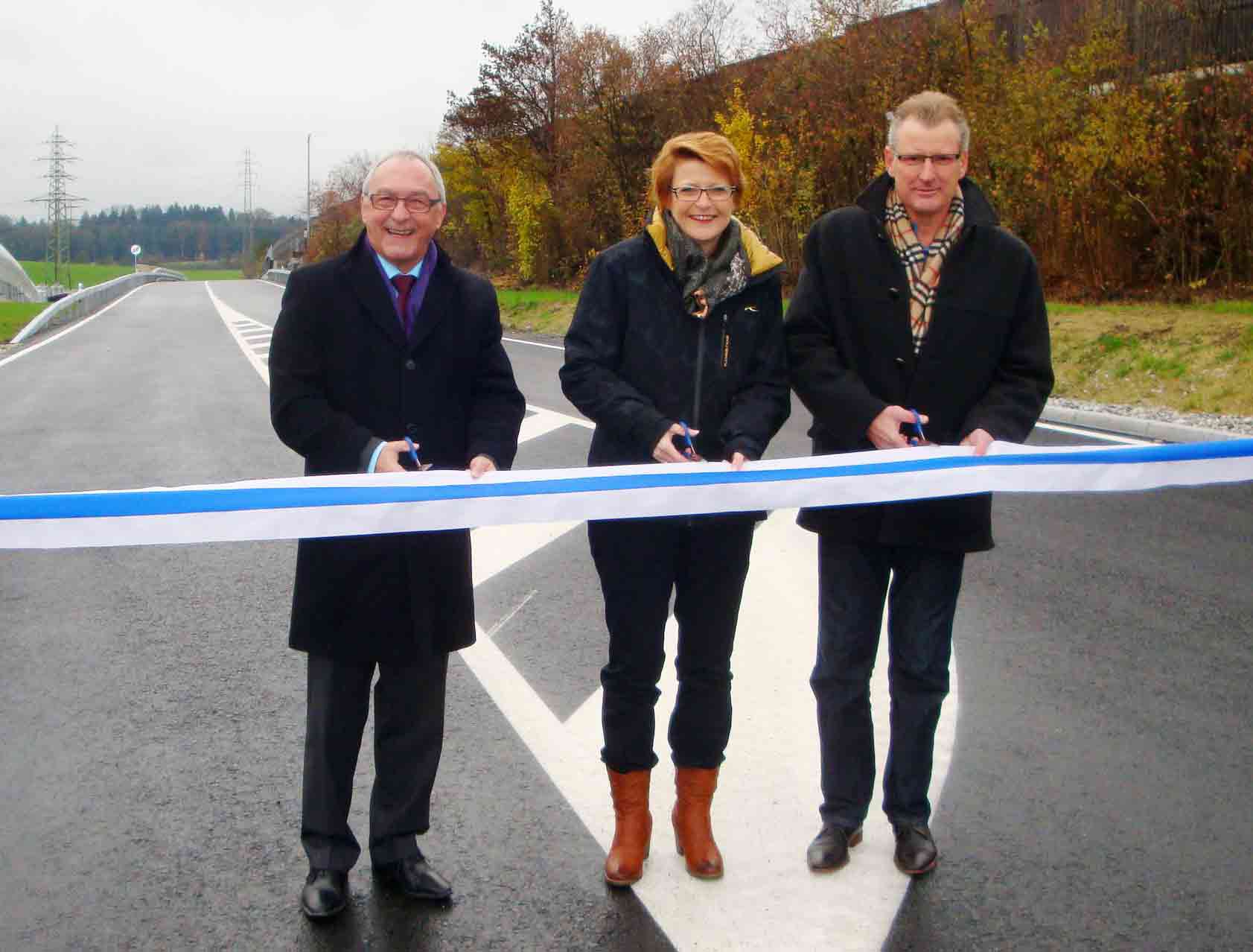 Der Streckenausbau von Grindel nach Bibersee habe in der politischen Diskussion nie grosse Wellen geworfen, so Baudirektor Heinz Tännler. Dennoch sei das Bauwerk für den Kanton ein wichtiger Beitrag zur Verbesserung der Verkehrsinfrastruktur. Dem stimmten auch die Gemeindepräsidentin von Steinhausen, Barbara Hofstetter, und der Chamer Gemeinderat Markus Baumann zu. Gerade für die stark wachsenden Arbeitsplatzgebiete Sumpf und Städtlerallmend im Grenzbereich von Steinhausen und Cham sei es wichtig, über eine gute Erschliessung zu verfügen. Hofstetter: "Mit der Bündelung des Verkehrs auf der Achse Grindel - Bibersee können wir zugleich Wohngebiete und Weiler entlasten sowie den Langsamverkehr fördern. Insofern ist das Bauwerk ein Mehrzweck-Instrument, das der Standortqualität unserer beiden Gemeinden helfen wird." Markus Baumann hob bei dieser Gelegenheit die Tatsache hervor, dass die beiden Gemeinden von Beginn weg in die Planung des Kantons miteinbezogen wurden.