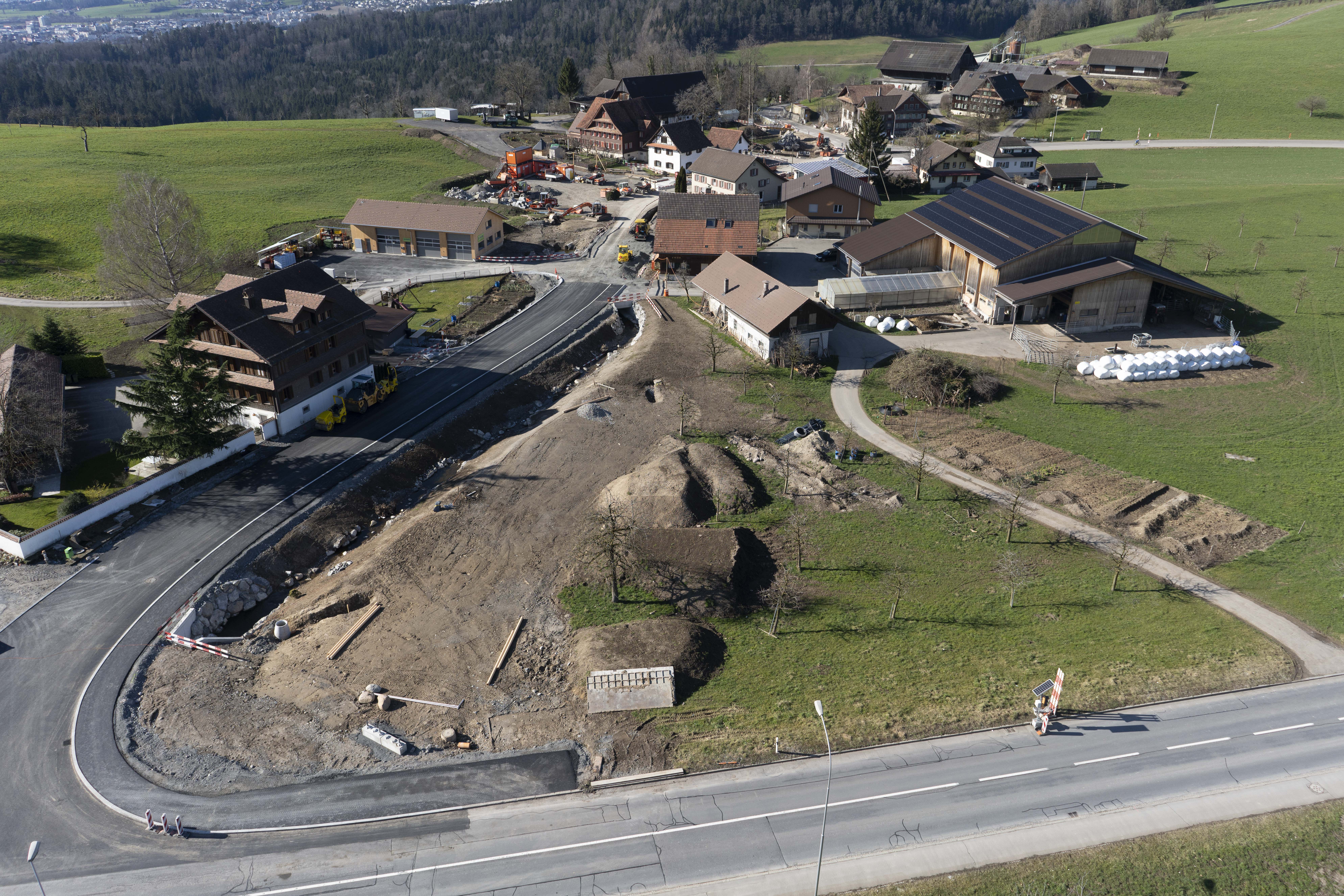 - Aus der Vogelperspektive ist der Baufortschritt an der Hinterburgstrasse in Neuheim besonders gut zu erkennen.