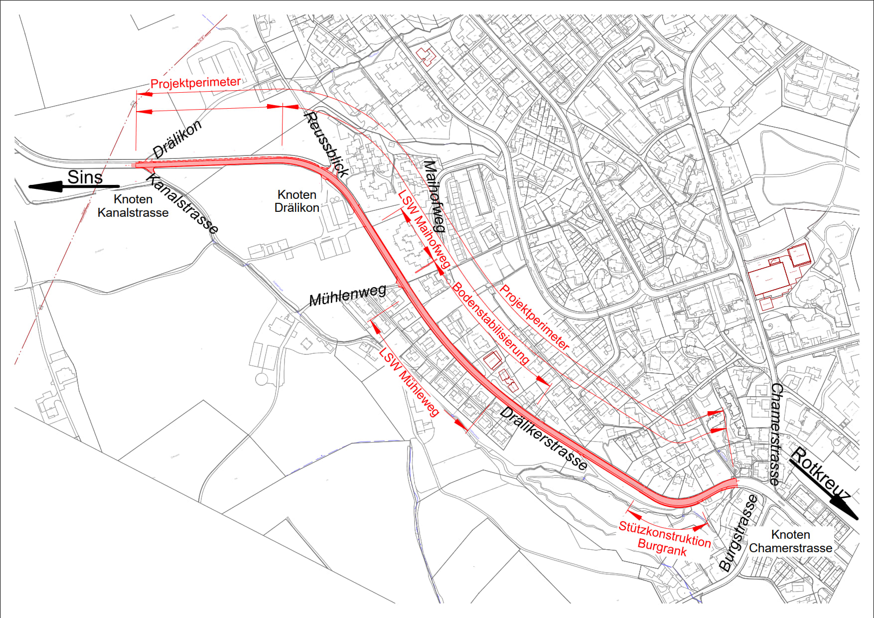 - Übersichtsplan zur Sanierung der Drälikerstrasse in Hünenberg