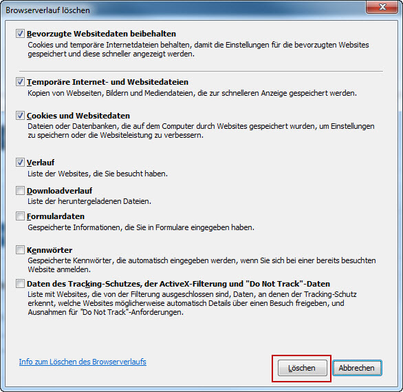 Browser öffnen > Tastenkombination [CTRL] + [SHIFT] + [Delete] gleichzeitig drücken > "Löschen" bestätigen.