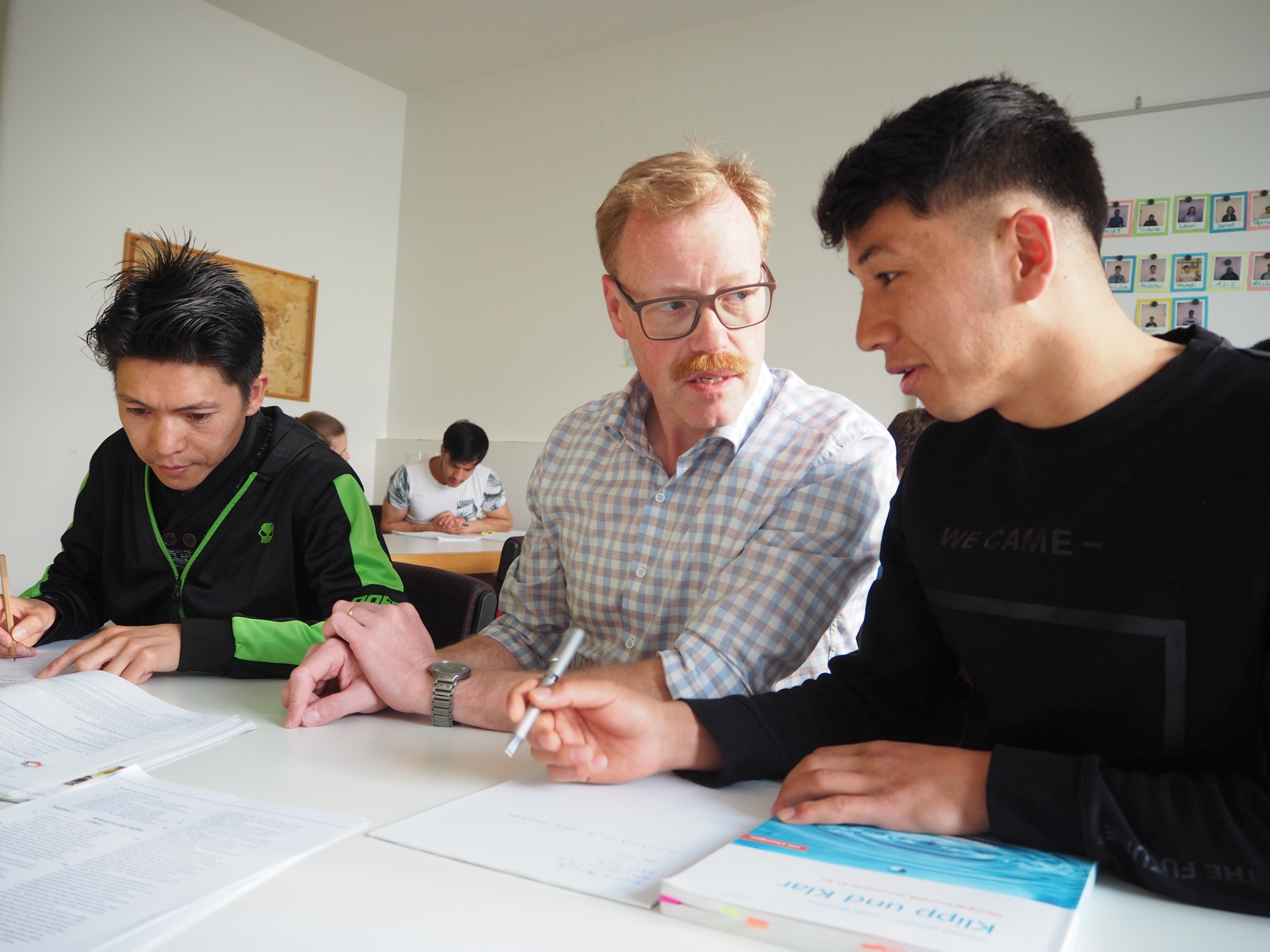 Gemeinsam lernt es sich besser und macht es mehr Spass. Afghanische und eritreische Flüchtlinge lernen zusammen mit einem Lehrer und mit Schülern der International School of Zug and Luzern (ISZL). Vom Austausch profitieren beide Seiten.