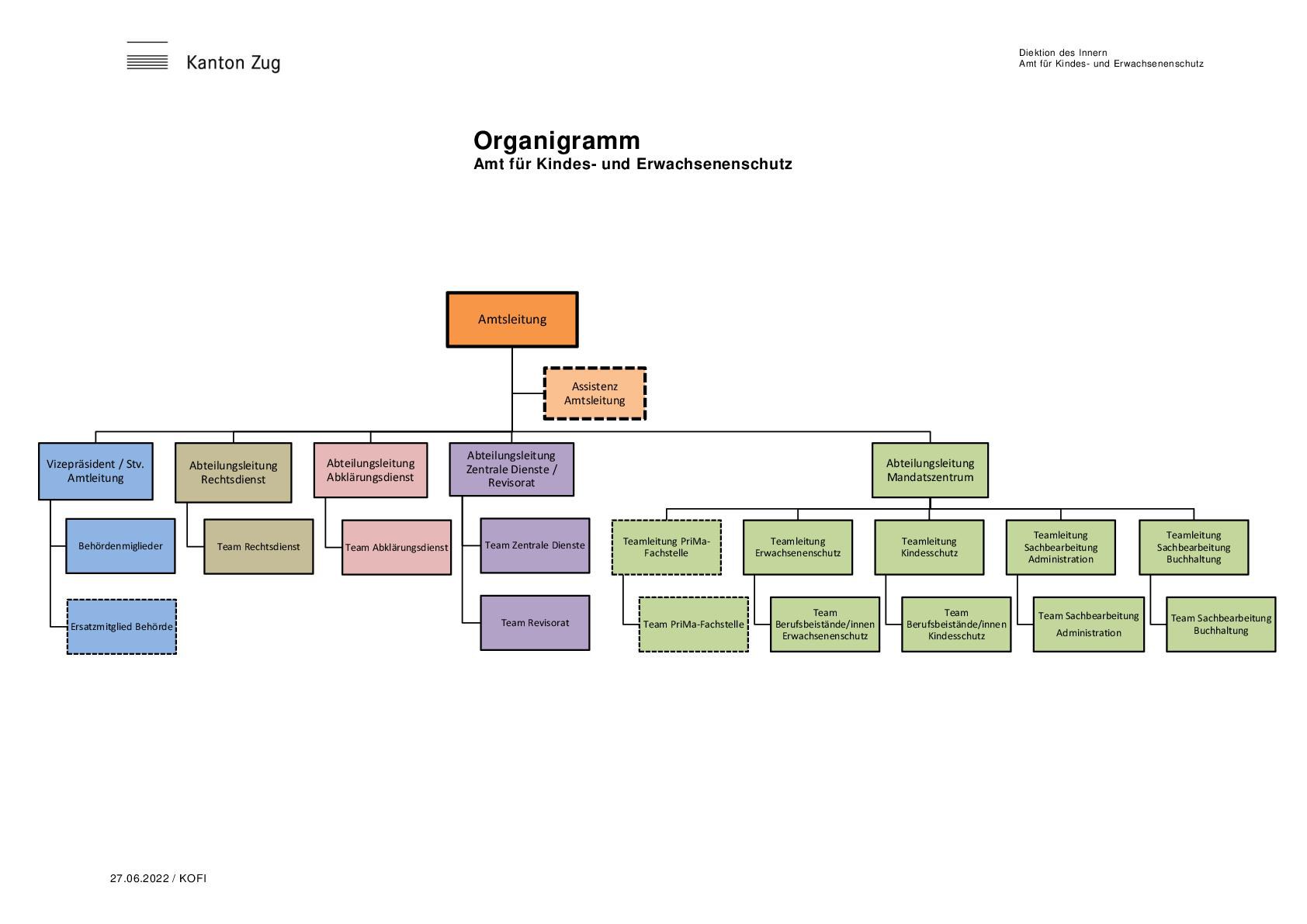 Die Amtsleitung nimmt eine besondere Stellung ein, da sie sowohl das Präsidium der KESB und gleichzeitig die Amtsleitung über das KES inne hat.