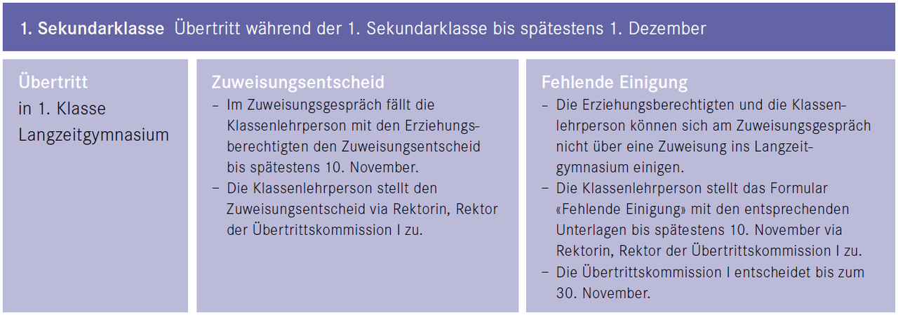 Übertritt 1. Sekundarklasse ans Langzeitgymnasium