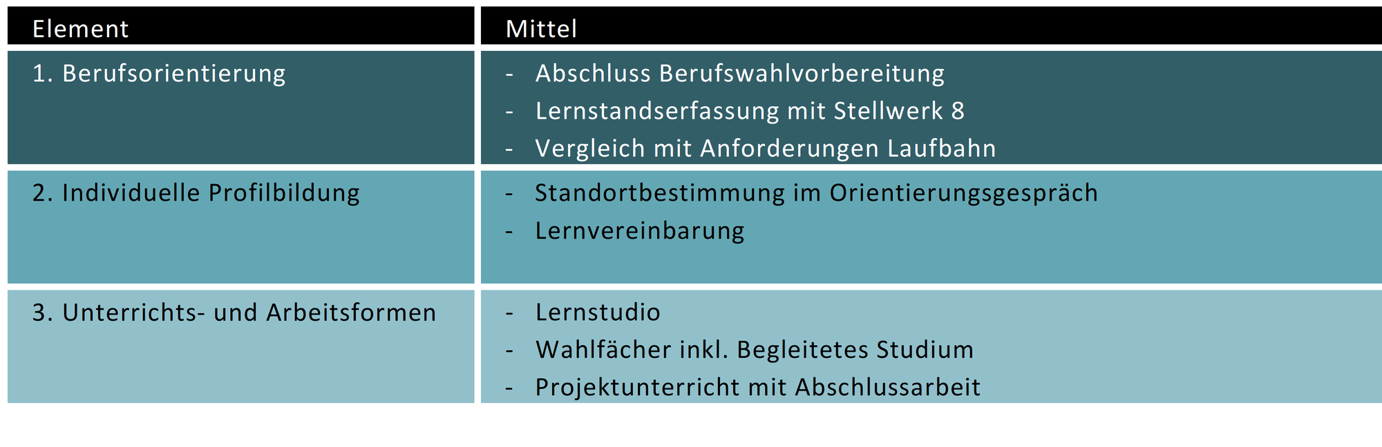 Nach der Umsetzungsphase beginnt ab Schuljahr 2022/23 der Regelbetrieb. Die Entwicklung ist noch nicht abgeschlossen und wird nun im Rahmen der Schul- und Unterrichtsentwicklung in den Gemeinden weitergeführt. Insbesondere in den Bereichen differenzierende Aufgabenstellungen und offene Lernsettings sowie im eigenverantwortlichen Lernen werden sich die Schulen noch weiterentwickeln.