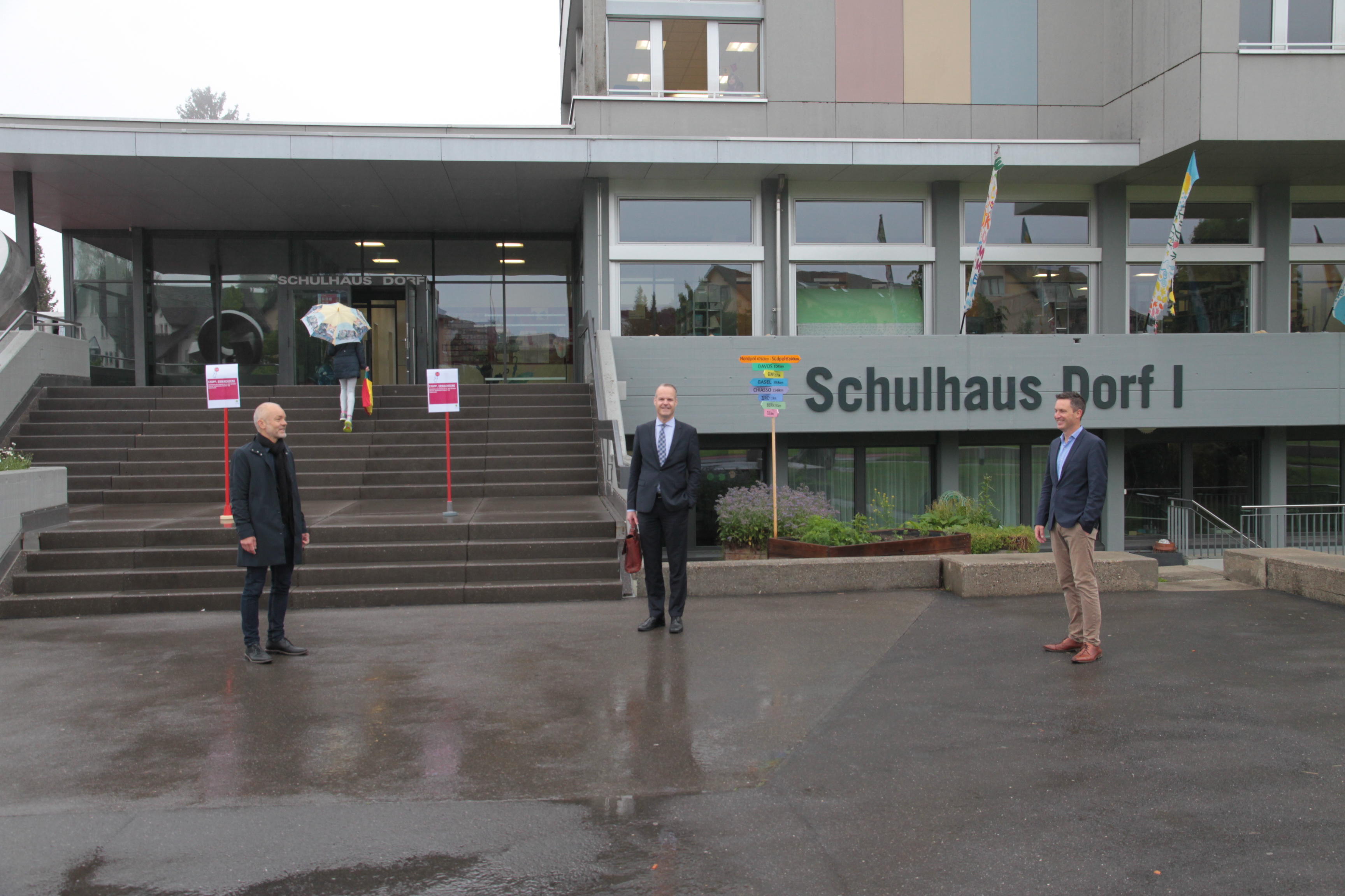 Michael Truniger, Leiter Amt für gemeindliche Schulen, Landammann und Bildungsdirektor Stephan Schleiss sowie Dominik Lehner, Rektor Schulen Neuheim.