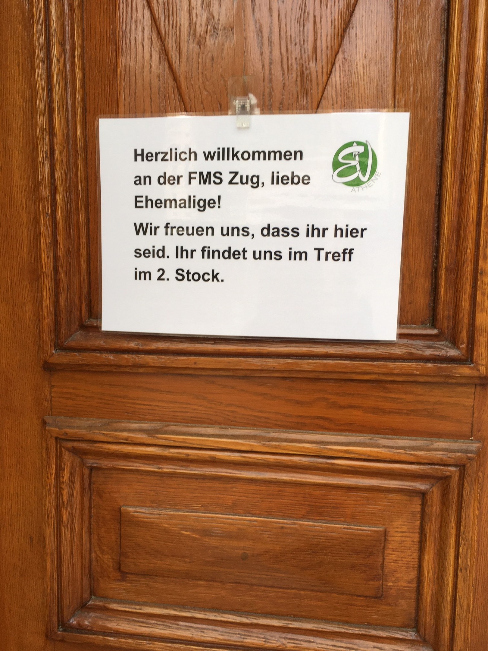 Bei der Gründung des Ehemaligenvereins Athene waren ca. 40 ehemalige Schülerinnen und Schüler sowie Lehrpersonen dabei. Auch aktive Lehrpersonen und Mitarbeitende sowie Rektor Vinzenz Gilabert wohnten der Versammlung bei. Mit dem gewählten Vorstand und den verabschiedeten und unterschriebenen Statuten war es offiziell: Die FMS Zug und ihre Vorgängerschulen haben zum ersten Mal in ihrer Geschichte einen Ehemaligenverein.