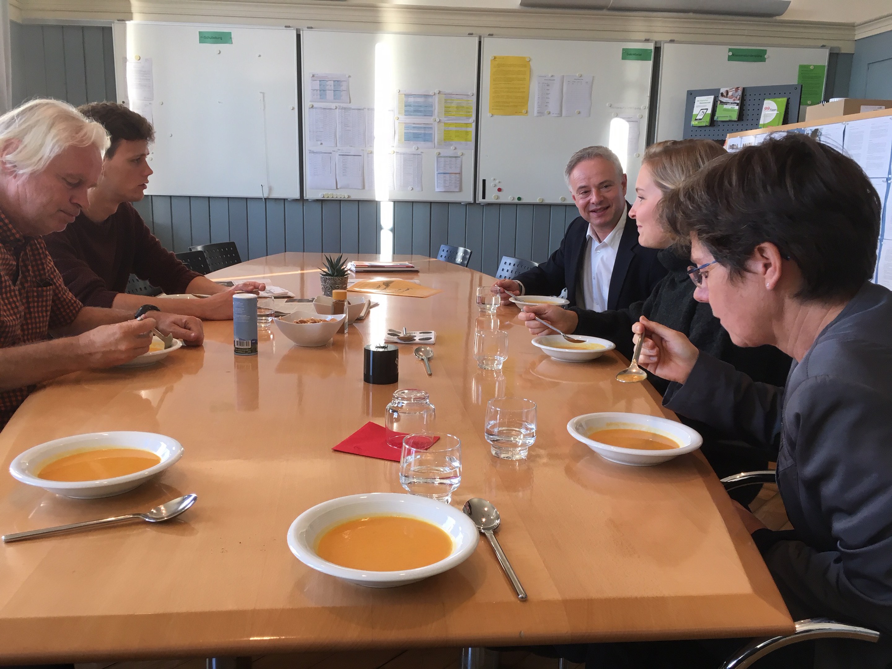 "Ich kann es gar nicht glauben, dass ich auch mal so gewesen bin". Das ist eine der Aussagen nach einem Unterrichtsbesuch. Nach den Unterrichtsbesuchen gab es eine feine Suppe von Romina. Mmmh! Obwohl nur wenige Ehemalige kamen, war es ein sehr gelungener Anlass. Die Freude war auf allen Seiten da, sich wieder mal zu sehen.