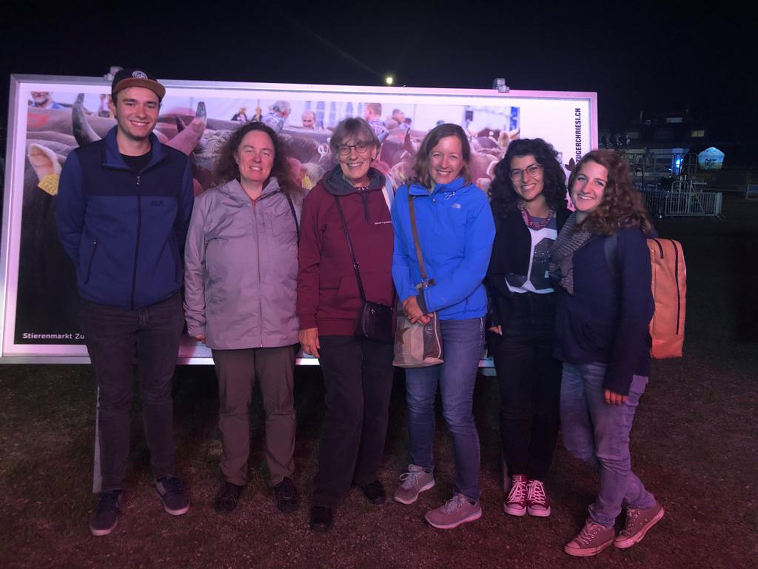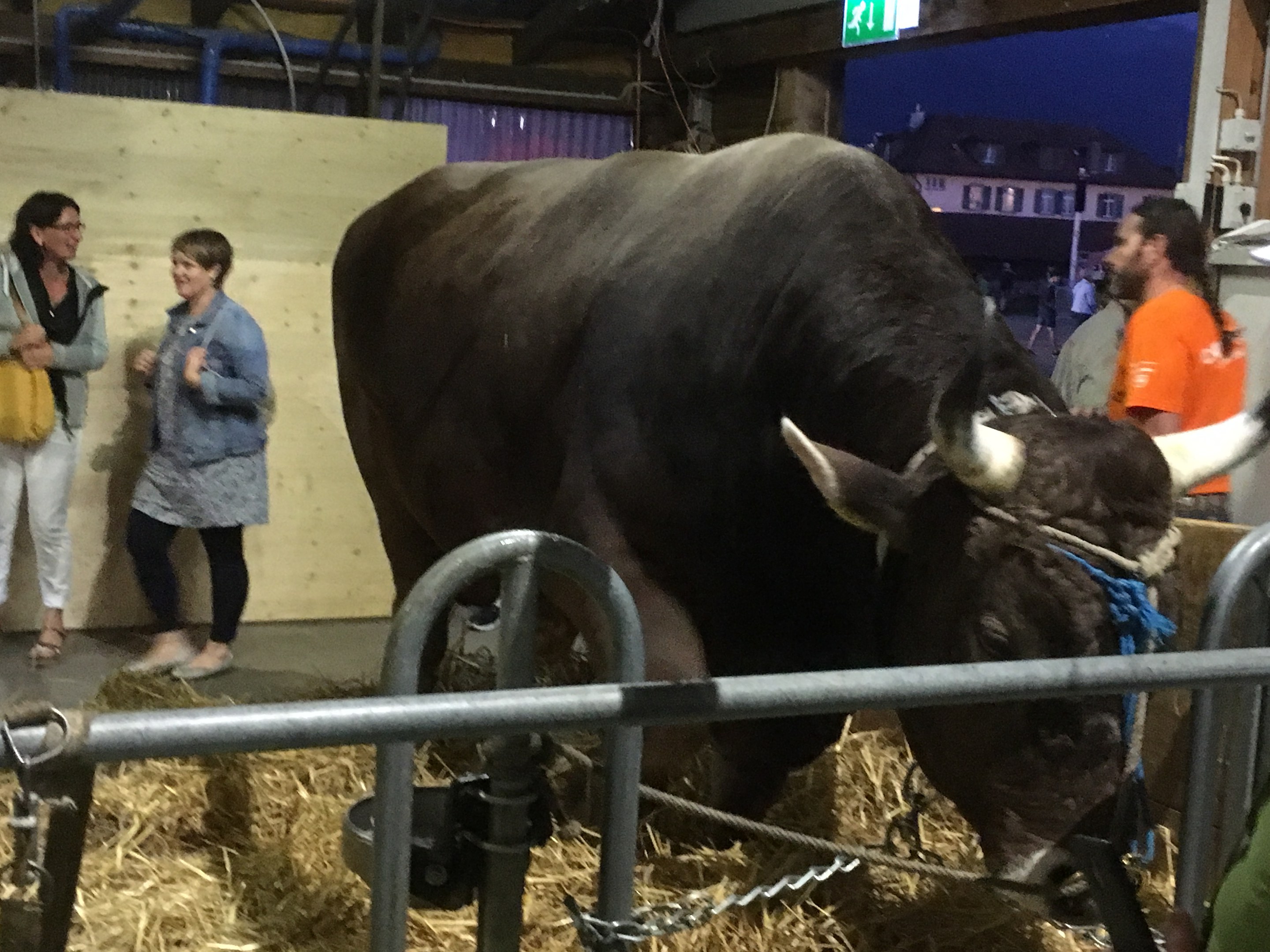 Wir nutzten die einmalige Gelegenheit, das Festgelände des Eidgenössischen Schwing- und Älplerfests zu erkunden. Bereits am Donnerstagabend war in der Gabenbeiz viel los. Im Gabentempel staunten wir nicht schlecht, denn wir hätten nicht erwartet, nebst den eindrücklichen Lebendpreisen, Preise wie Betten, ein Jacuzzi oder einen Hühnerstall vorzufinden. In gemütlicher Runde - Jürg und Marlies waren unter anderem dabei - genossen wir den Spätsommerabend am ESAF und tauschten uns über die vergangenen WS-DMS-FMS-Zeiten aus. Schön war's!