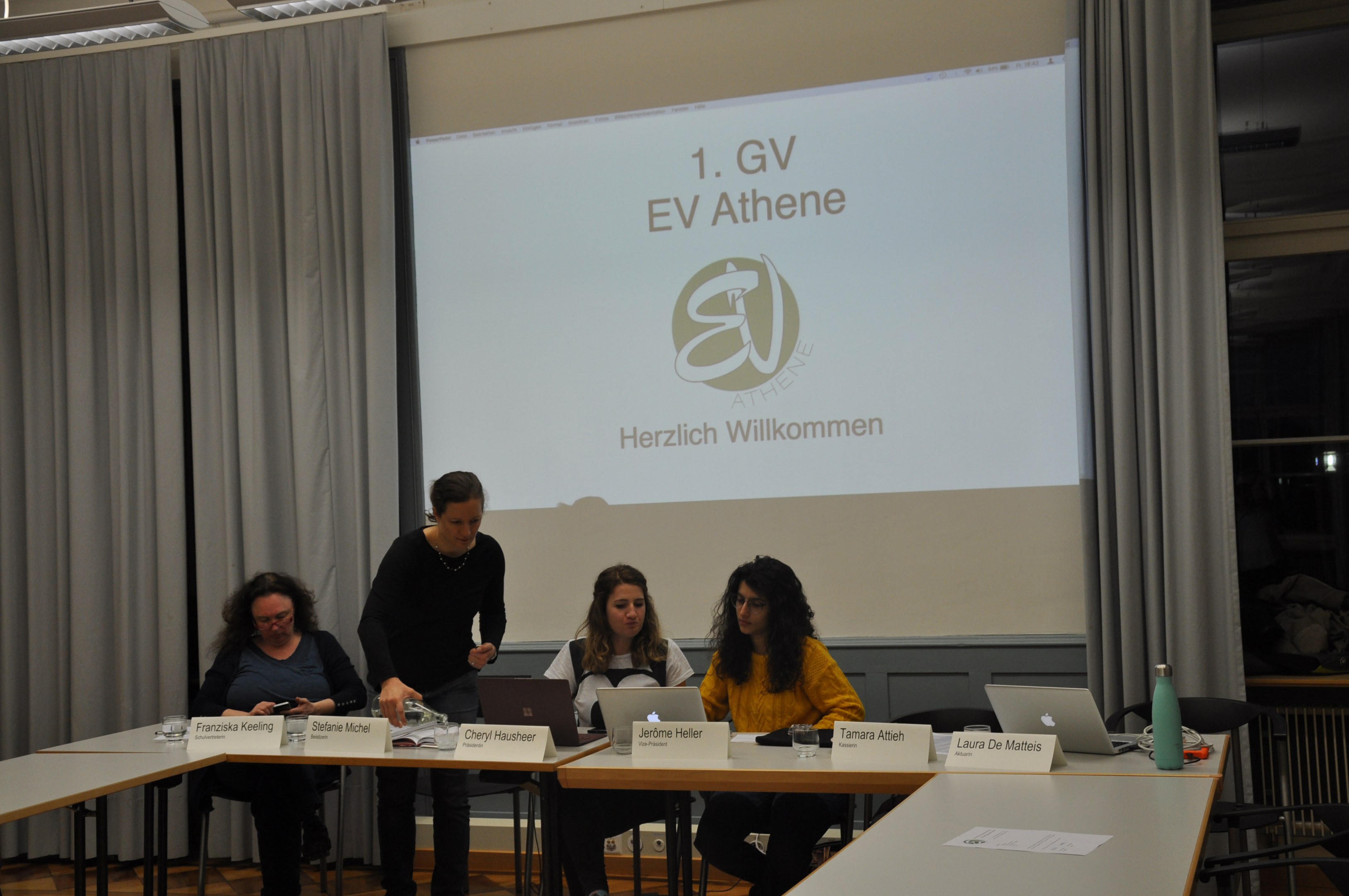 Unser Verein besteht weiter! Noch vor der GV haben wir dies nicht zu hoffen gewagt. Marc, Konstantin und Alessandro haben sich an der GV unverhofft gemeldet, neu im Vorstand mitzuwirken. Cheryl, Jerôme und Stefanie sind zurückgetreten. Weiter als Vorstandsmitglieder dabei sind Tamara und Franziska. Die zurückgetretenen Vorstandsmitglieder wurden zu Ehrenmitgliedern gewählt. Beim Apéro nach der GV haben wir auf den Weiterbestand des EV Athene angestossen.