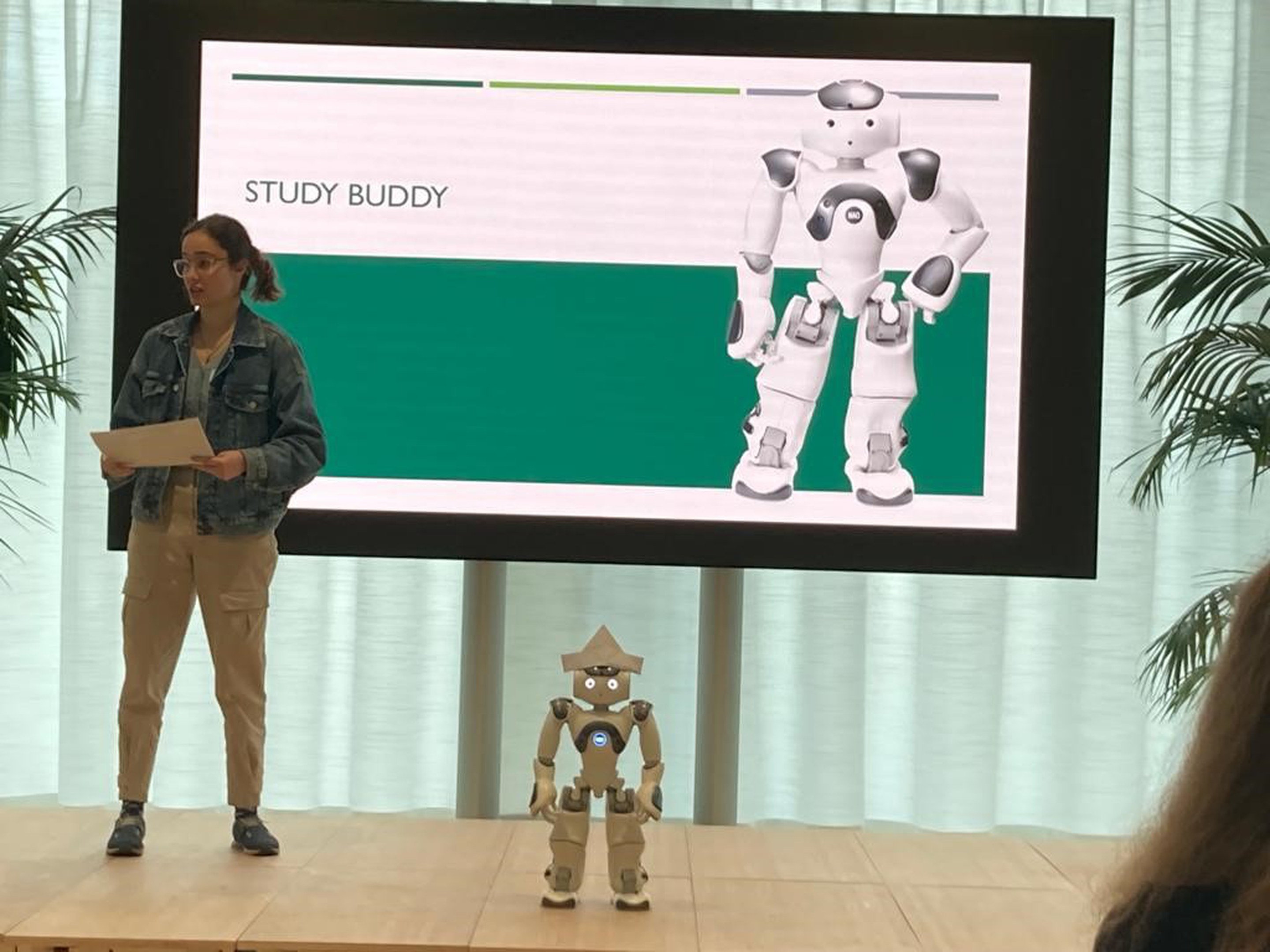Als kreativste Präsentation überzeugte die ebenfalls aus beiden Schulklassen gemischte Gruppe mit der Idee eines «Study Buddy», eines Roboters, der die Interaktion mit individualisierten Lernmaterialien humanoid macht. Dieser Lernpartner kennt die unterschiedlichen Schülerinnen und Schüler und ihre Lernstände und steht mit seinem Wissen aus unterschiedlichen Fächern und Quellen quasi stellvertretend für viele Lehrpersonen für einen Lernenden wie ein Lernfreund zur Verfügung.