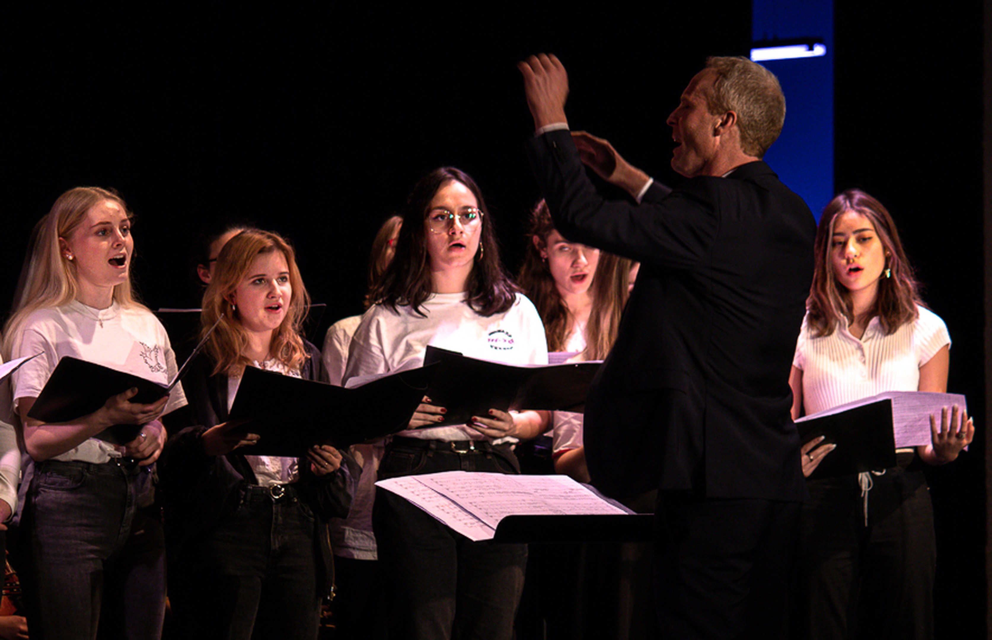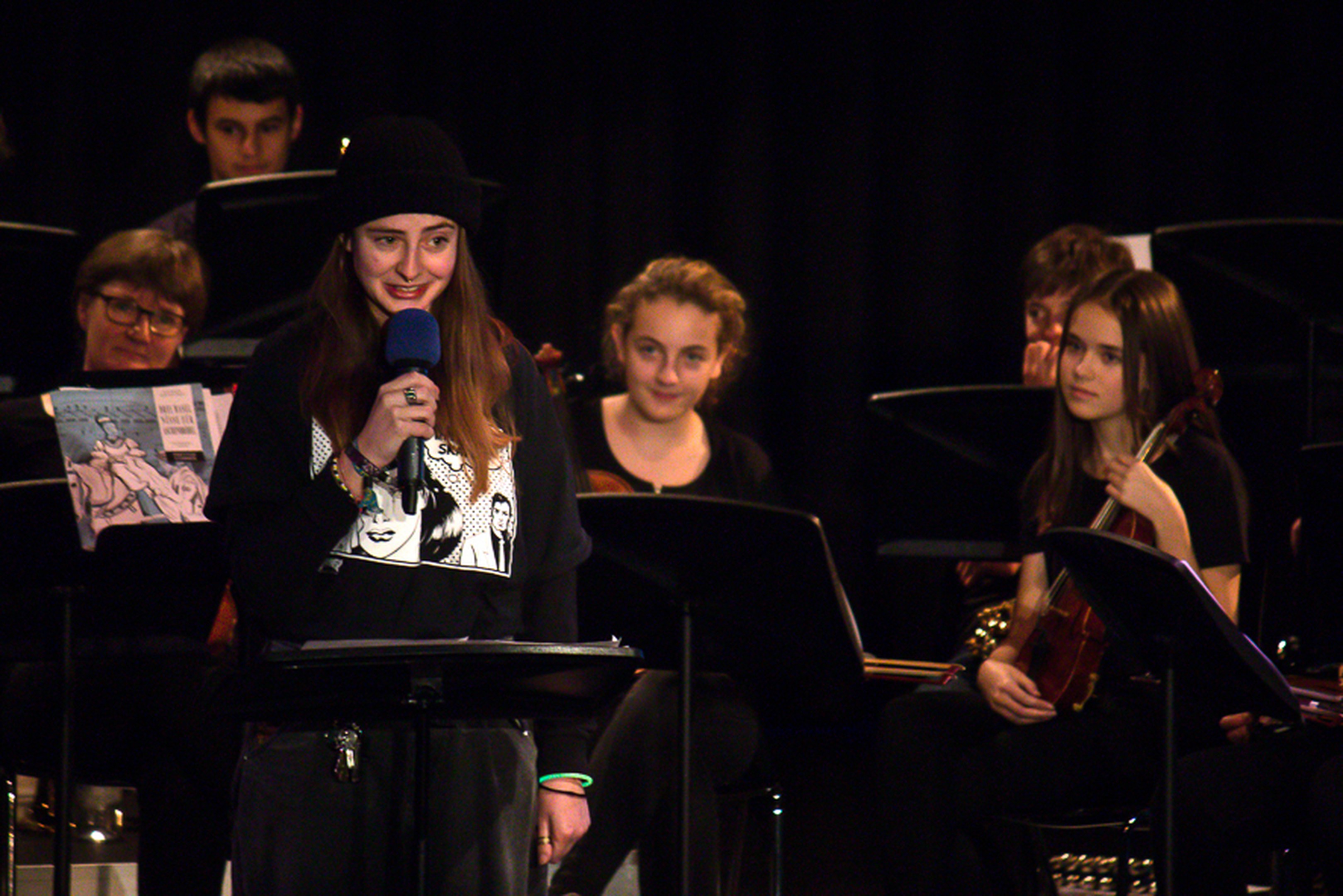 Die diesjährige Weihnachtsfeier gestaltet und musiziert von Schülerinnen und Schüler unterschiedlicher Stufen stand im Zeichen von Dunkelheit - Licht - Hoffnung. Musik, Gesang und Text nahmen dieses Thema auf und verarbeiteten es auf unterschiedliche Art und Weisen. So erklang zum Beispiel das Lied "The Snow" von Edgar William Elgar gesungen vom Vocal Joy, oder "Drei Nüsse für Aschenbrödel" von Karel Svoboda / Guido Klaus gespielt vom Orchester Arcanti oder das mit der ganzen Schule gesungene Lied "Oh du Fröhliche" begleitet vom Arcanti. Im vorgetragenen Poetry Slam wurde die Wichtigkeit unterstrichen, dass jede und jeder zum KSM-Spirit Sorge tragen soll, in dem die kleinen Gelegenheiten genutzt werden, um zu zeigen, dass alle an der KSM Teil der Schulgemeinschaft sind. Mit einem Dank an alle insbesondere an die Arbeiten, die in der Verwaltung geleistet werden, schloss Prorektorin Katharina Pretnar diese Feier ab.