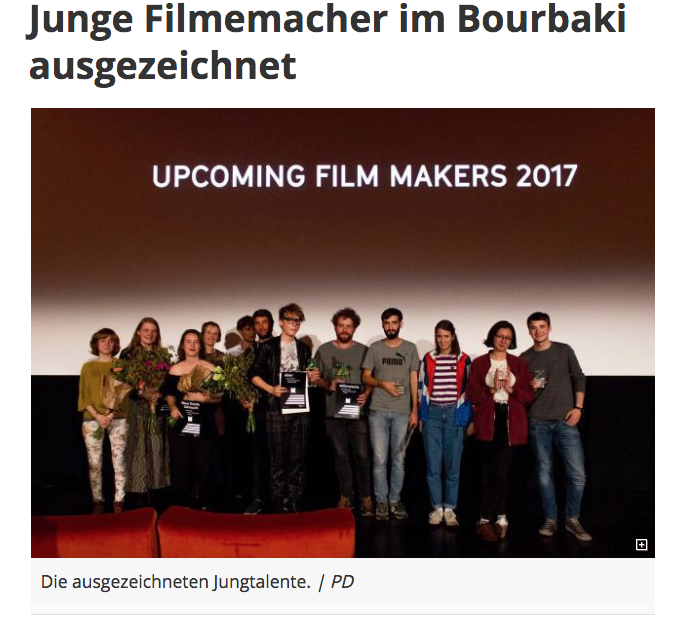 Luzerner Zeitung vom 24.09.2017, Junge Filmemacher im Bourbaki ausgezeichnet (pd/spe)