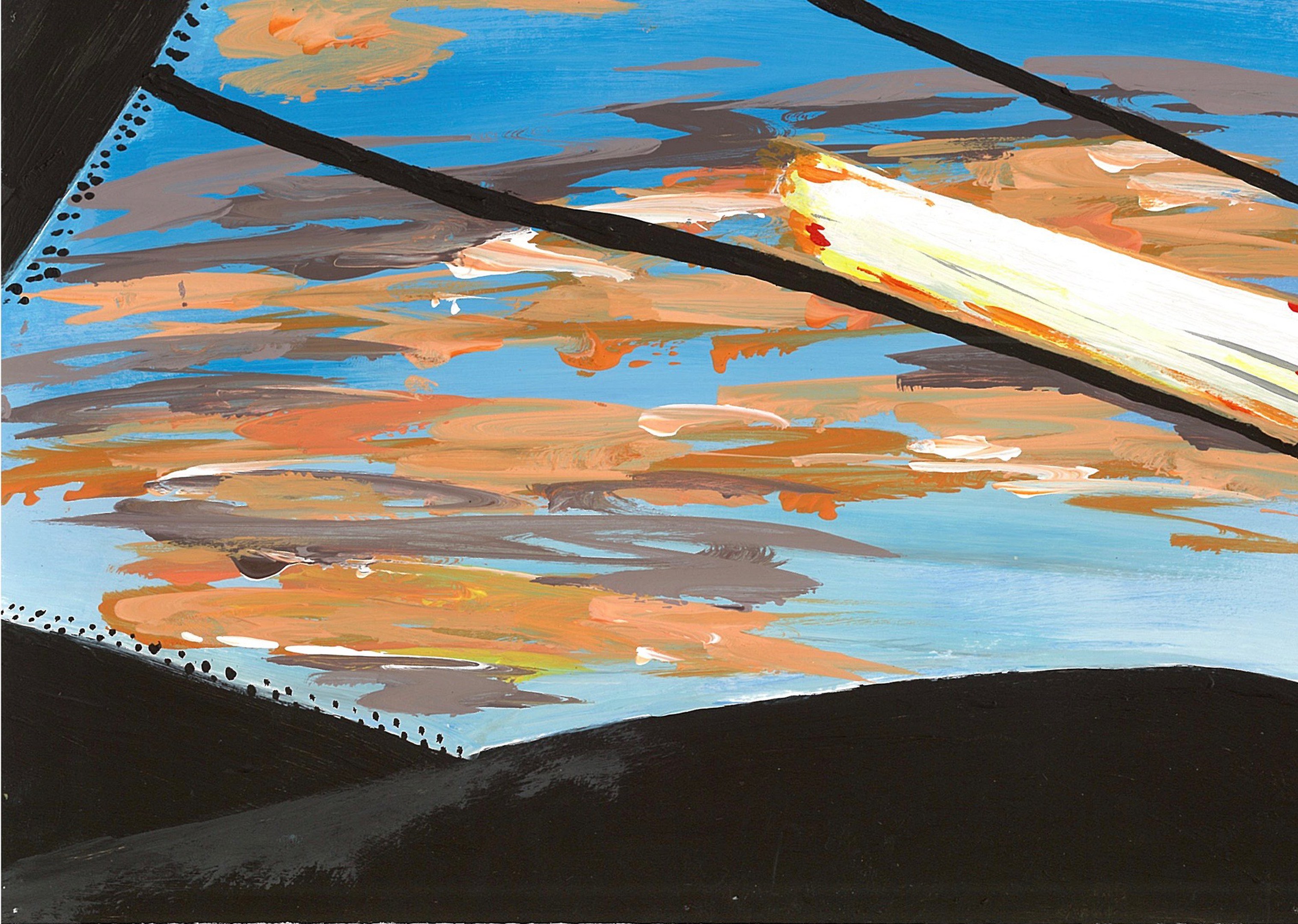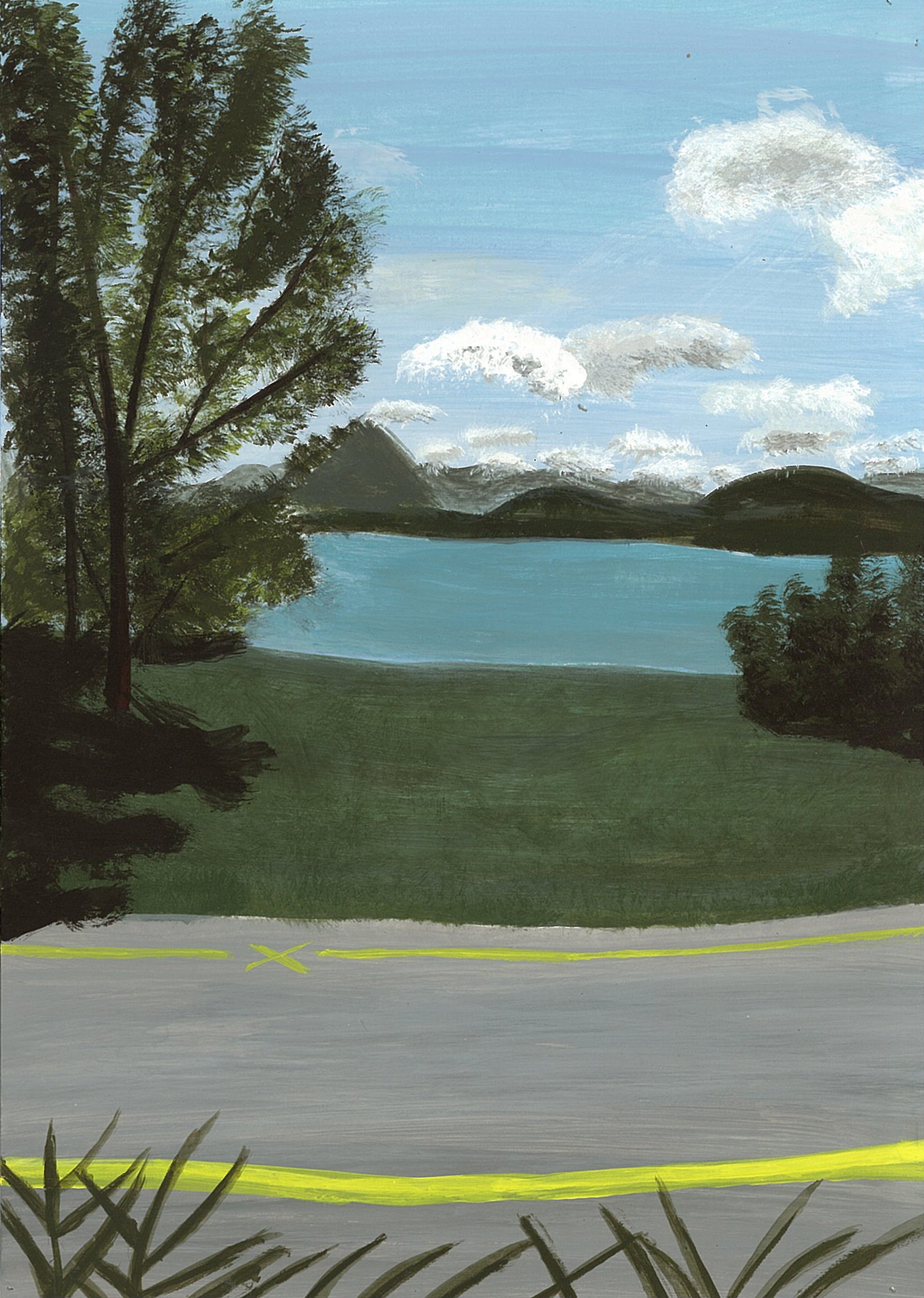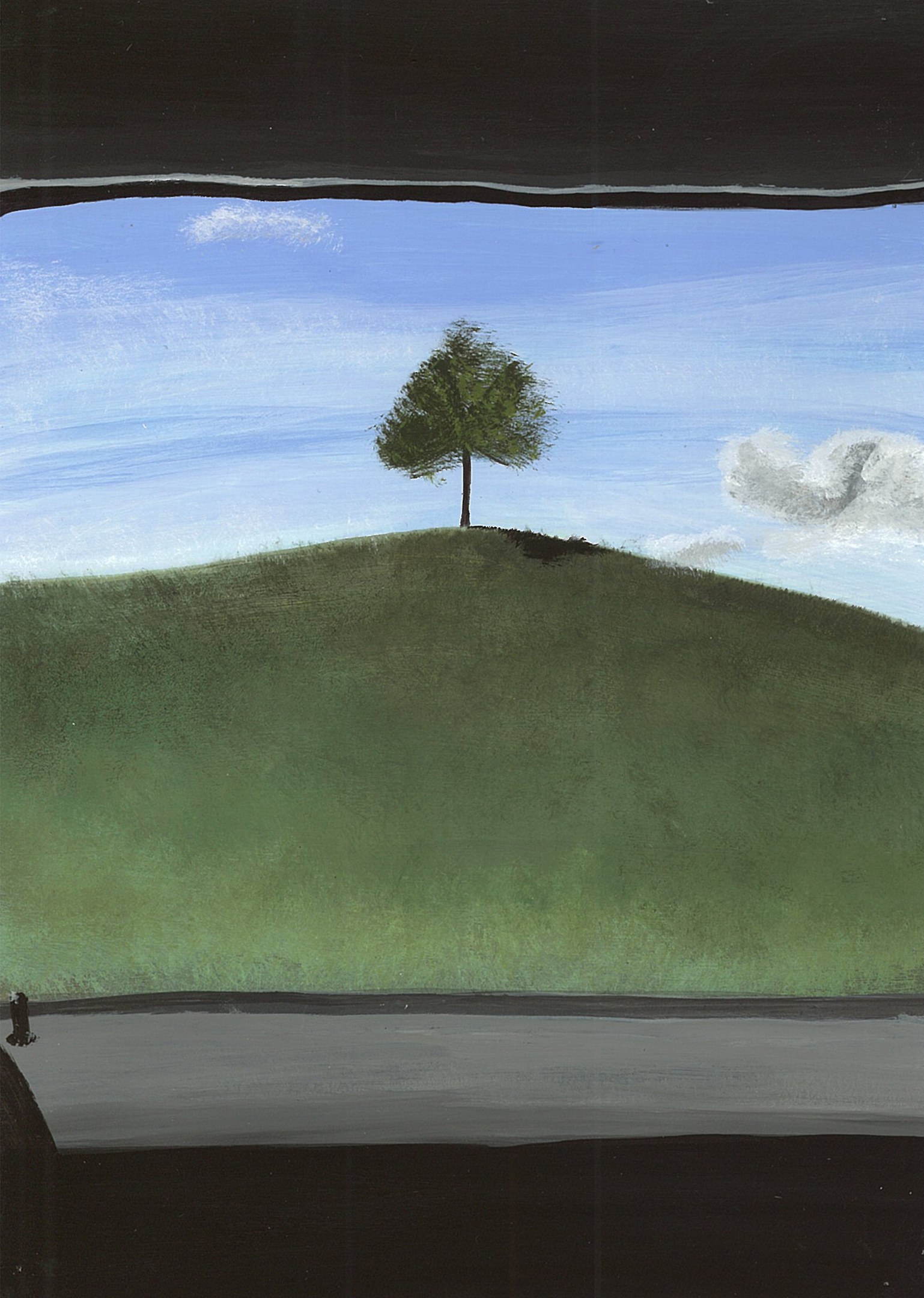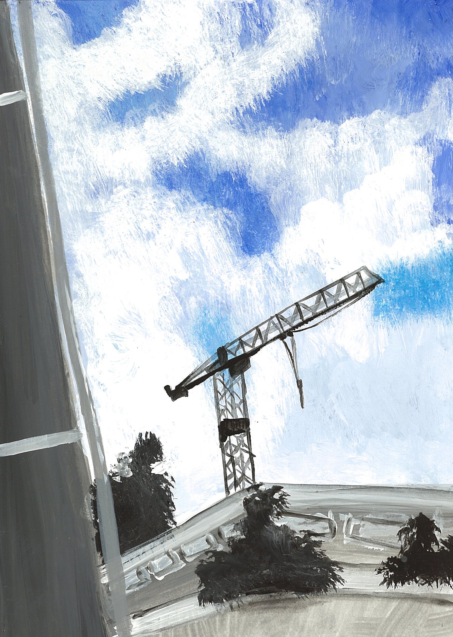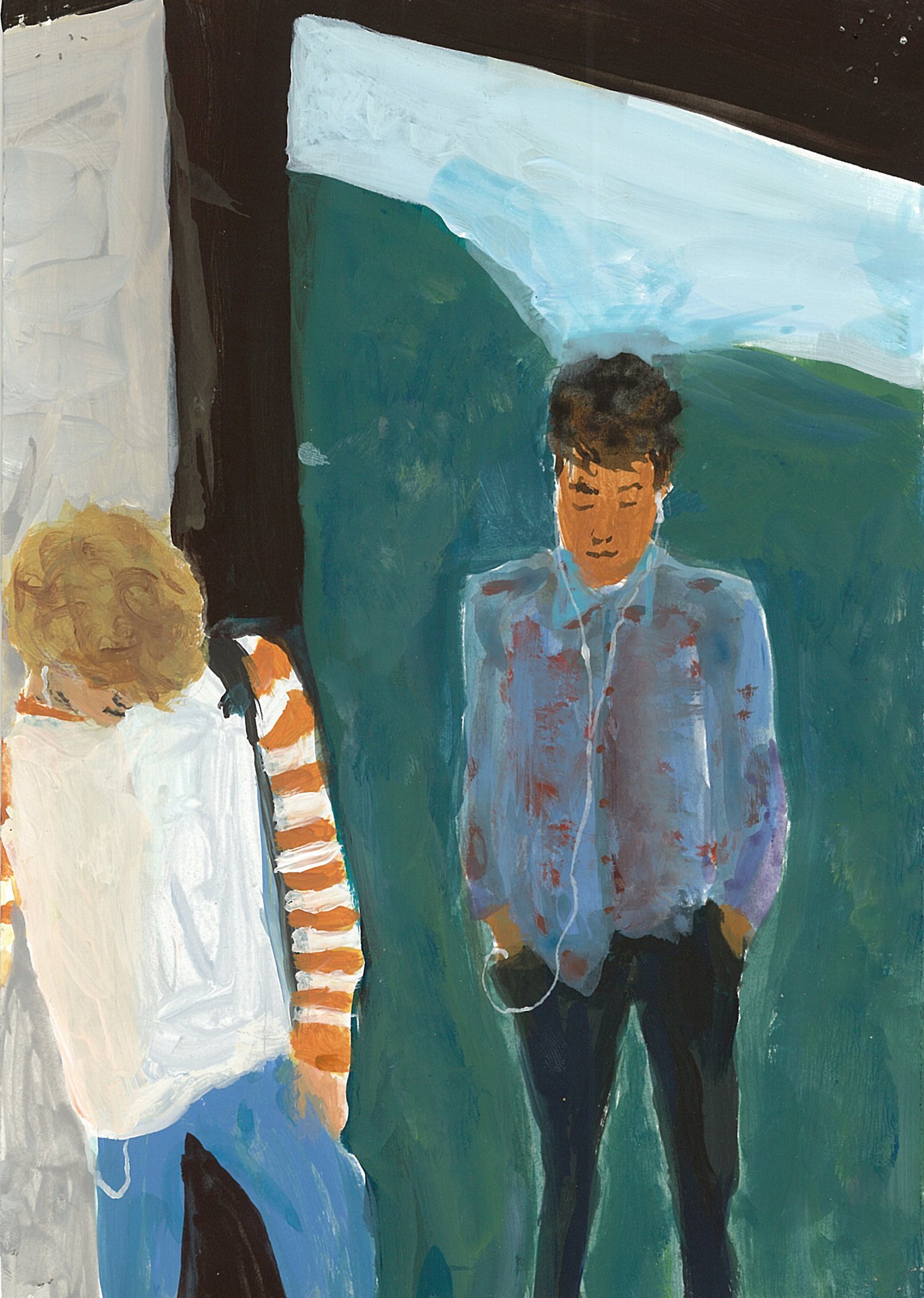 Ebenfalls von der Klasse 4cz stammen die längeren Serien über den Schulweg. Zum Thema «Zeitgenössische Malerei» (inspiriert von Jean Fréderik Schnyder) fotografierten die Maturandinnen und Maturanden mit dem Handy mehr oder weniger zufällig ihren Schulweg – auch aus ungewohnter Perspektive – und gewannen so einen frischen Blick aufs Gewohnte und typisch Schweizerische ihrer Umgebung. Direkt vom Handybildschirm malten sie darauf eine Serie von drei bis fünf Bildern im A5 Format.