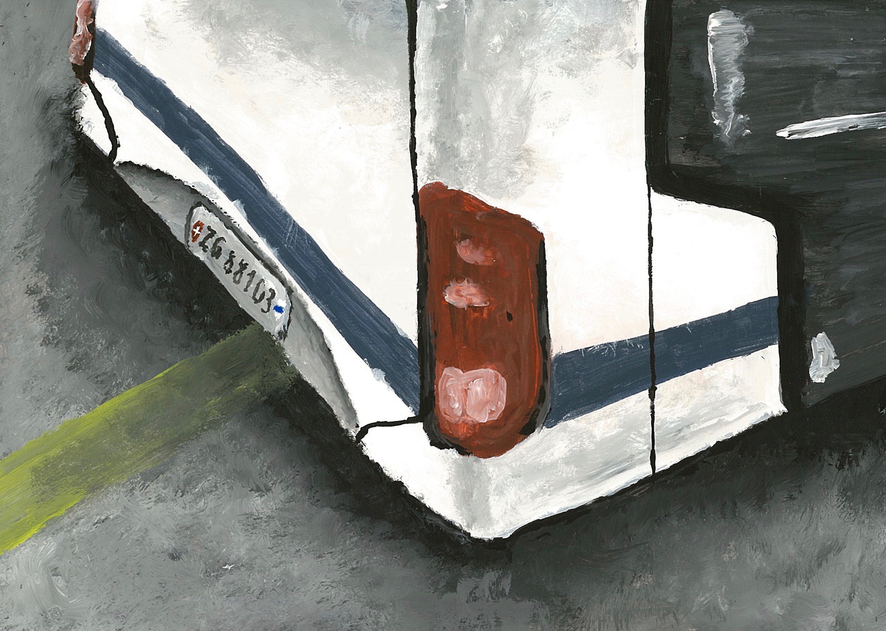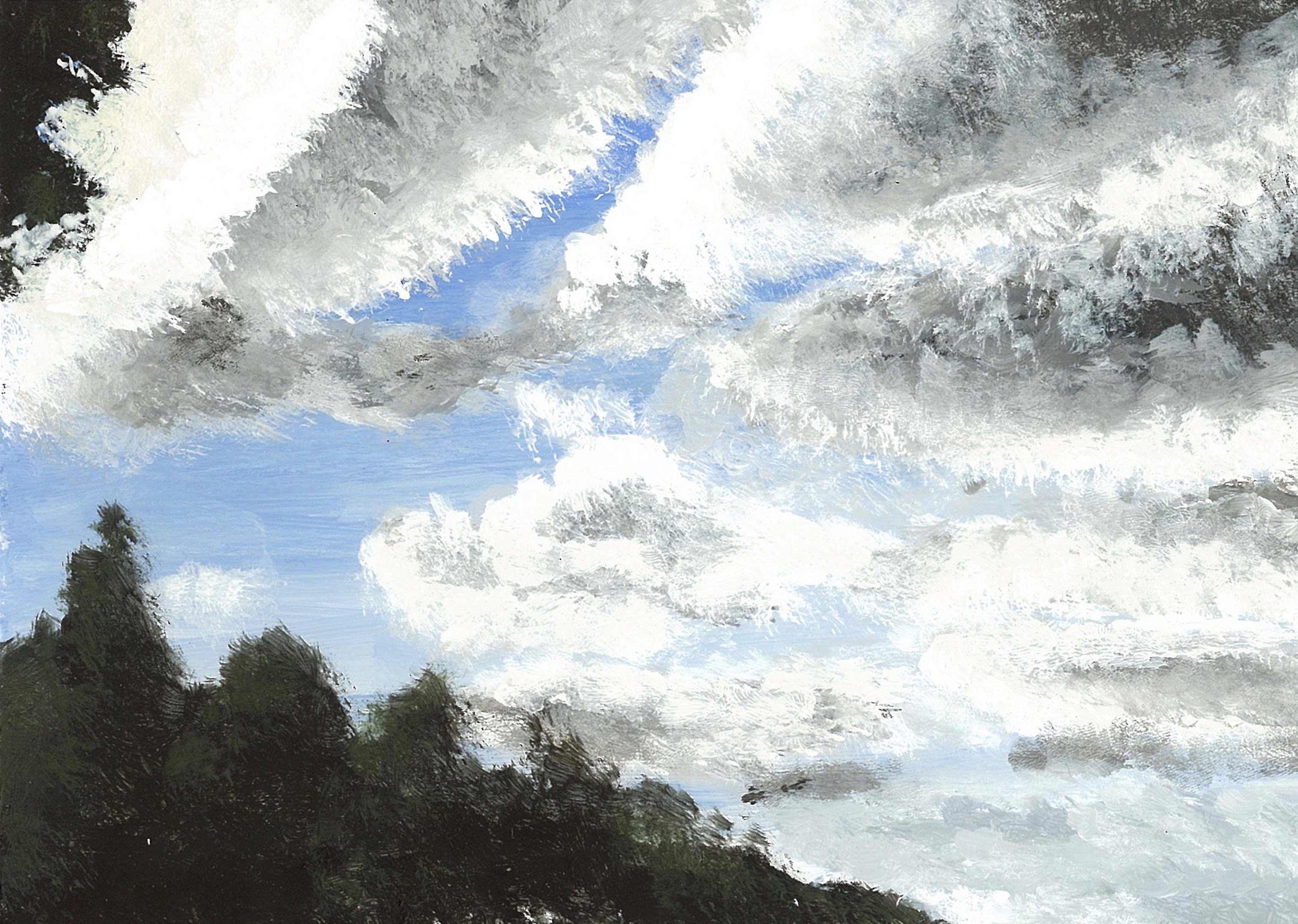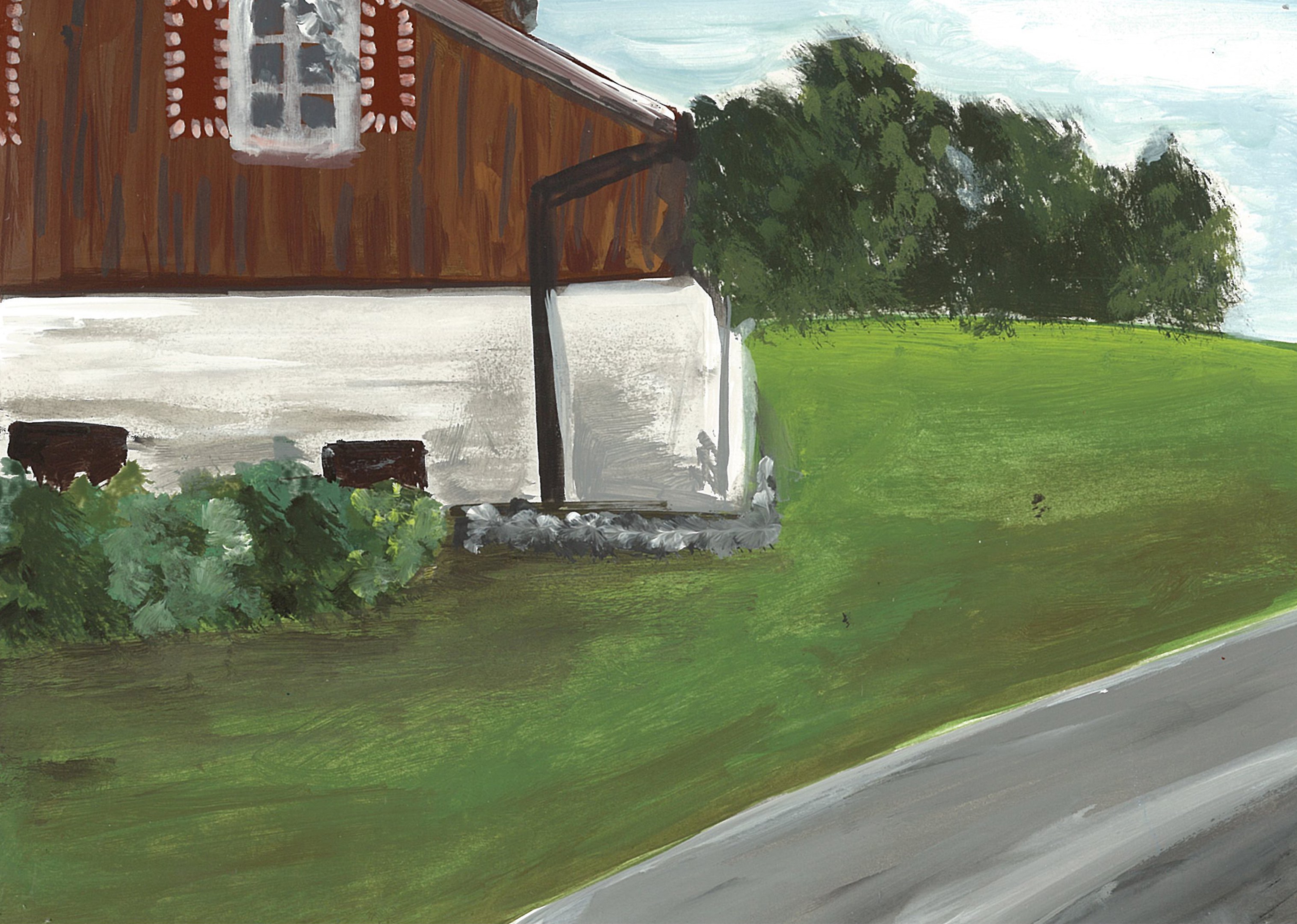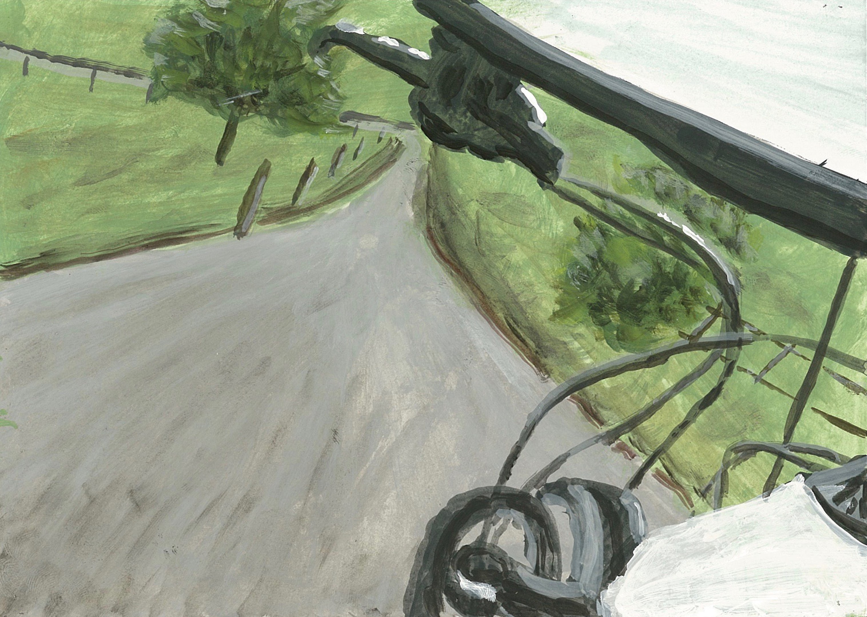 Ebenfalls von der Klasse 4cz stammen die längeren Serien über den Schulweg. Zum Thema «Zeitgenössische Malerei» (inspiriert von Jean Fréderik Schnyder) fotografierten die Maturandinnen und Maturanden mit dem Handy mehr oder weniger zufällig ihren Schulweg – auch aus ungewohnter Perspektive – und gewannen so einen frischen Blick aufs Gewohnte und typisch Schweizerische ihrer Umgebung. Direkt vom Handybildschirm malten sie darauf eine Serie von drei bis fünf Bildern im A5 Format.