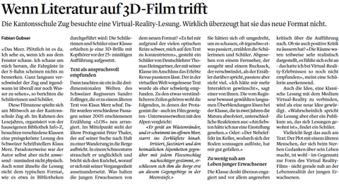 Wenn Literatur auf 3D-Film trifft - Bericht Zuger Zeitung 28.1.23