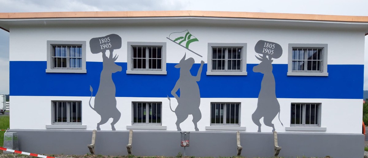 Die Fassadengestaltung wird über den Festanlass hinaus bleiben. Sie wird in den nächsten Jahren die Velofahrer und Spaziergänger auf der Zuger Allmend erheitern und ans ESAF erinnern.