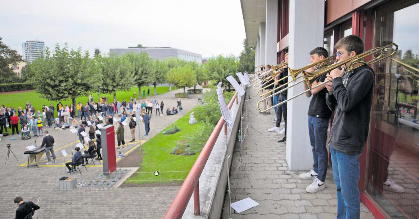 Die Band spielte «Come together». Und so kamen Lehrer, Schüler und Passanten draussen zusammen – mit gebührendem Abstand.