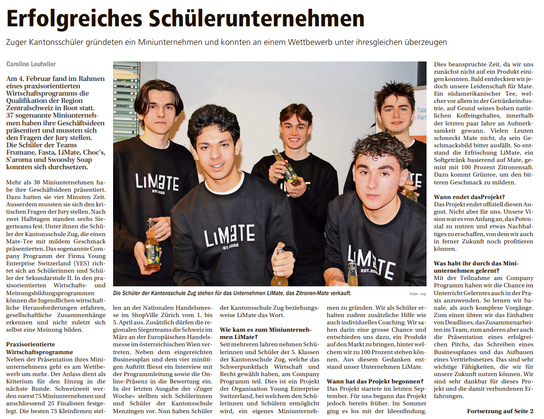 20.03.2023Erfolgreiches SchülerunternehmenZuger Kantonsschüler gründeten ein Miniunternehmen und konnten an einem Wettbewerb unter ihresgleichen überzeugenhttps://publisher-zgch-test.webcloud7.ch/izug/platform/behoerden/direktion-fur-bildung-und-kultur/ksz/dokumente/medienspiegel/erfolgreiches-schuelerunternehmenhttps://publisher-zgch-test.webcloud7.ch/izug/platform/logo.png