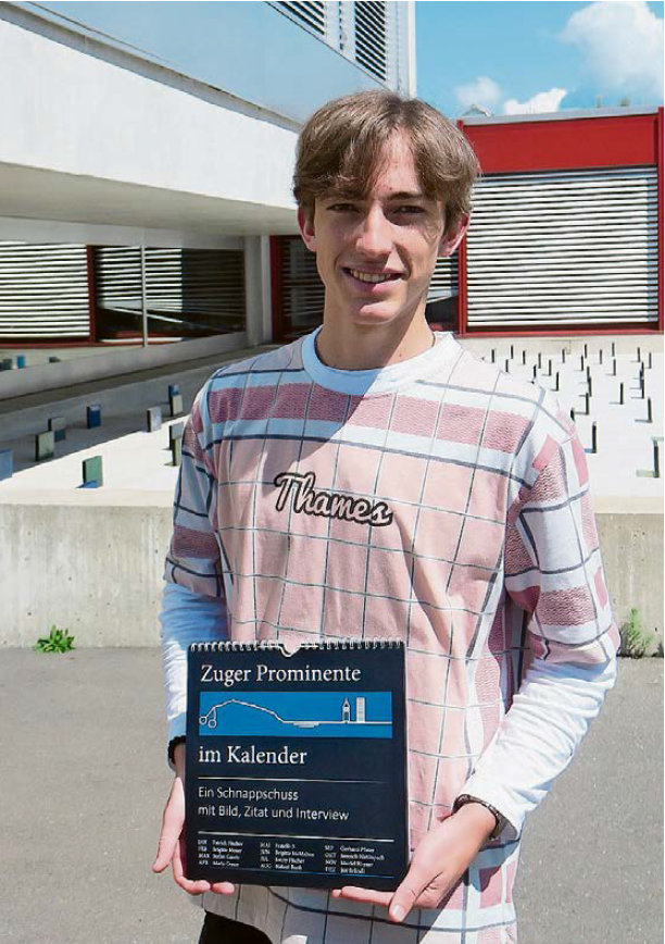 Eine weitere Arbeit mit einem lokalen Thema war jene von Simon Brändli. Der Maturand interviewte dafür zwölf prominente Zuger Persönlichkeiten und machte daraus einen Kalender. Jeden Monat wird eine andere Persönlichkeit vorgestellt. Der Maturand führte beispielsweise Gespräche mit dem Divertimento-Komiker Jonny Fischer, dem Rap-Duo Fratelli-B und dem Eishockeytrainer Patrick Fischer.