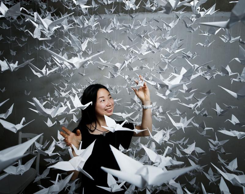 Kantonsschülerin Kanna Yamaguchi hat mit tausend Kranichen eine Rauminstallation als Abschlussarbeit kreiert.