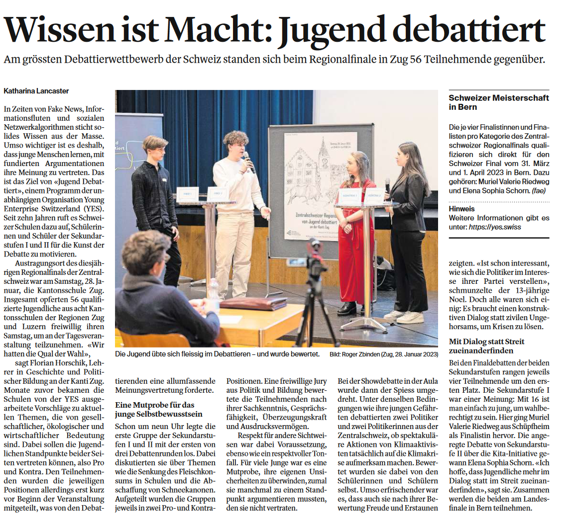 Regionalfinal Jugend debattiert Kantonsschule Zug 28.1.23