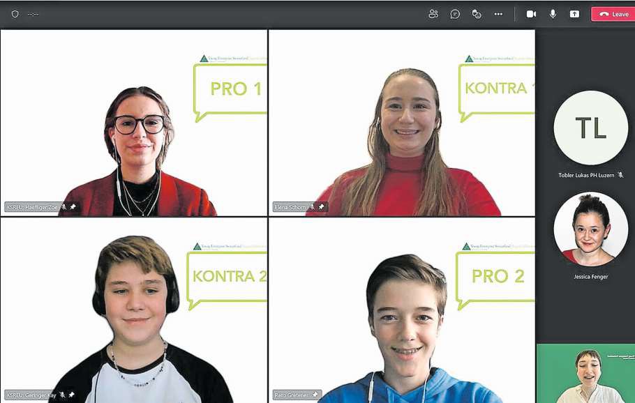 In der Finaldebatte der 12- bis 15-Jährigen zum Thema «Soll die Volksinitiative Für eine starke Pflege angenommen werden? » lieferten sich auch Kay Geringer, Reto Gretener, Zoe Häfliger und Elena Schorn eine faire Diskussion. Währenddessen debattierten Anna Brunner, Cédric Herbst, Sina Meyer und Marie Weise in der Finaldebatte der Sek. II über die Frage «Soll die Schweiz der Europäischen Union beitreten?» gekonnt. Die Finalistinnen und Finalisten nehmen am Nationalen Finale am 1. und 2. April in Bern teil. Zuger Ständerat Matthias Michel konnte als Jurymitglied die jungen Debattiertalente in verschiedenen Kriterien bewerten: «Die Schülerinnen und Schüler beeindruckten mich: Sie haben selbstbewusst und frei debattiert; sie könnten jederzeit in einer politischen Debatte in einem Rat oder in den Medien auftreten. Young Enterprise Switzerland (YES) seinerseits organisierte in perfekter Weise die Online-Panels, die dem Liveerlebnis sehr nahe kamen», sagt Michel.