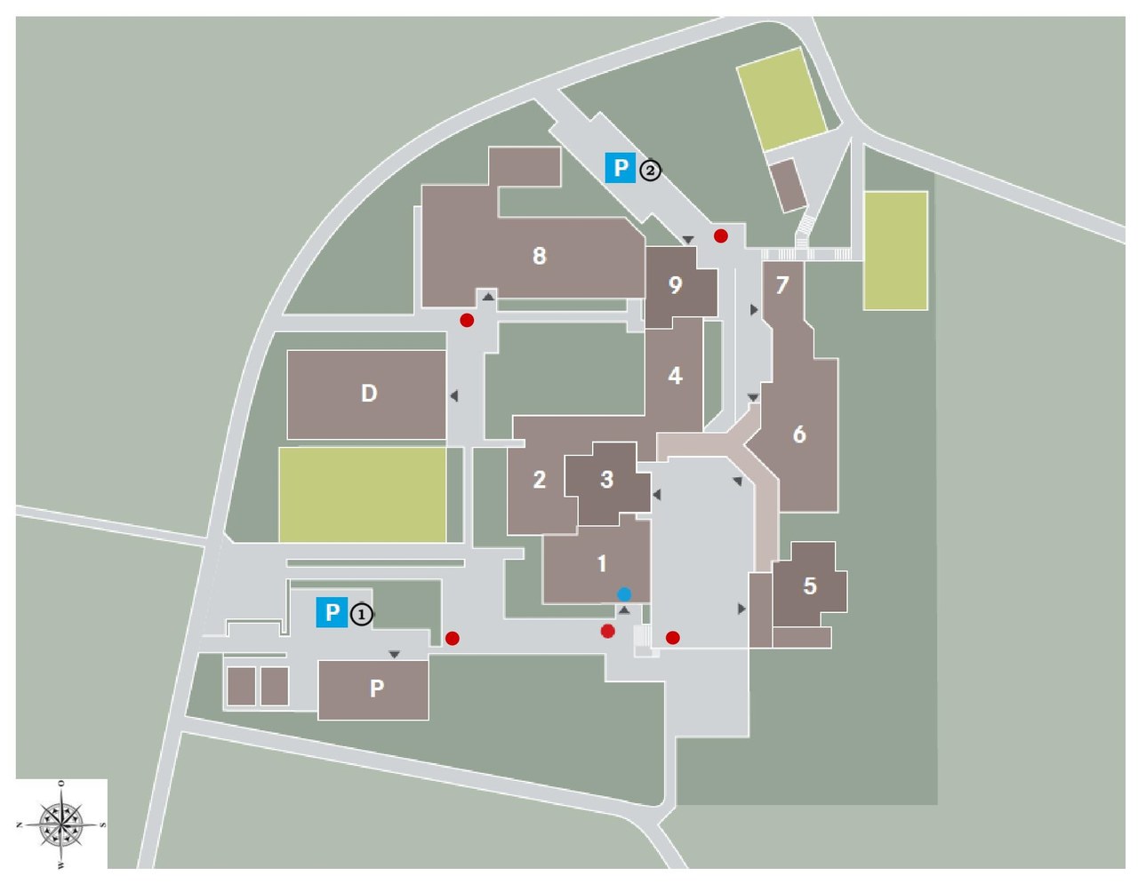 Auf dem Schulareal sind nur wenige und gebührenpflichtige Parkplätze vorhanden.
