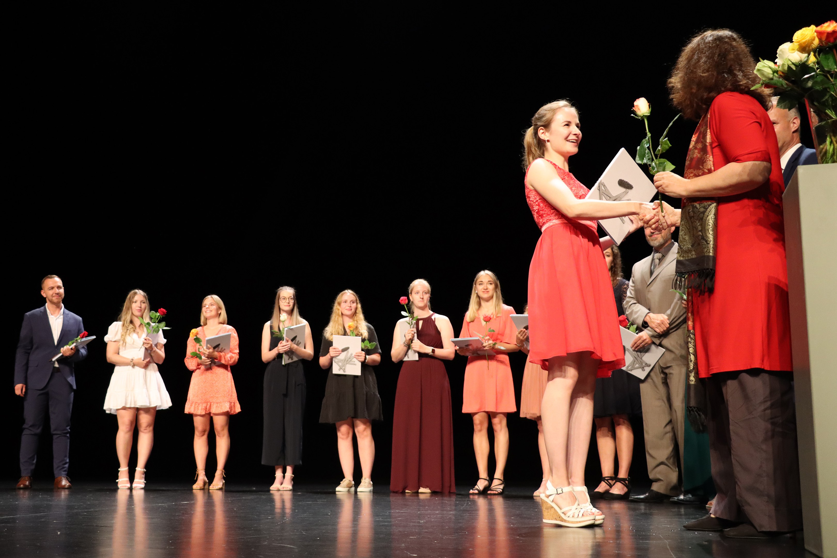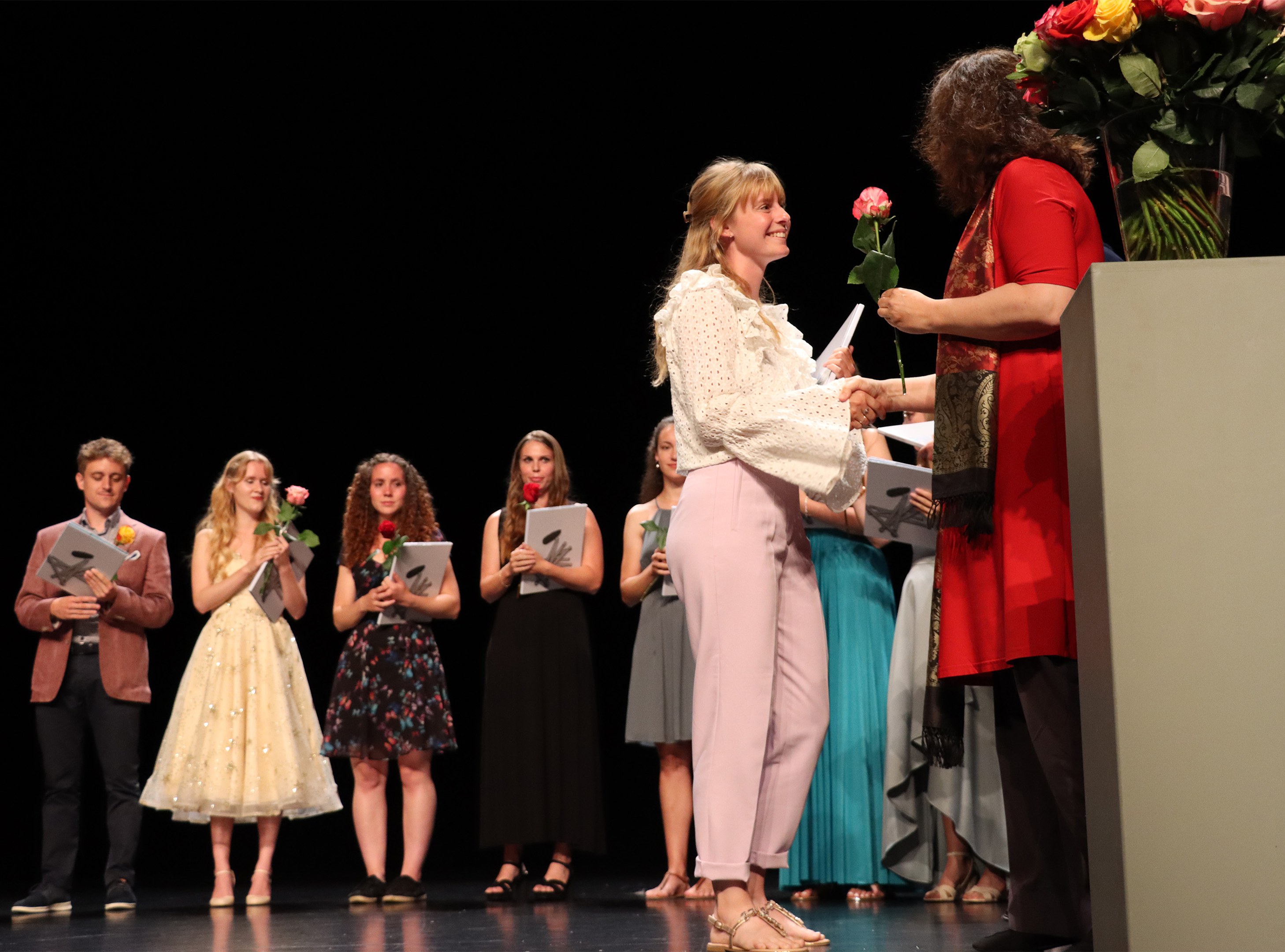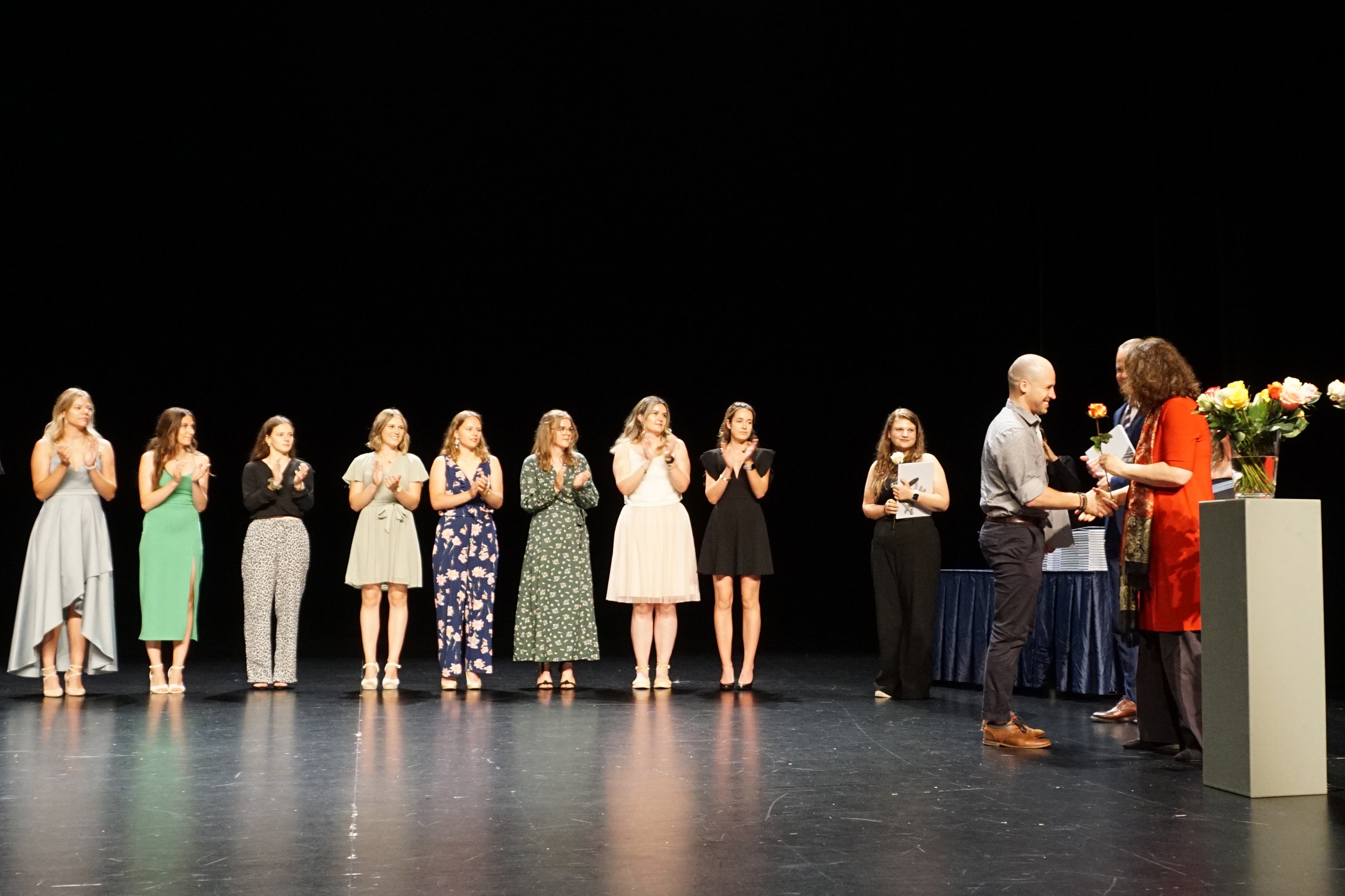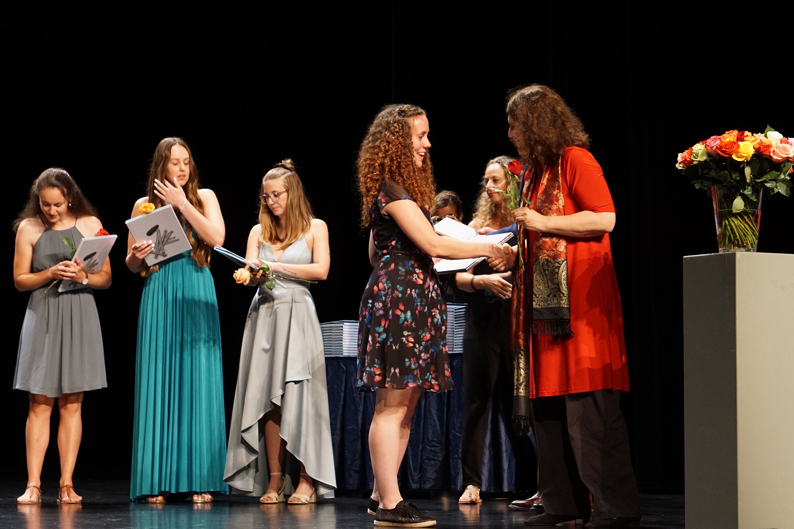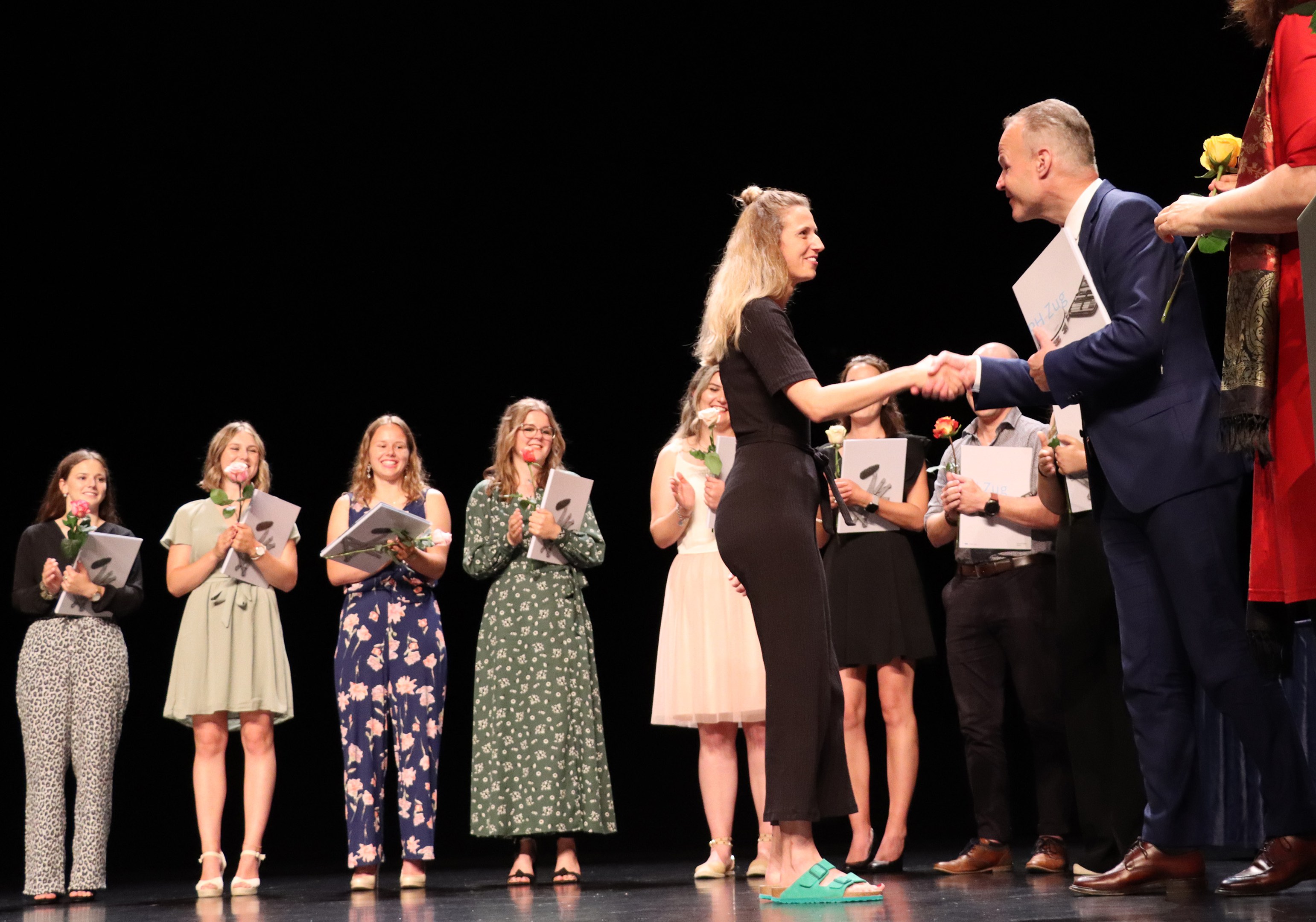 Moderiert wurde die Diplomfeier im Theater Casino Zug von Clemens Diesbergen, Prorektor und Leiter Ausbildung der PH Zug. Er führte durchs Programm und verdankte die Beiträge. Ein besonderer Dank kam der Studentin Elsa Nastase, die mit ihrer Geige und Klavierbegleitung den Auftakt wie auch den Abschluss der Feier gestaltete sowie den Studierenden des Abschlussjahrgangs mit der Vertiefung Musik, die die Feier mit Auszügen aus ihrem energiegeladenen Musical-Projekt bereicherten, zu. In ihrem Schlusswort wünscht auch die Rektorin Esther Kamm den Studierenden alles Gute für ihren beruflichen Weg und bedankte sich für deren Engagement im Studium.