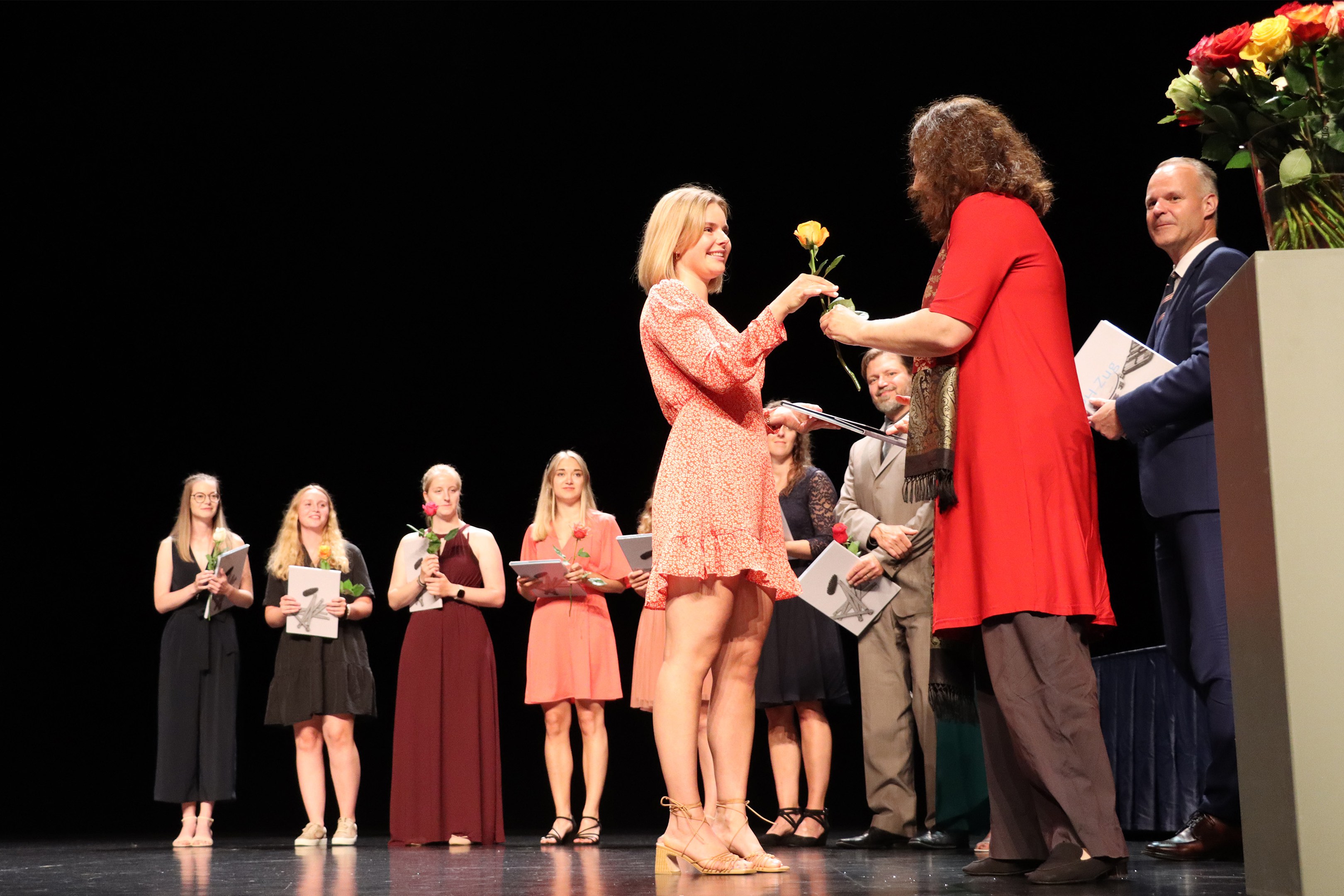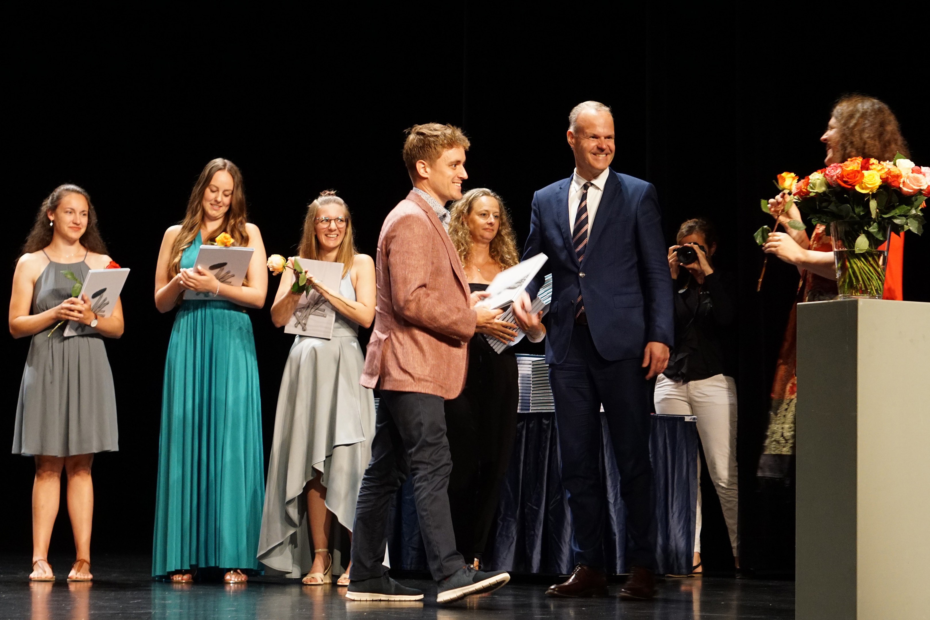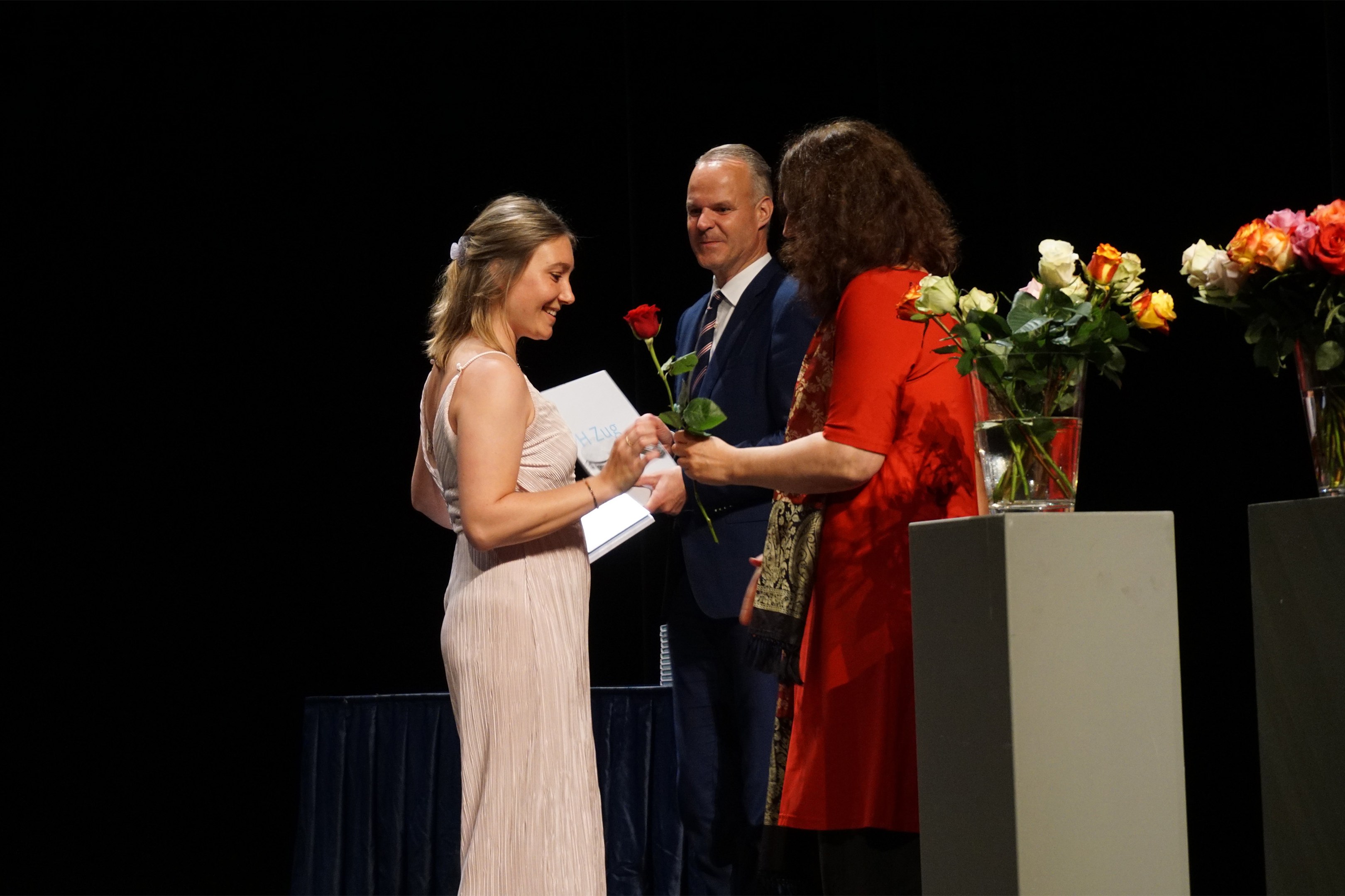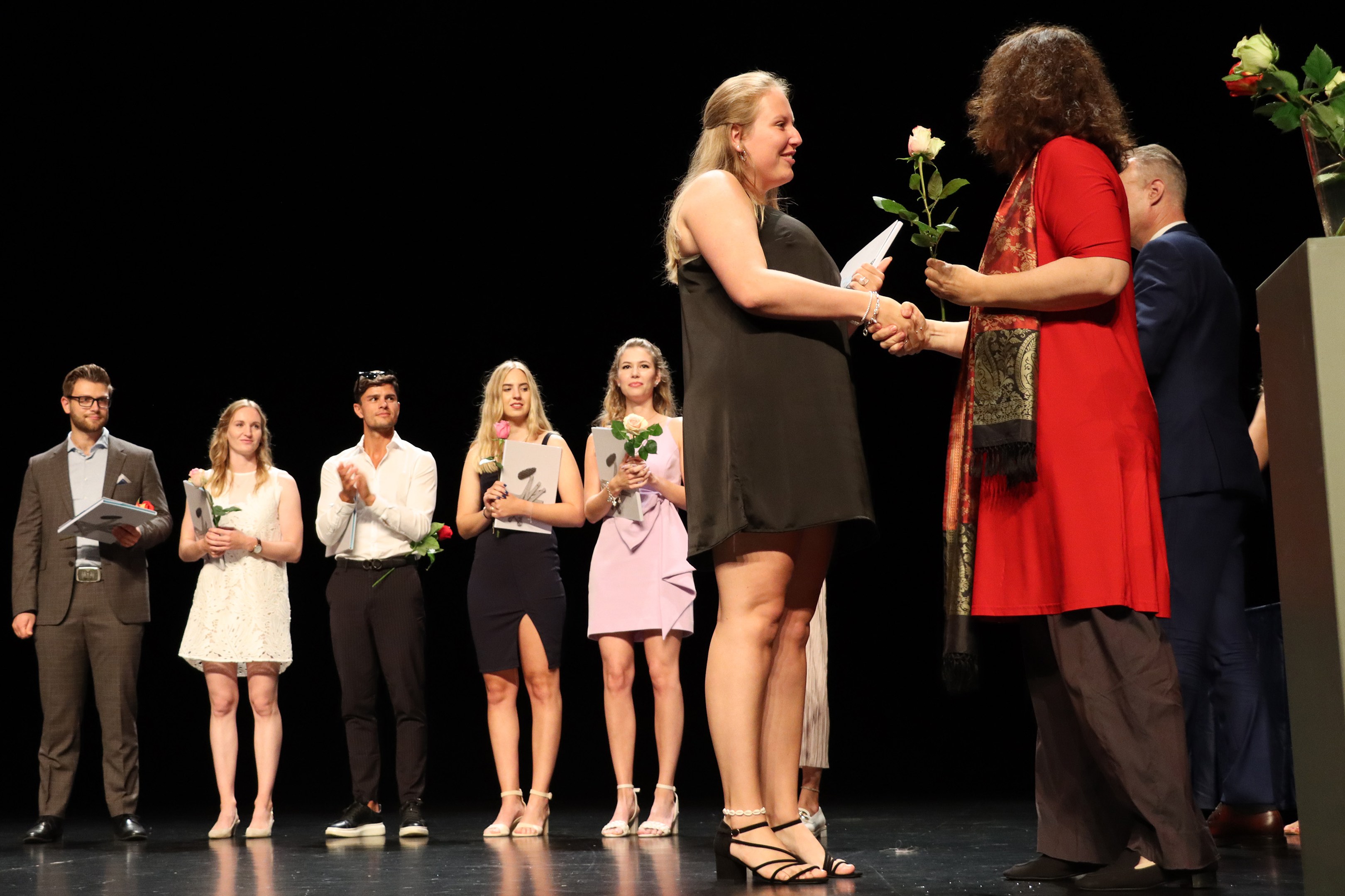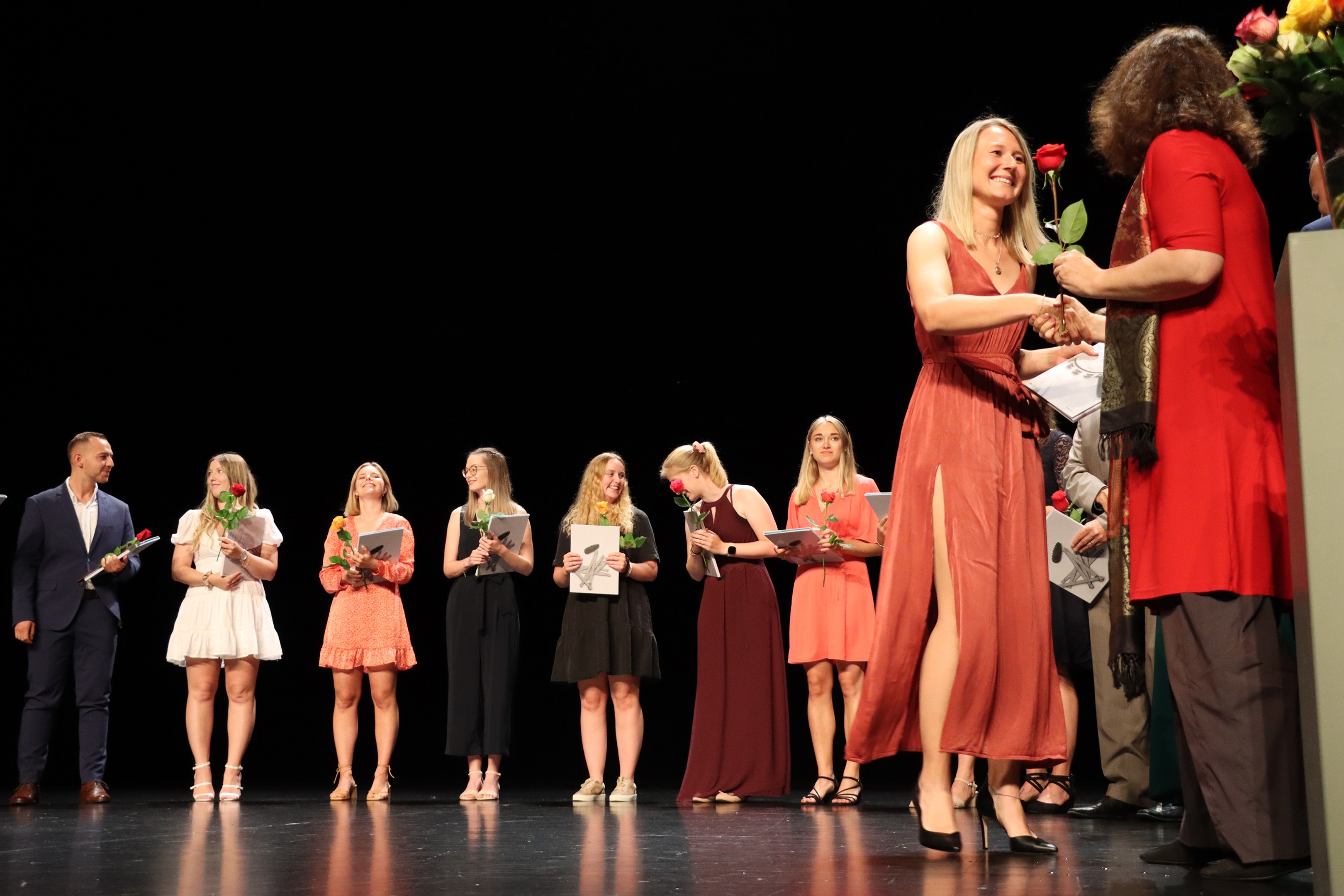 Moderiert wurde die Diplomfeier im Theater Casino Zug von Clemens Diesbergen, Prorektor und Leiter Ausbildung der PH Zug. Er führte durchs Programm und verdankte die Beiträge. Ein besonderer Dank kam der Studentin Elsa Nastase, die mit ihrer Geige und Klavierbegleitung den Auftakt wie auch den Abschluss der Feier gestaltete sowie den Studierenden des Abschlussjahrgangs mit der Vertiefung Musik, die die Feier mit Auszügen aus ihrem energiegeladenen Musical-Projekt bereicherten, zu. In ihrem Schlusswort wünscht auch die Rektorin Esther Kamm den Studierenden alles Gute für ihren beruflichen Weg und bedankte sich für deren Engagement im Studium.