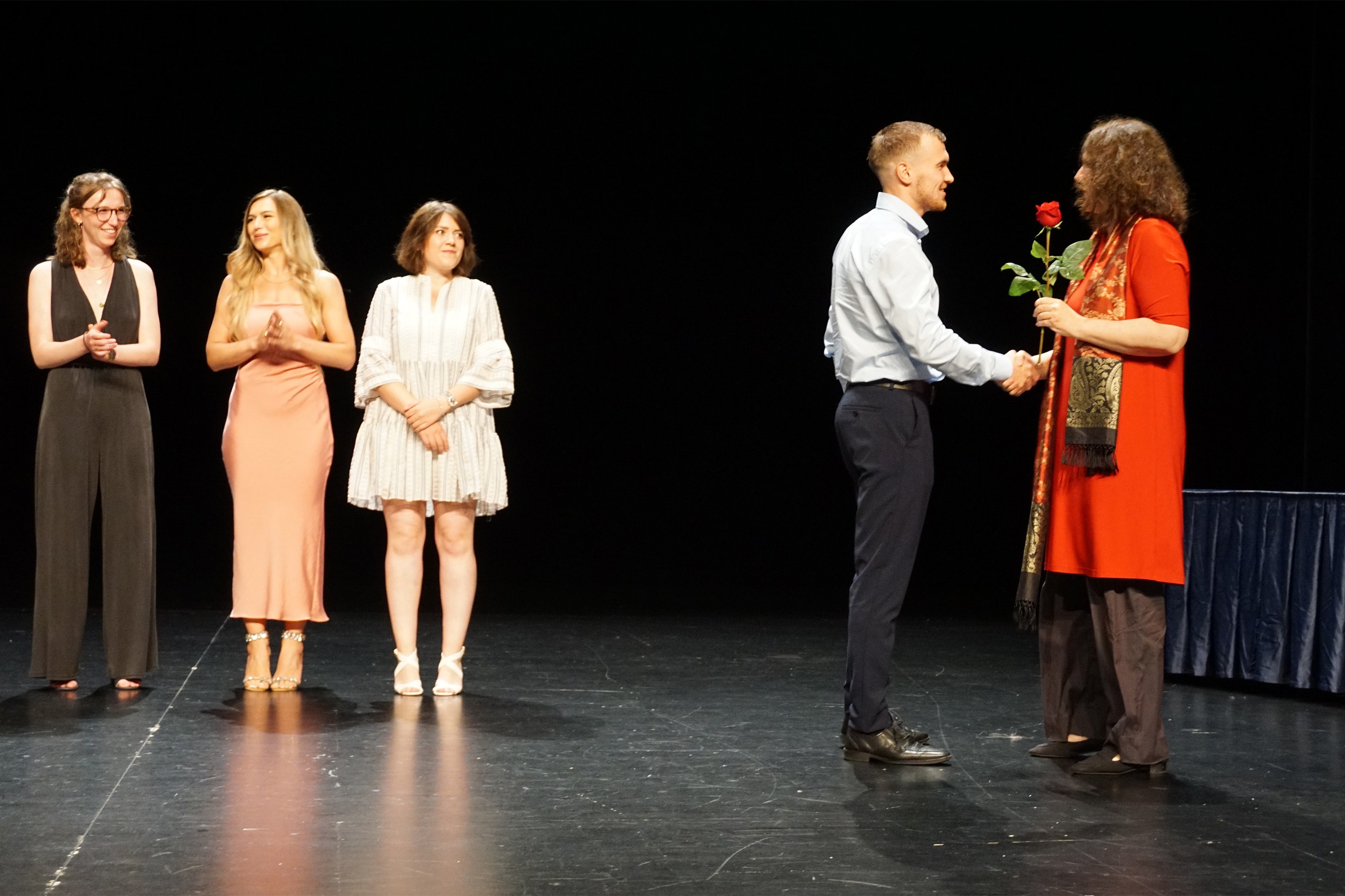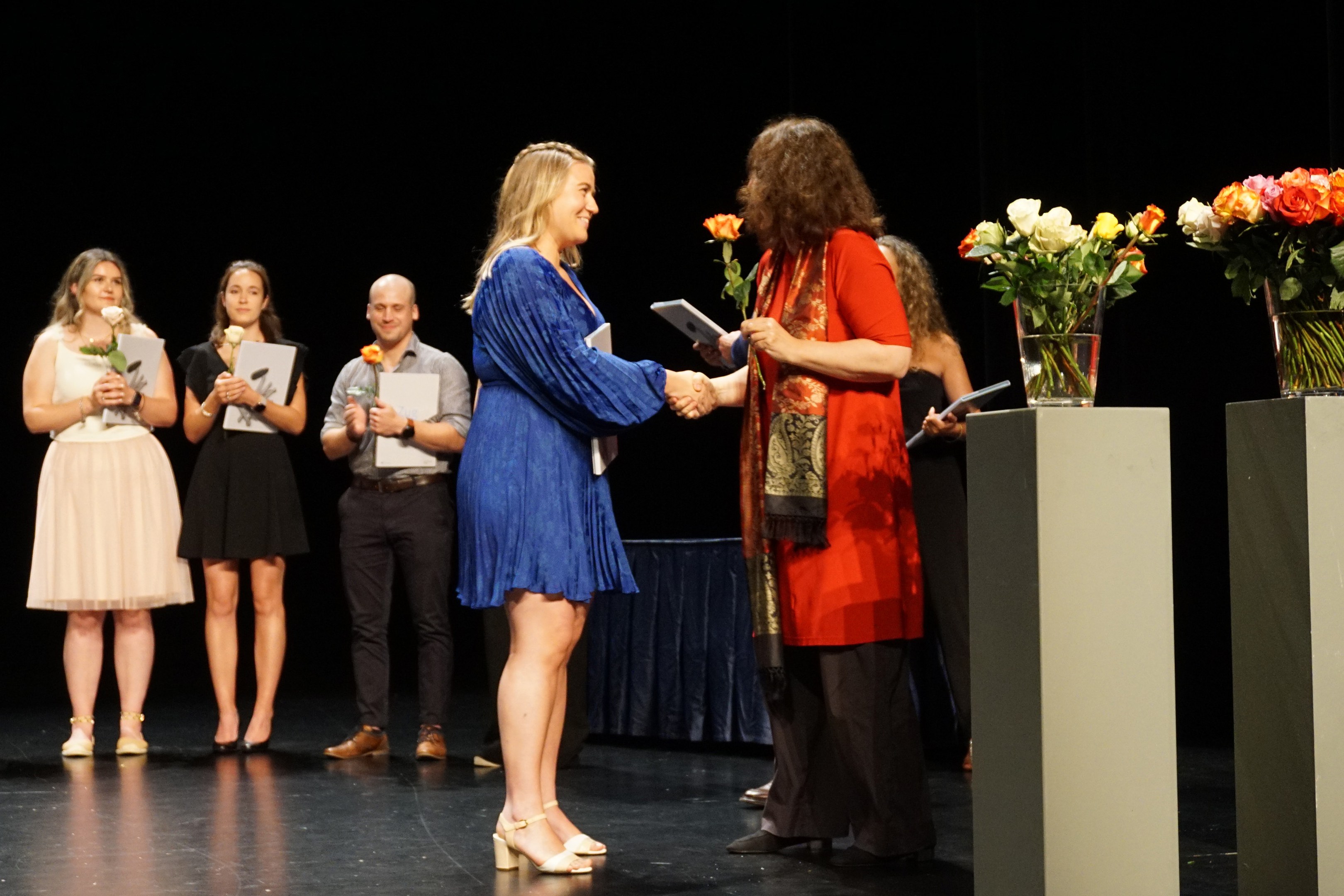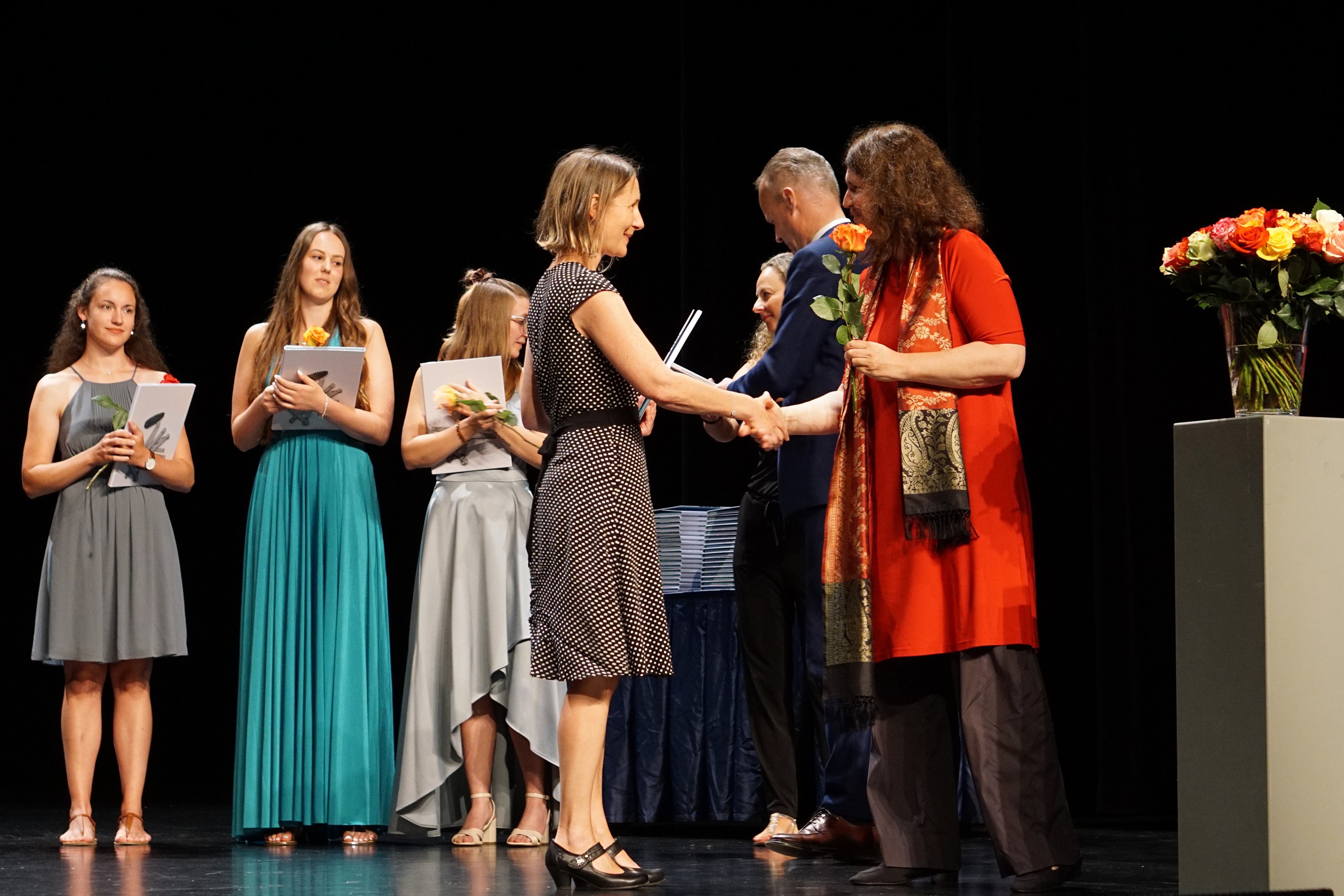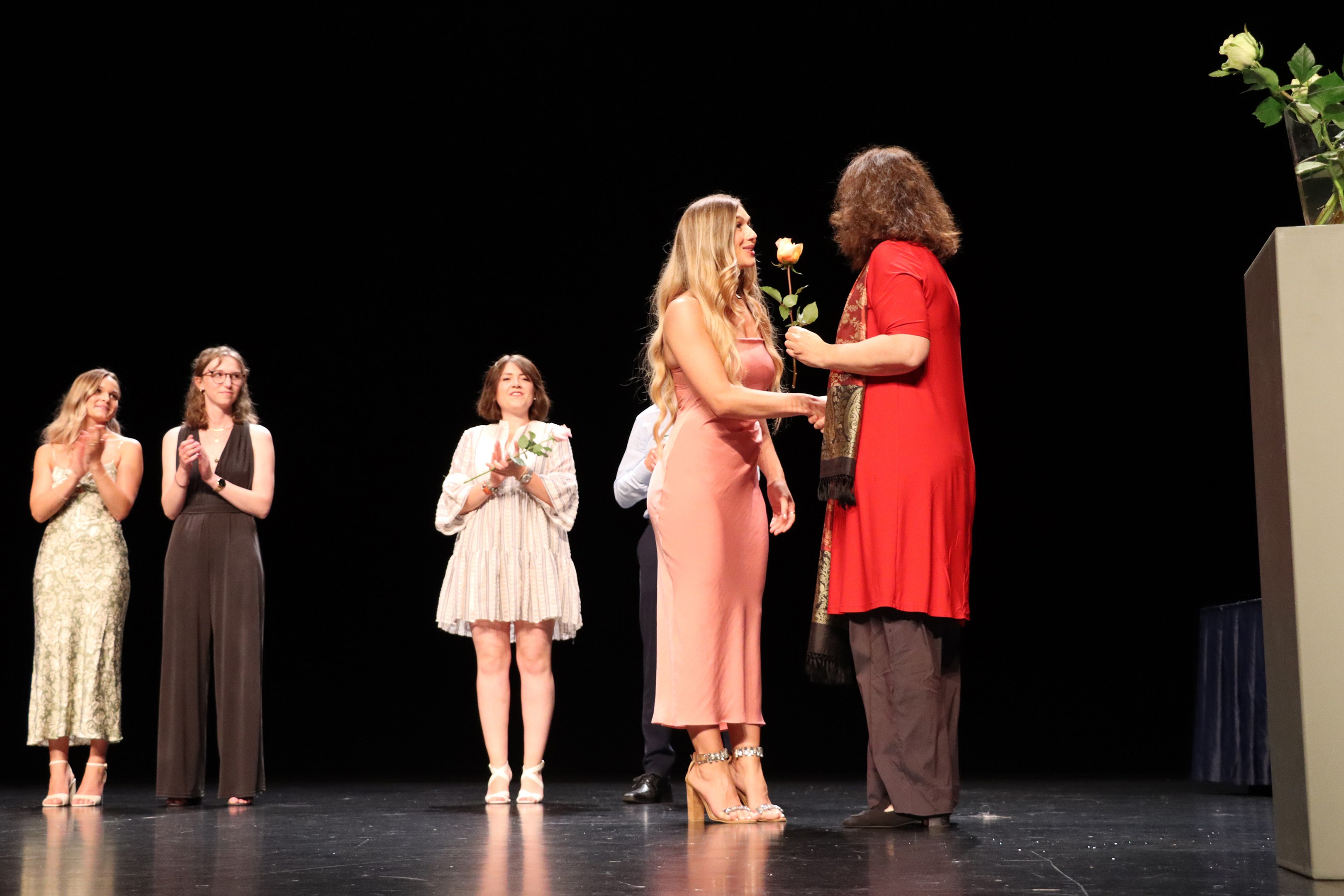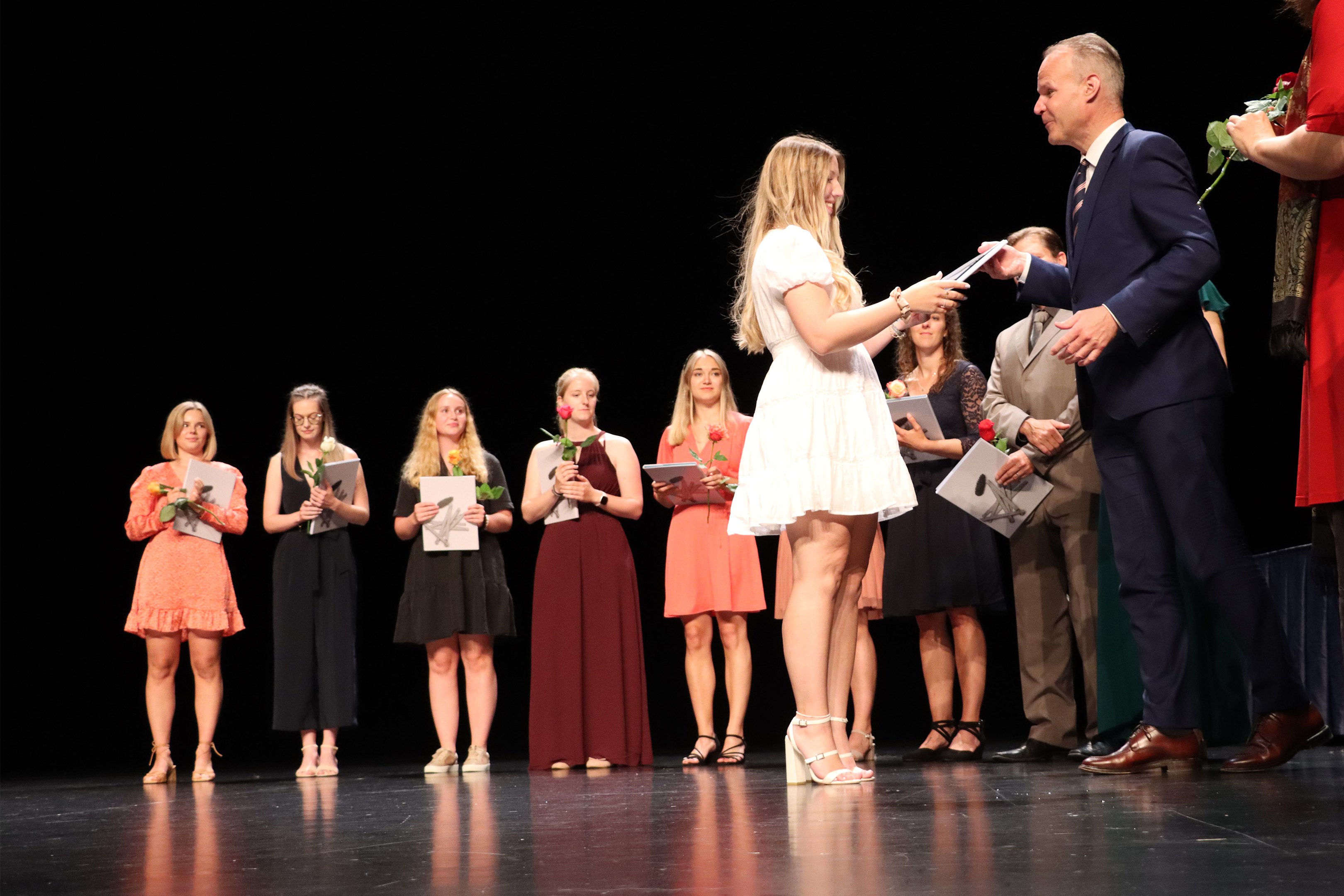 Moderiert wurde die Diplomfeier im Theater Casino Zug von Clemens Diesbergen, Prorektor und Leiter Ausbildung der PH Zug. Er führte durchs Programm und verdankte die Beiträge. Ein besonderer Dank kam der Studentin Elsa Nastase, die mit ihrer Geige und Klavierbegleitung den Auftakt wie auch den Abschluss der Feier gestaltete sowie den Studierenden des Abschlussjahrgangs mit der Vertiefung Musik, die die Feier mit Auszügen aus ihrem energiegeladenen Musical-Projekt bereicherten, zu. In ihrem Schlusswort wünscht auch die Rektorin Esther Kamm den Studierenden alles Gute für ihren beruflichen Weg und bedankte sich für deren Engagement im Studium.