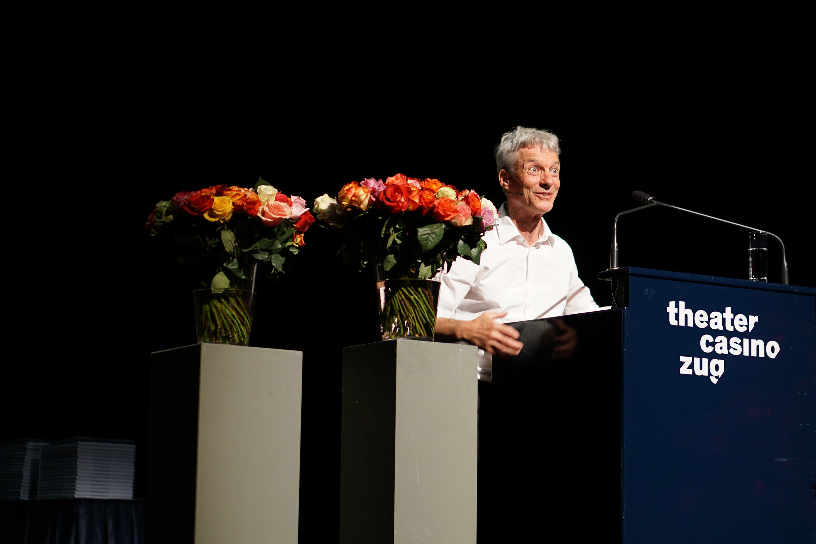 «Max u Vreni. Di si ir sibete Klass. Di si so normau. Di hei no nie Spezialunterricht gha. Das isch doch nid normau.» Mit seinem pointierten und humoristischen Beitrag sorgte Gerhard Tschan, Musiker und Kabarettist, für massgeschneiderte Unterhaltung. Er erzählte aus seinem Lehrerleben, erläuterte das Projekt «saubere Schule» und sorgte mit Rock und klangvollem Swing für Stimmung.