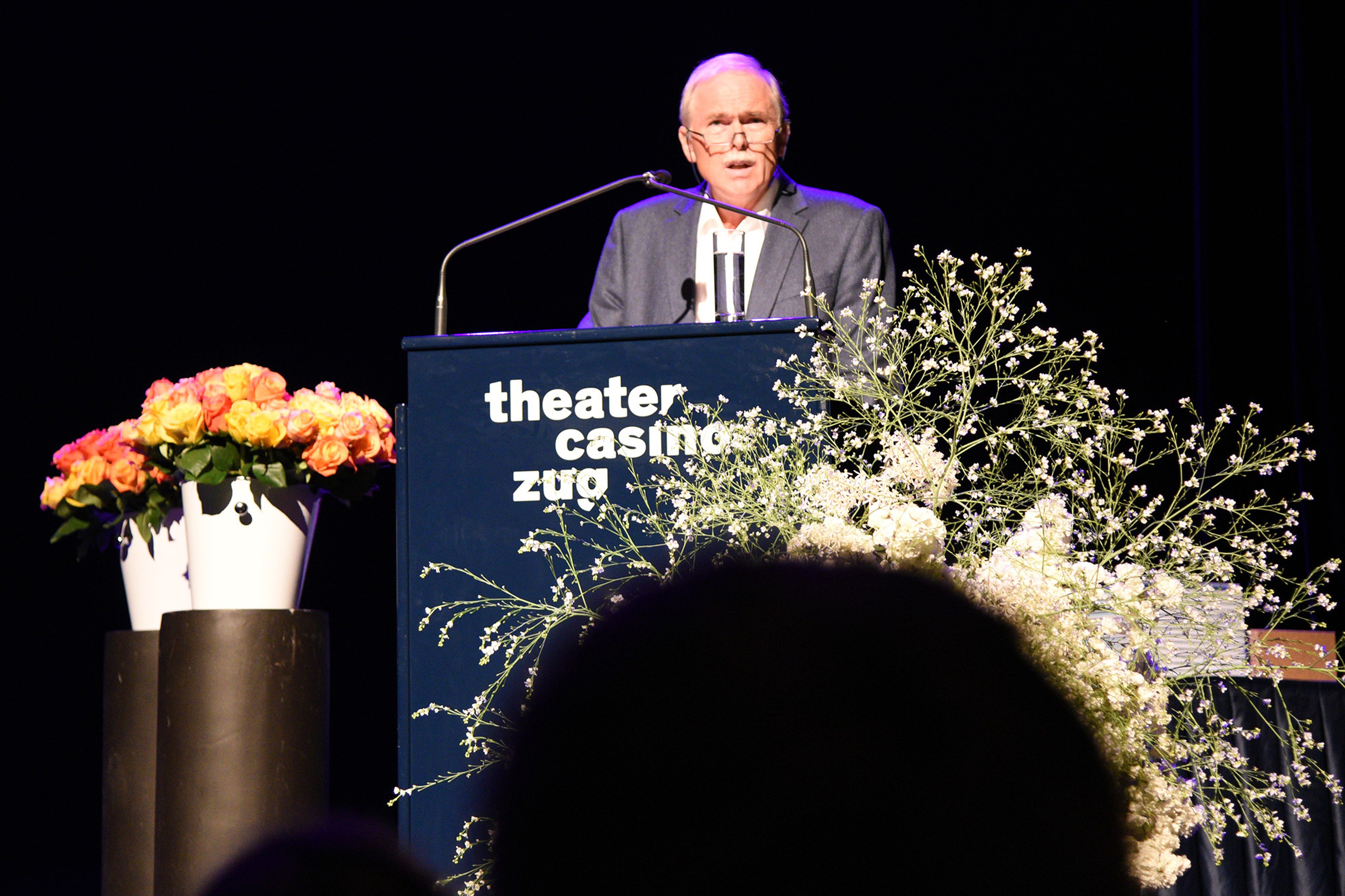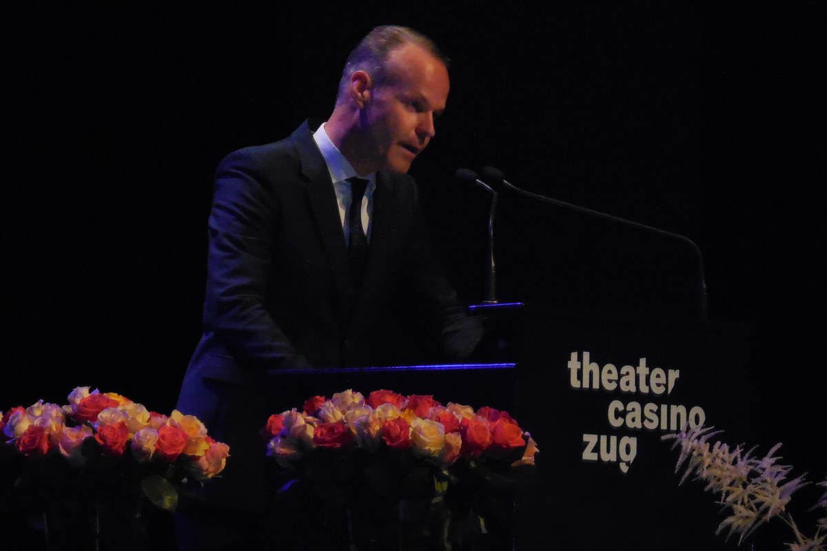 Die Diplomrede hielt Christof Wolfisberg, bekannt als Hälfte des Plakatblätter-Duos «OHNE ROLF» und ehemaliger Seminarist des damaligen Lehrerseminars St. Michael Zug. Mit seiner «perfekt» vorbereiteten Ansprache, in der selbst die Trinkpausen des Referenten pingelig genau nach Plan verliefen, erinnerte er die frischgebackenen Pädagoginnen und Pädagogen humoristisch daran, dass man – selbst bei einer optimal vorbereiteten Lektion nach Vorbereitungs-Raster – vor dem Scheitern nicht verschont bleibt.