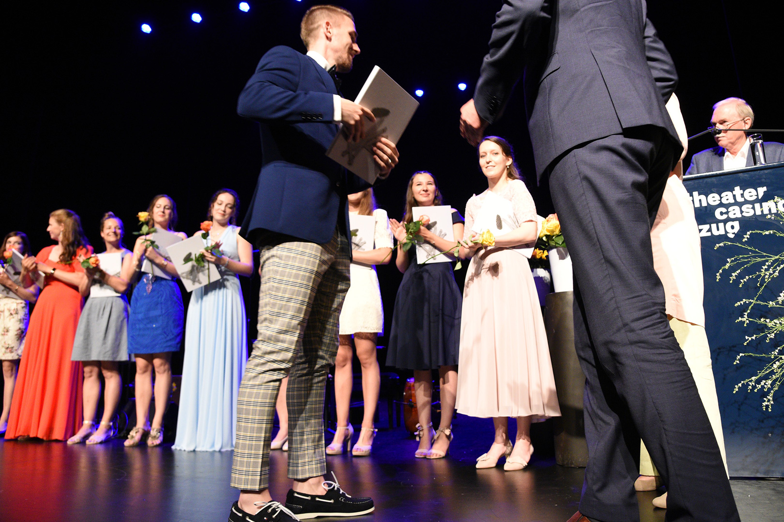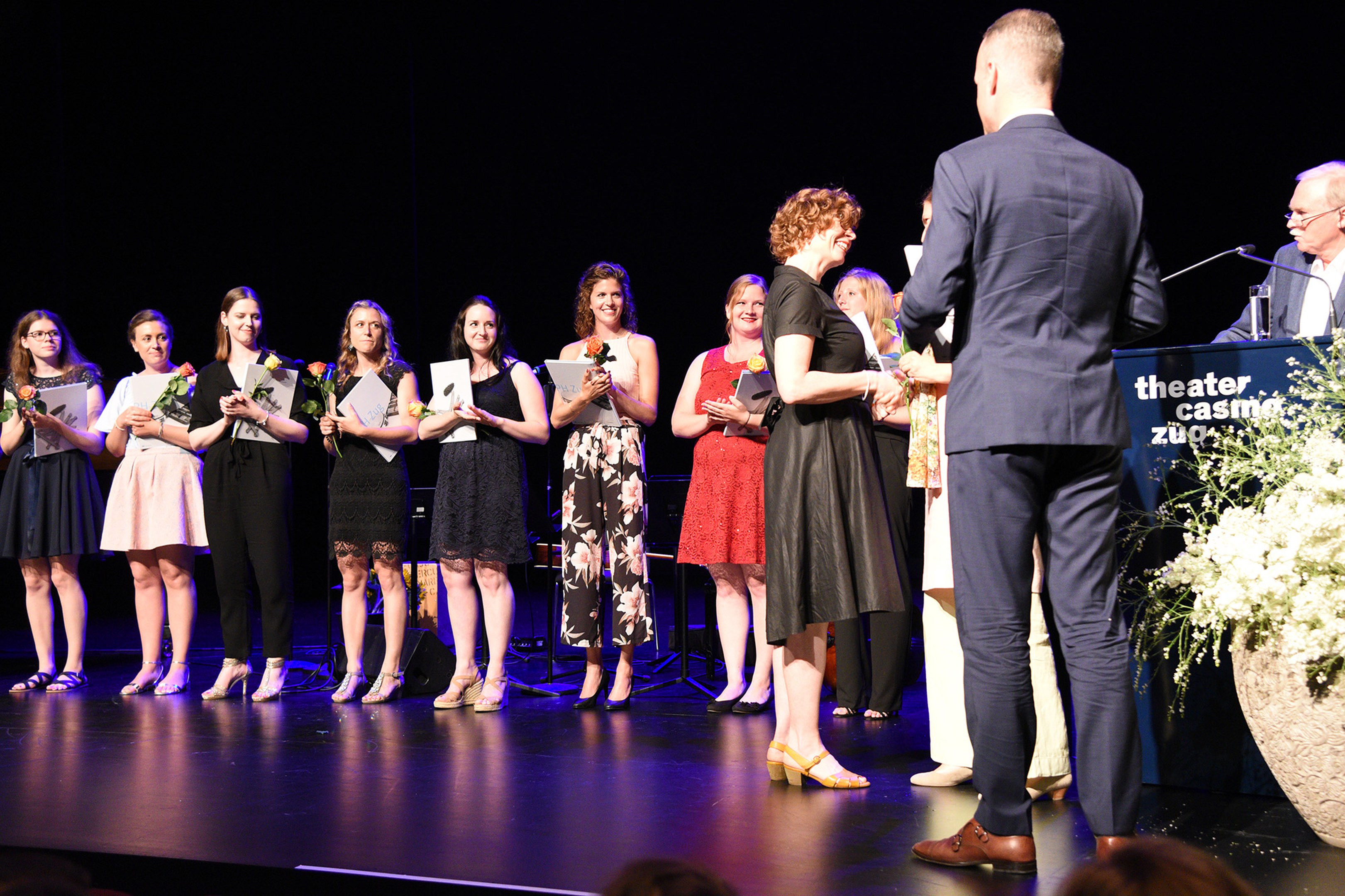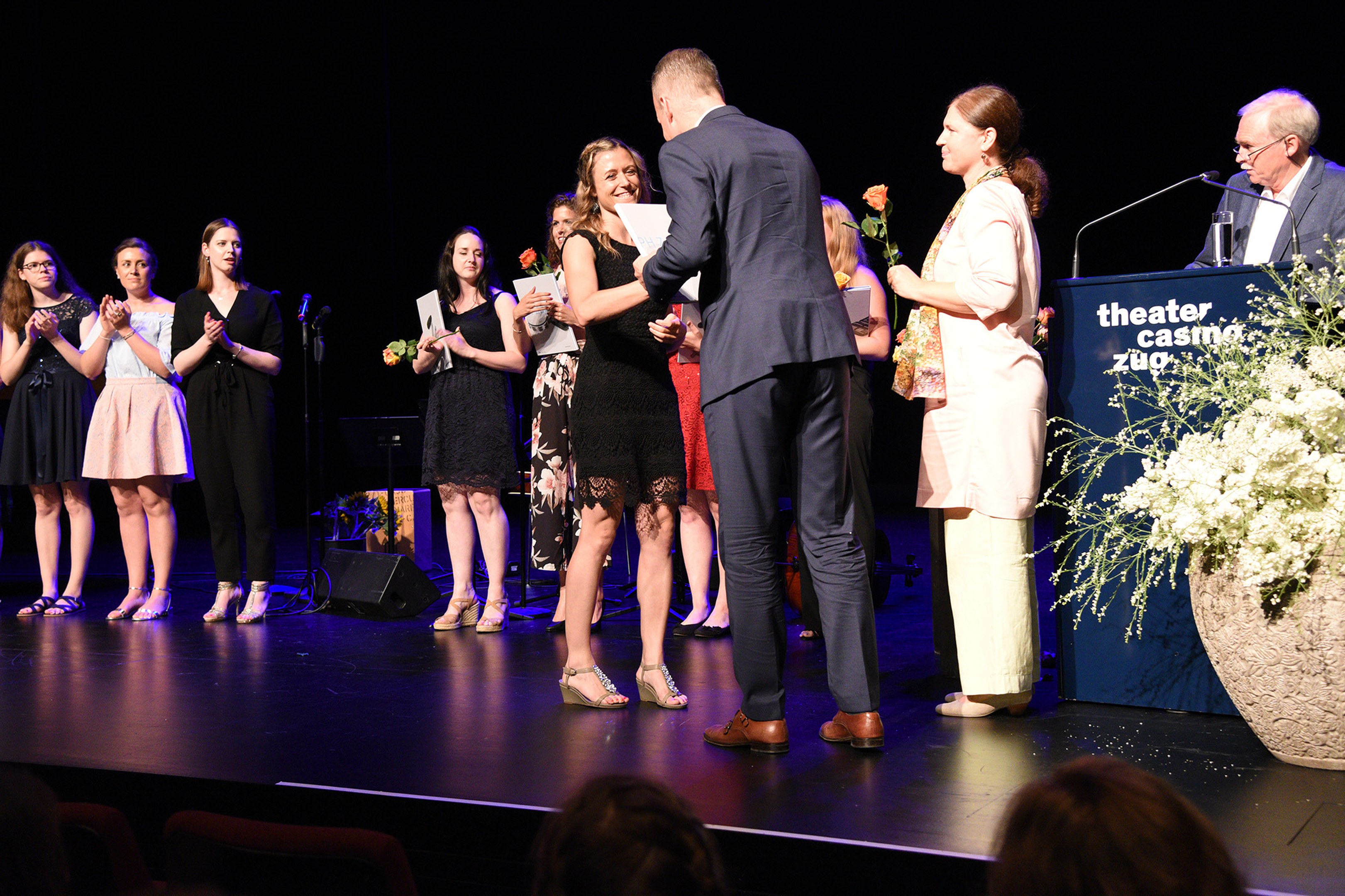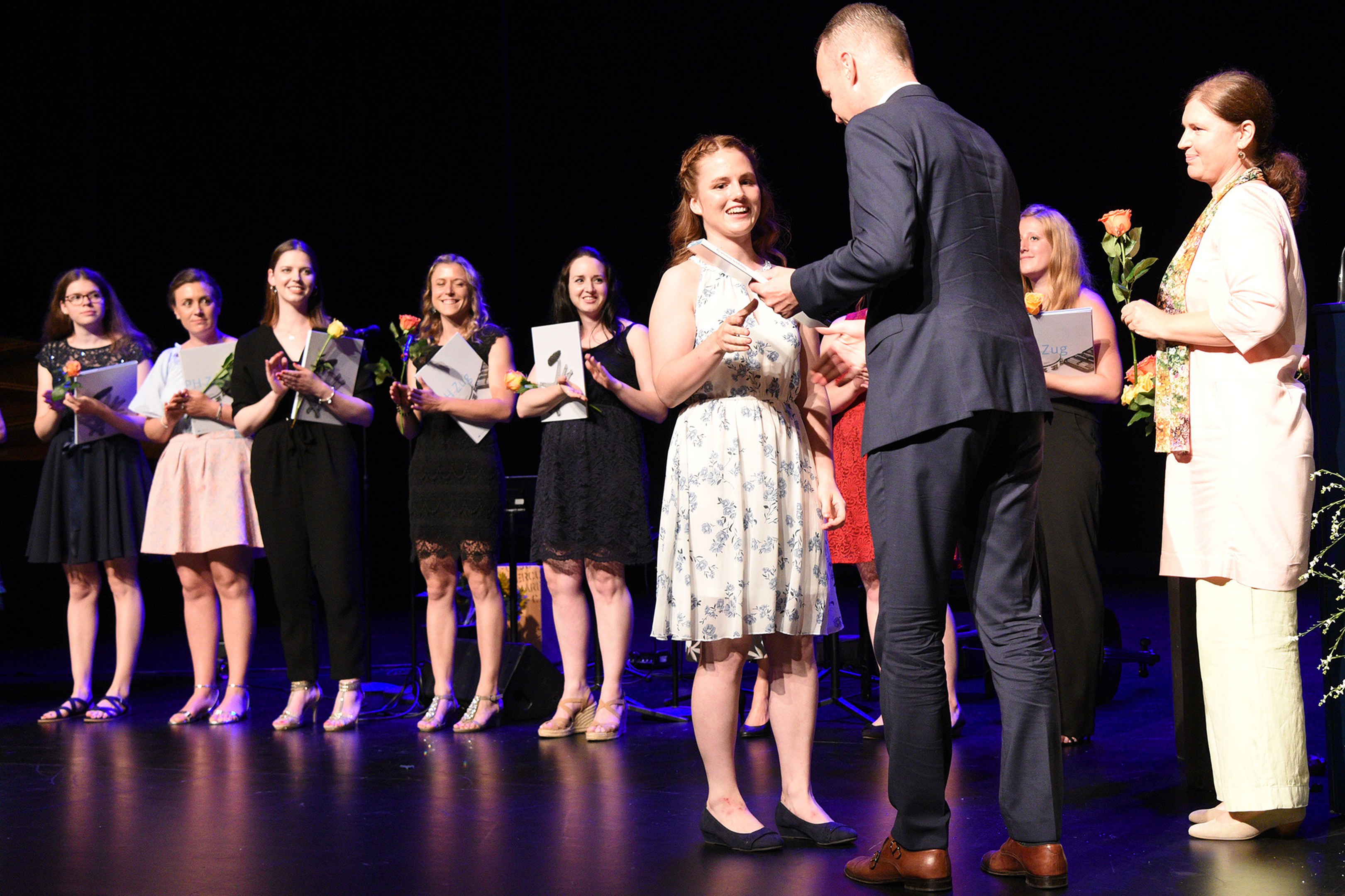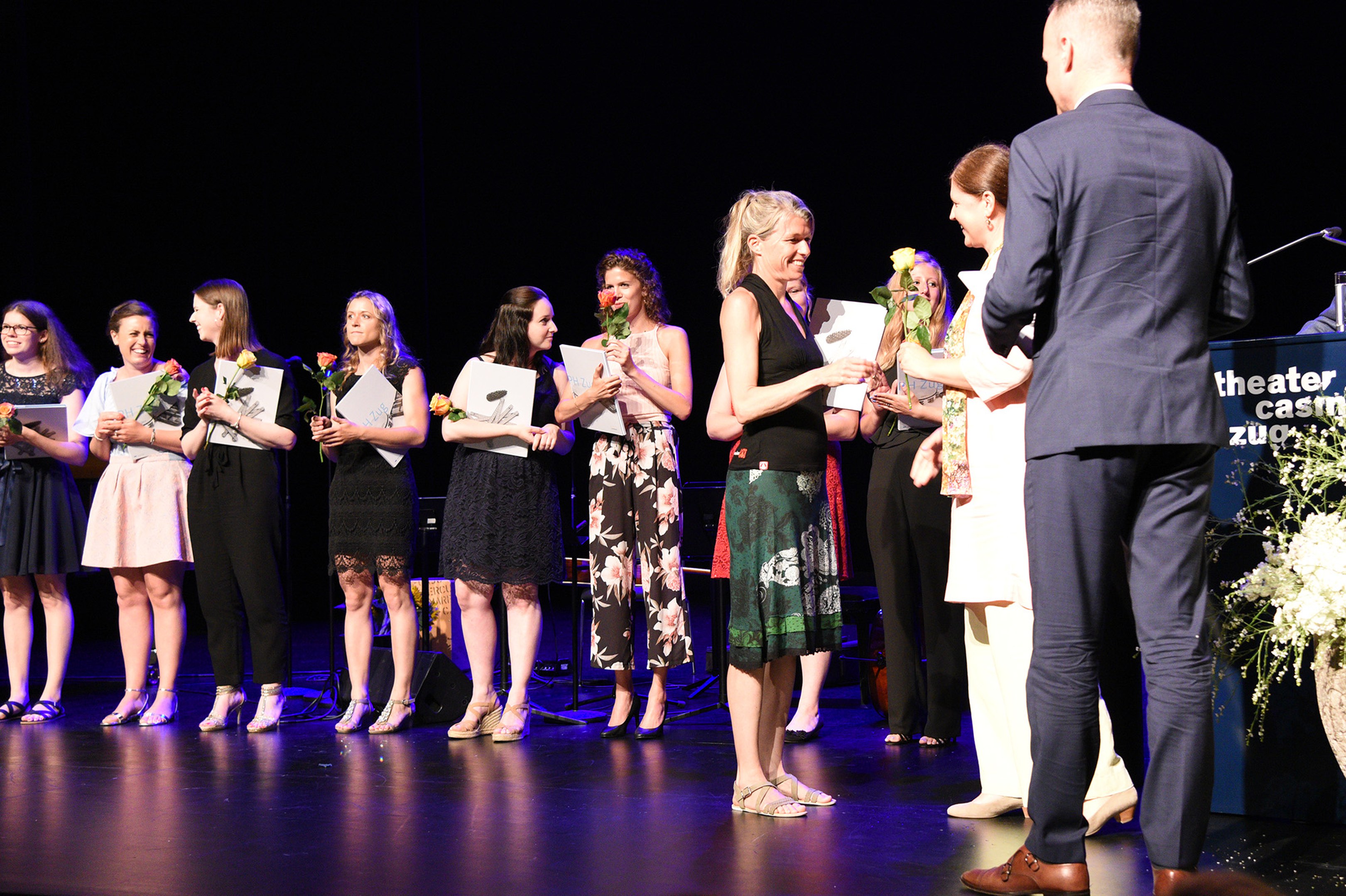 Moderiert wurde die Diplomfeier von Clemens Diesbergen, Prorektor und Leiter Ausbildung der PH Zug. Für die musikalische Umrahmung der im Theater Casino Zug durchgeführten Feier sorgten Studierende der PH Zug. Beim anschliessenden Apéro bot sich den frisch diplomierten Lehrpersonen die Gelegenheit, mit Eltern und Angehörigen sowie mit Dozierenden und Mitarbeitenden der PH Zug auf ihren erfolgreichen Abschluss anzustossen.