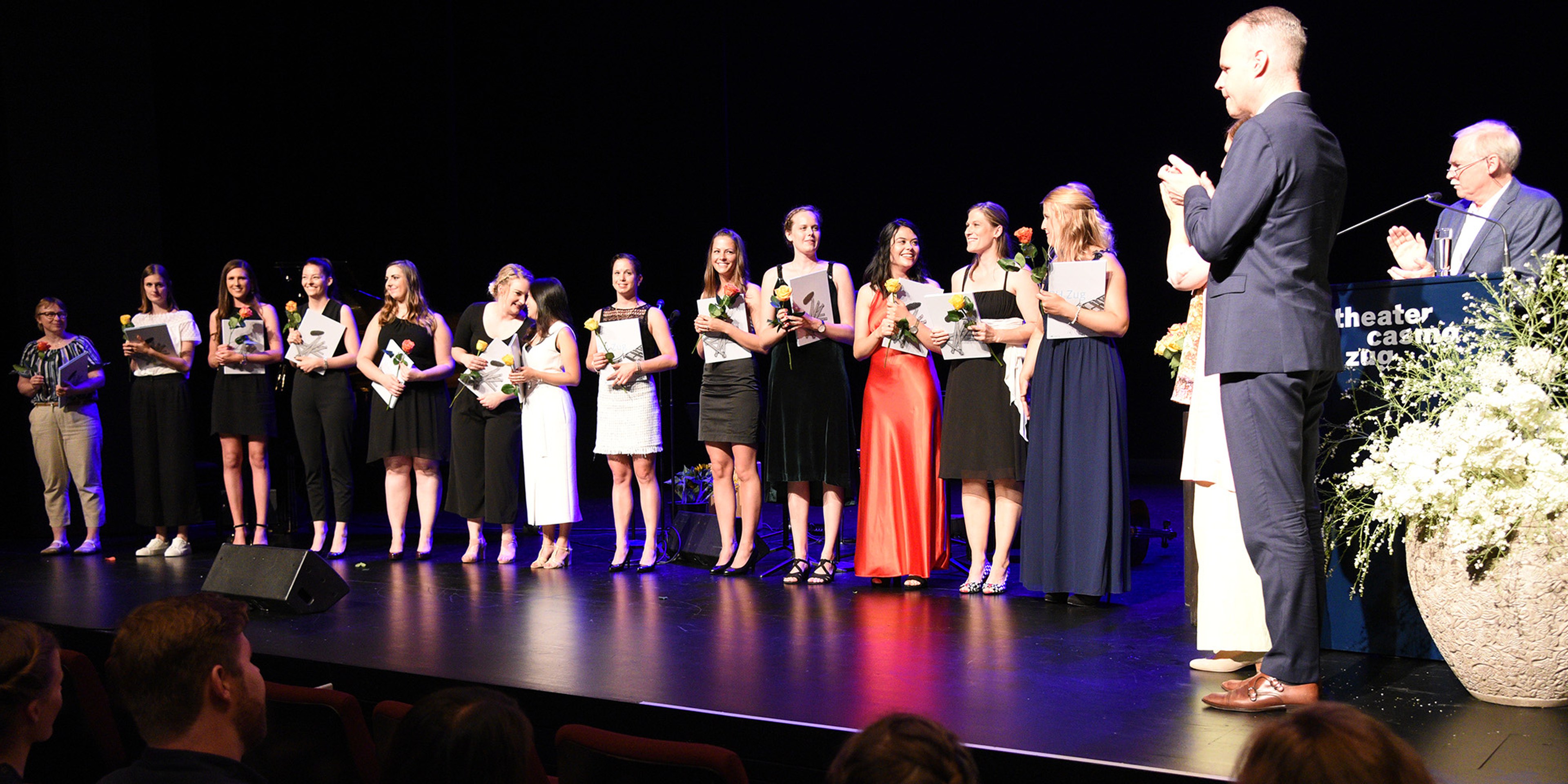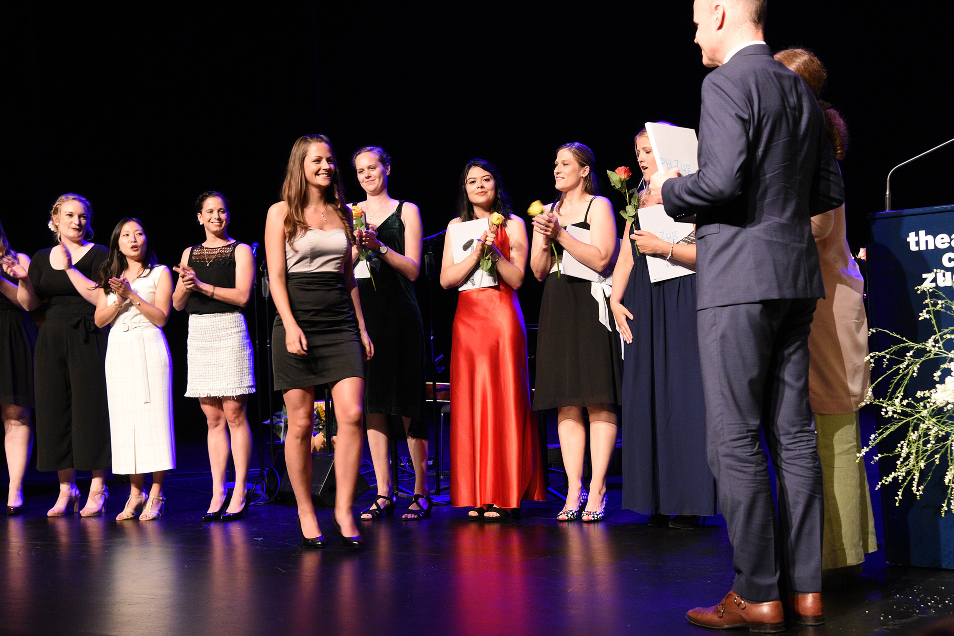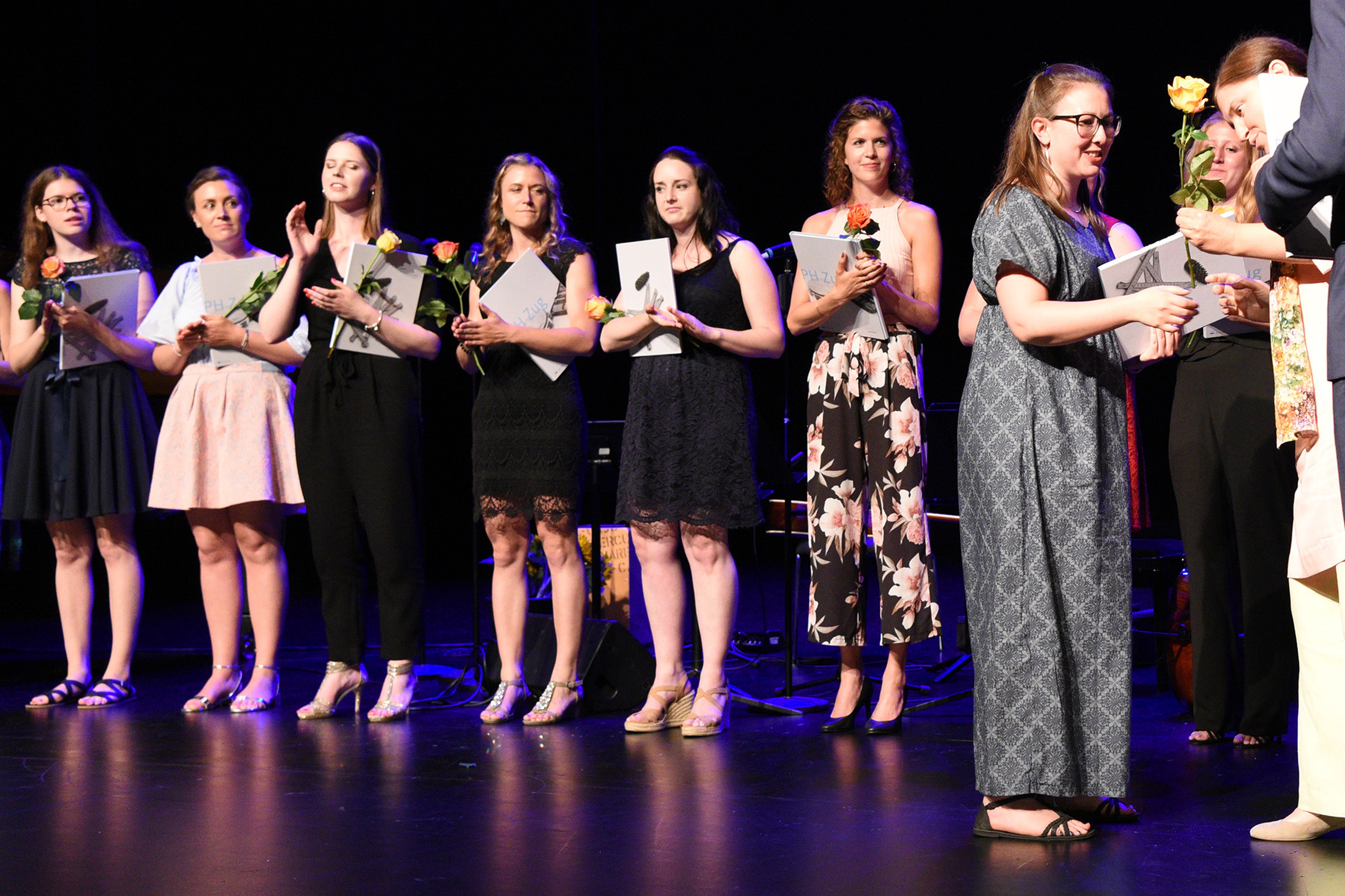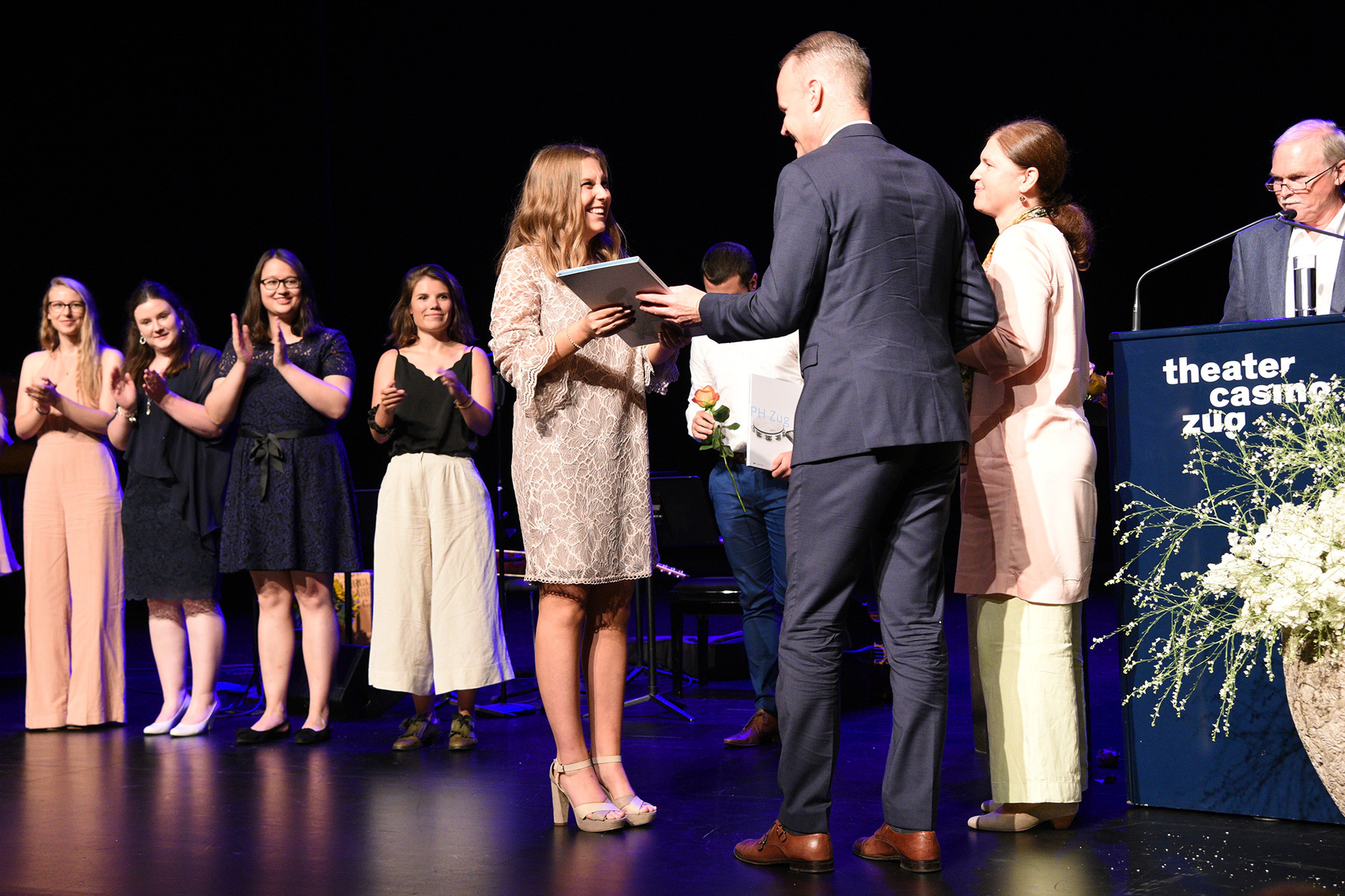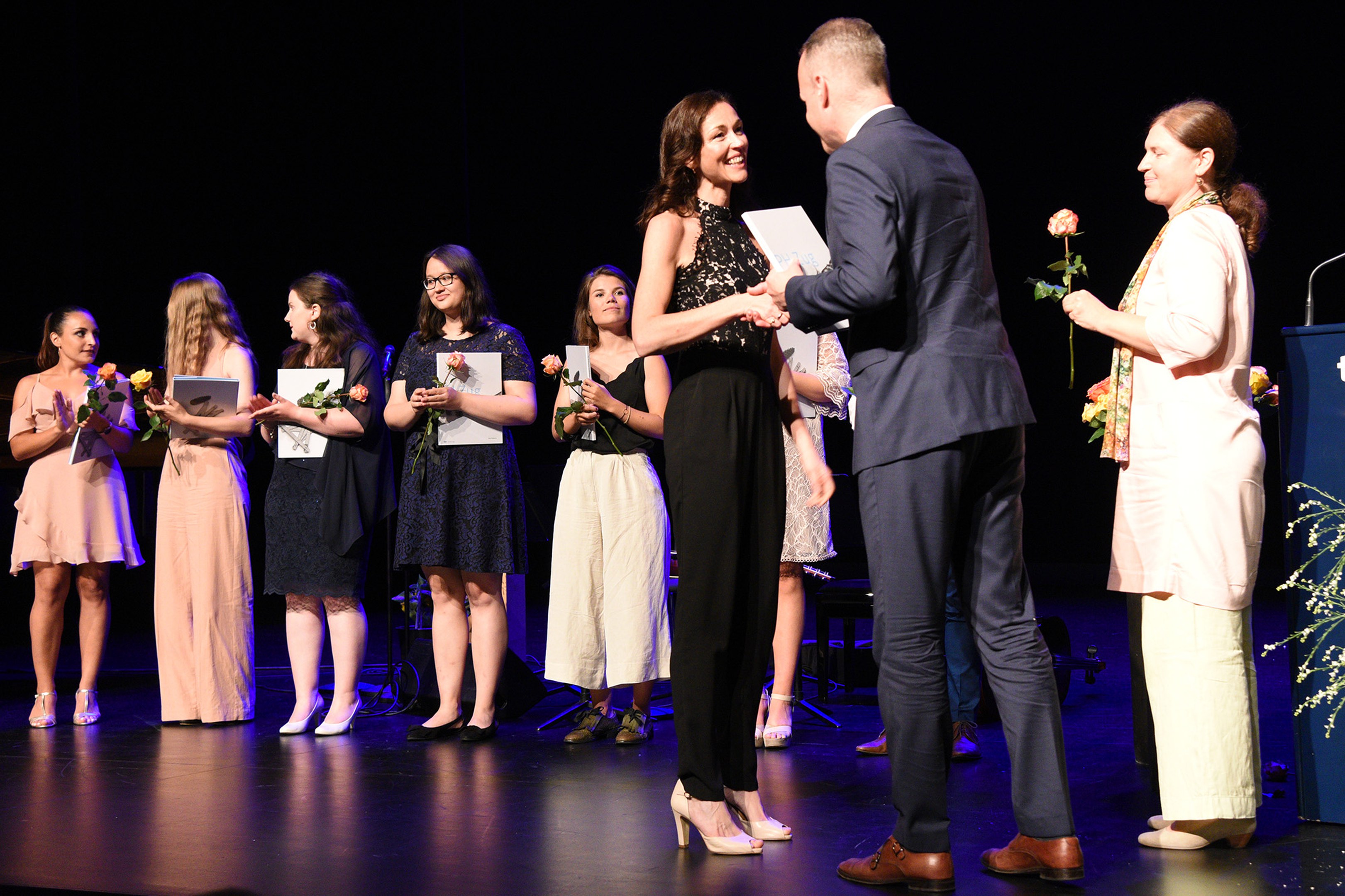 Moderiert wurde die Diplomfeier von Clemens Diesbergen, Prorektor und Leiter Ausbildung der PH Zug. Für die musikalische Umrahmung der im Theater Casino Zug durchgeführten Feier sorgten Studierende der PH Zug. Beim anschliessenden Apéro bot sich den frisch diplomierten Lehrpersonen die Gelegenheit, mit Eltern und Angehörigen sowie mit Dozierenden und Mitarbeitenden der PH Zug auf ihren erfolgreichen Abschluss anzustossen.