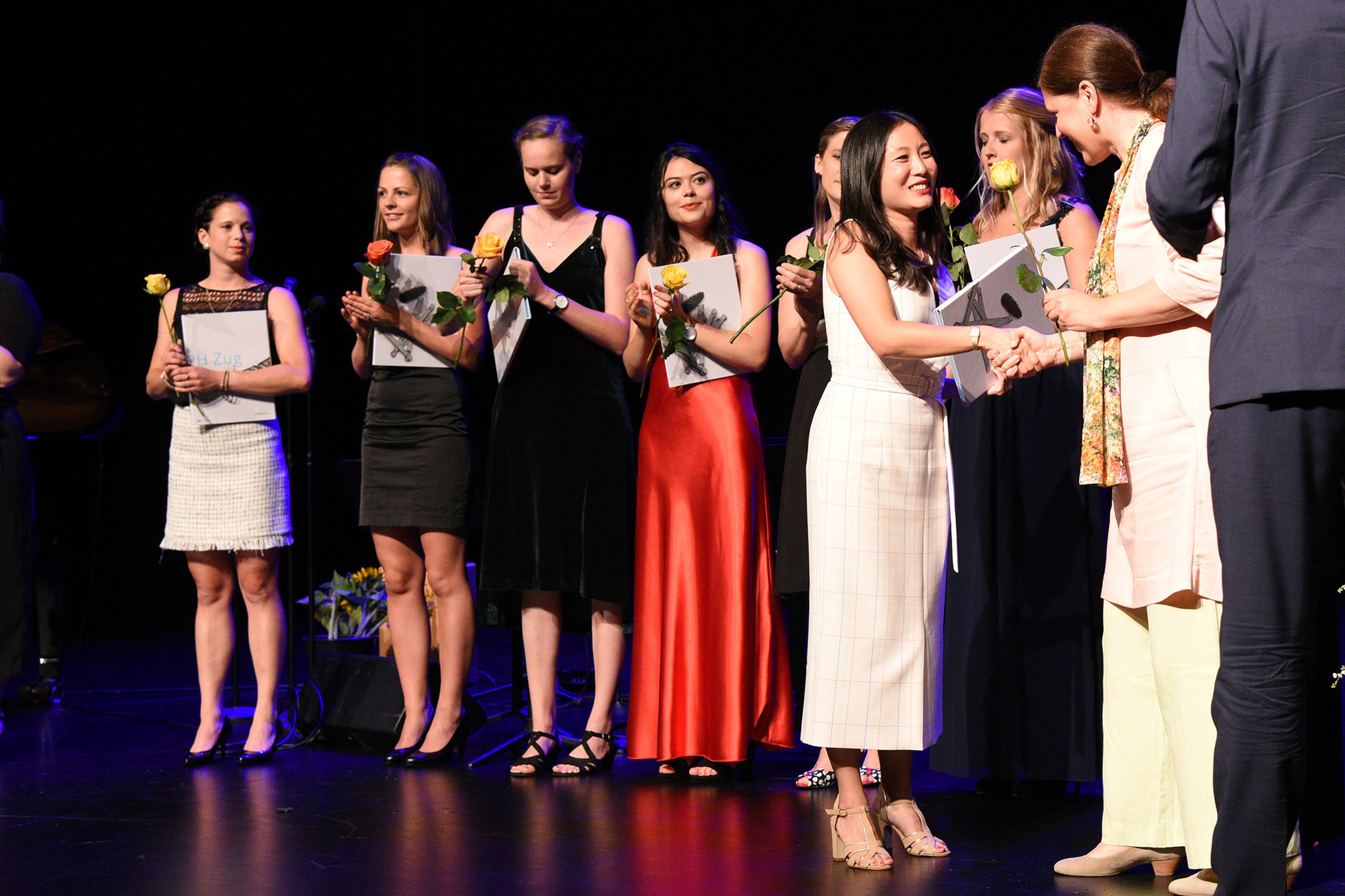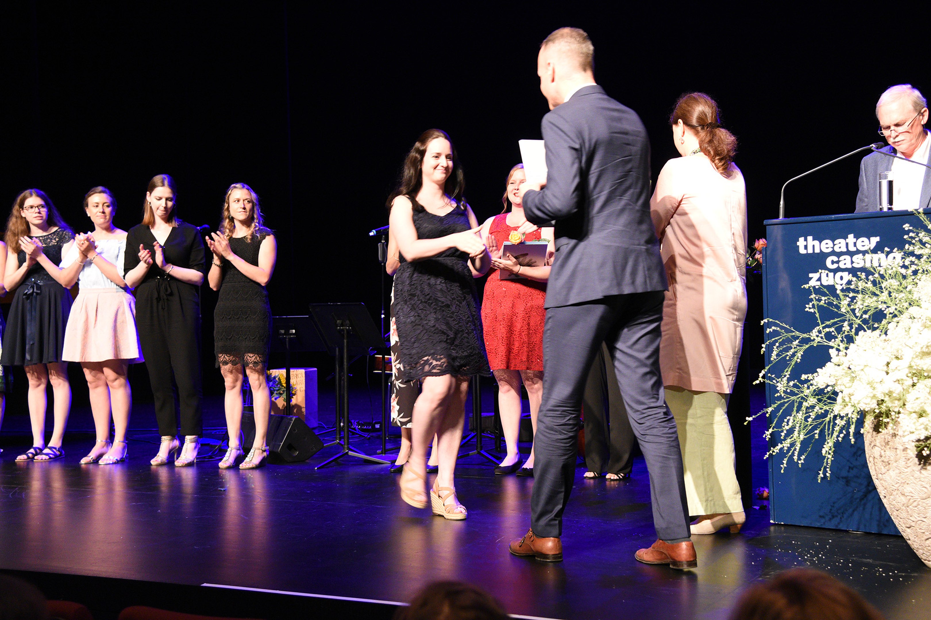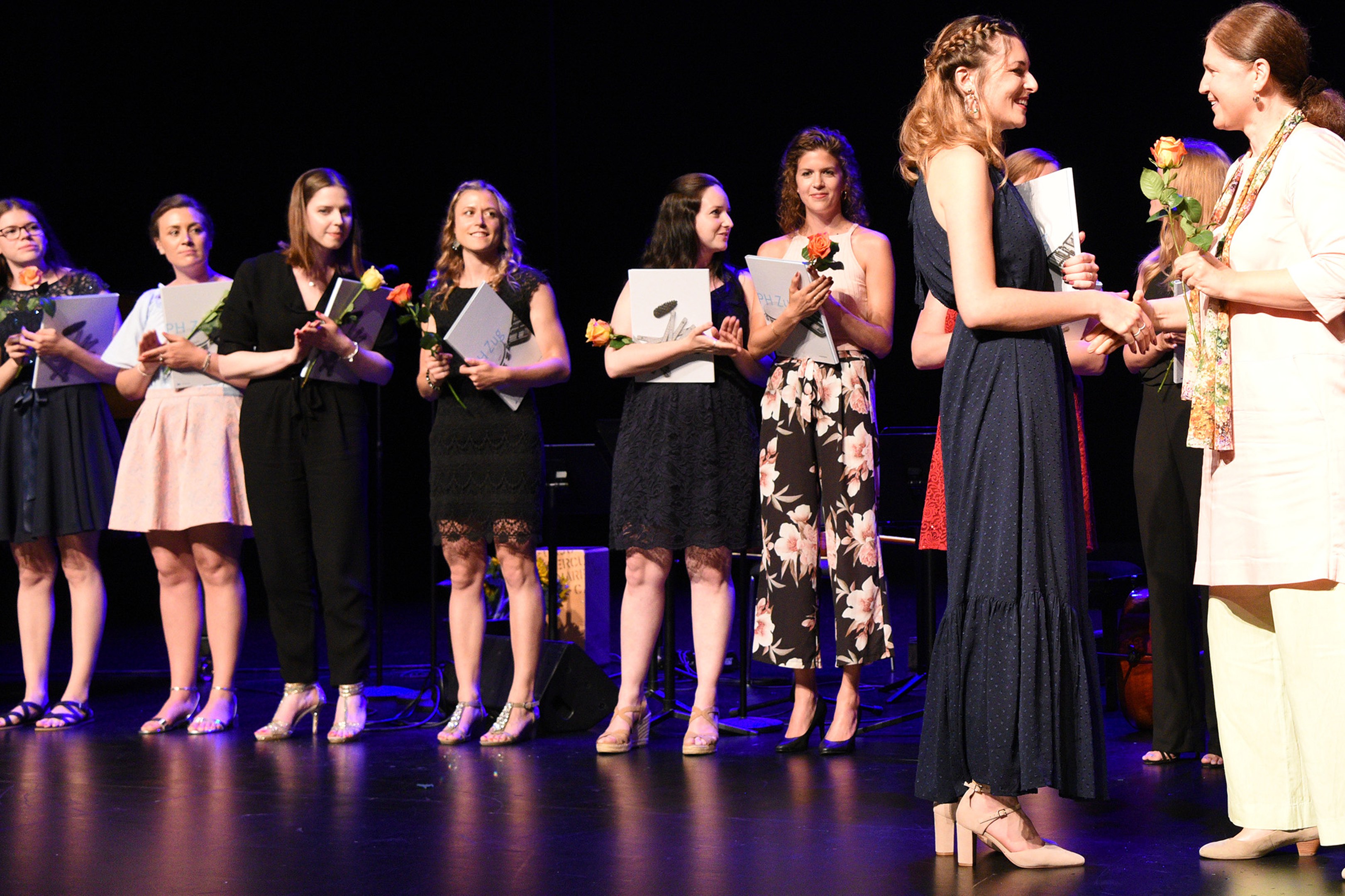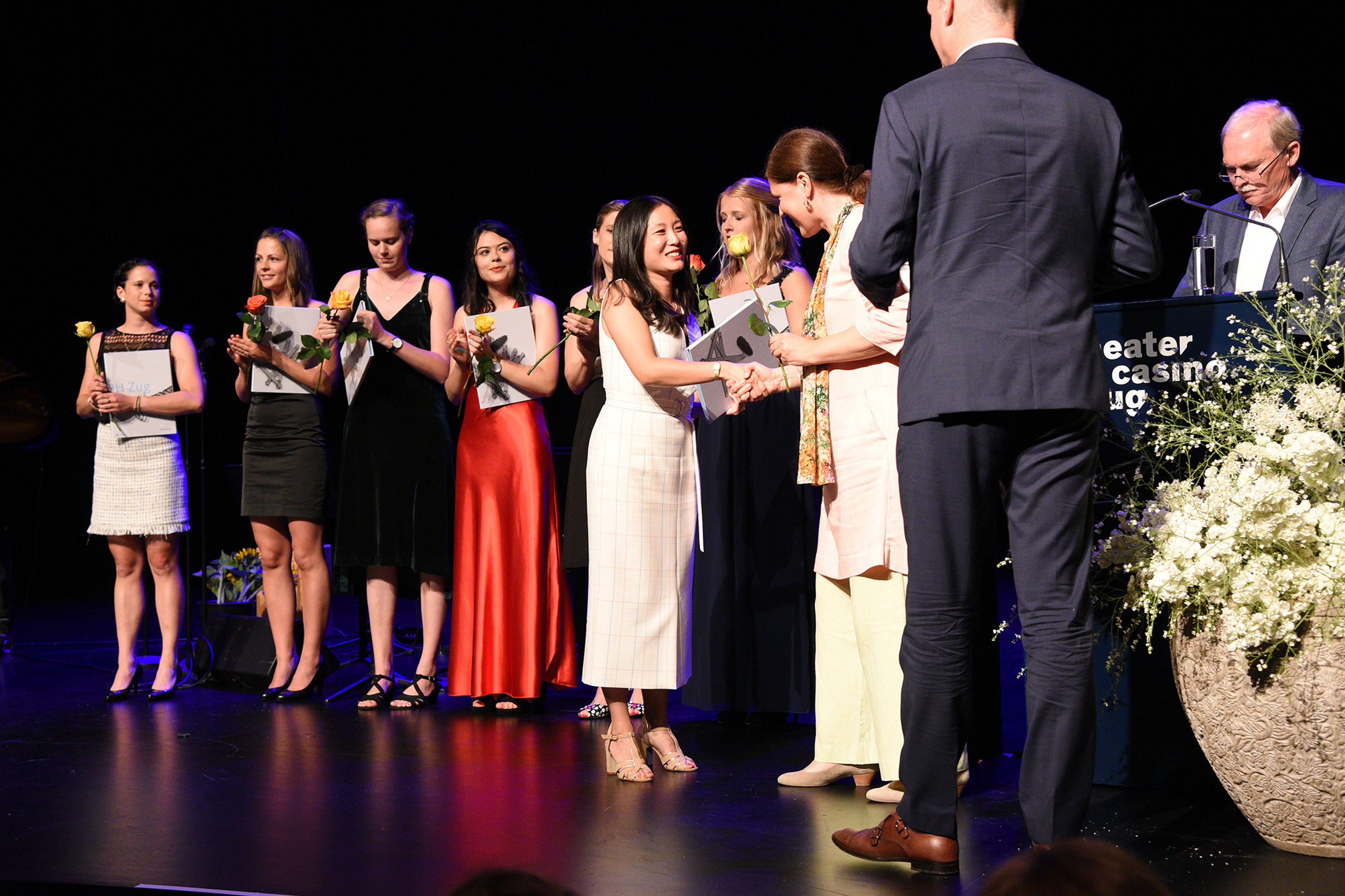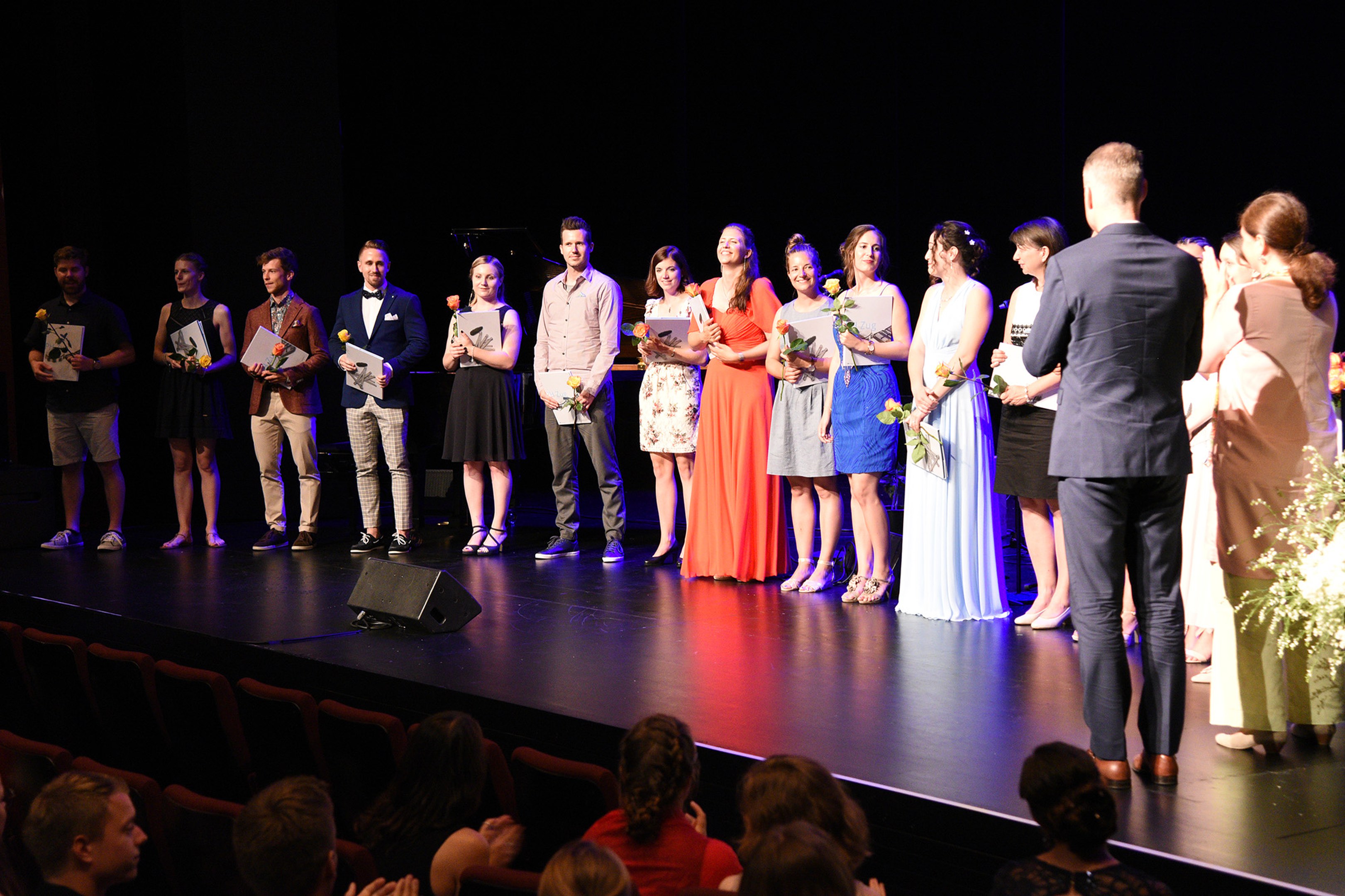 Moderiert wurde die Diplomfeier von Clemens Diesbergen, Prorektor und Leiter Ausbildung der PH Zug. Für die musikalische Umrahmung der im Theater Casino Zug durchgeführten Feier sorgten Studierende der PH Zug. Beim anschliessenden Apéro bot sich den frisch diplomierten Lehrpersonen die Gelegenheit, mit Eltern und Angehörigen sowie mit Dozierenden und Mitarbeitenden der PH Zug auf ihren erfolgreichen Abschluss anzustossen.