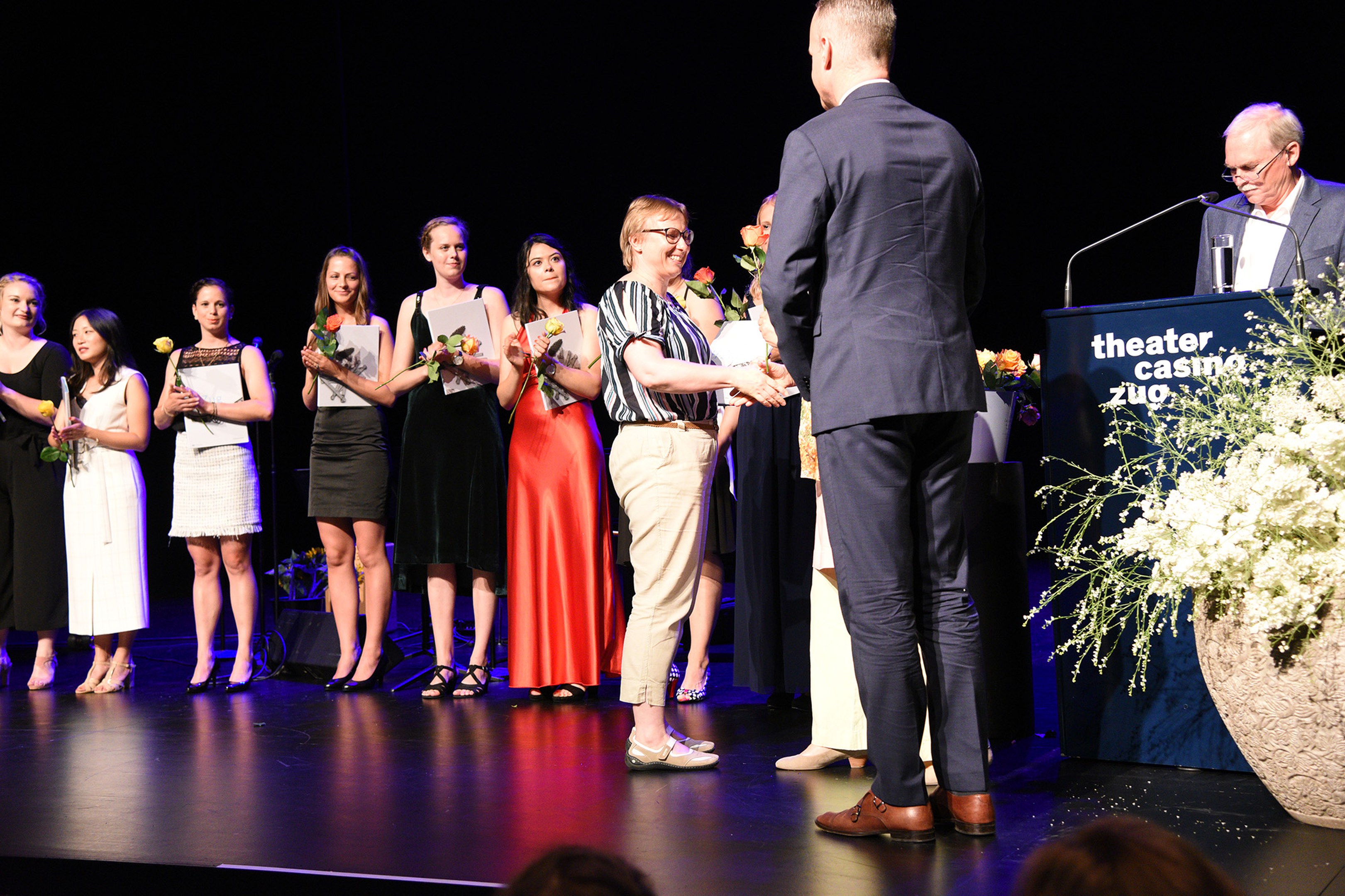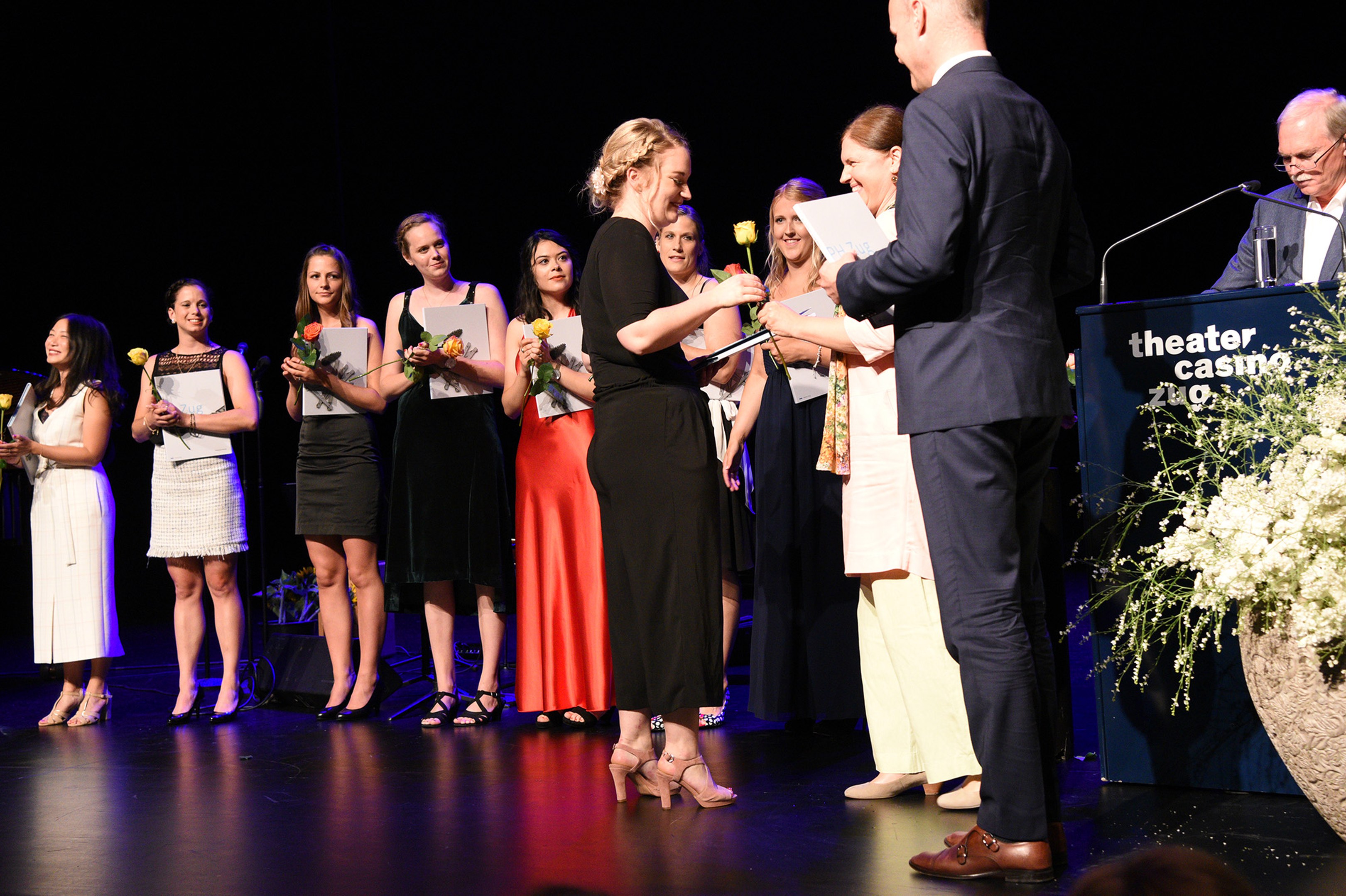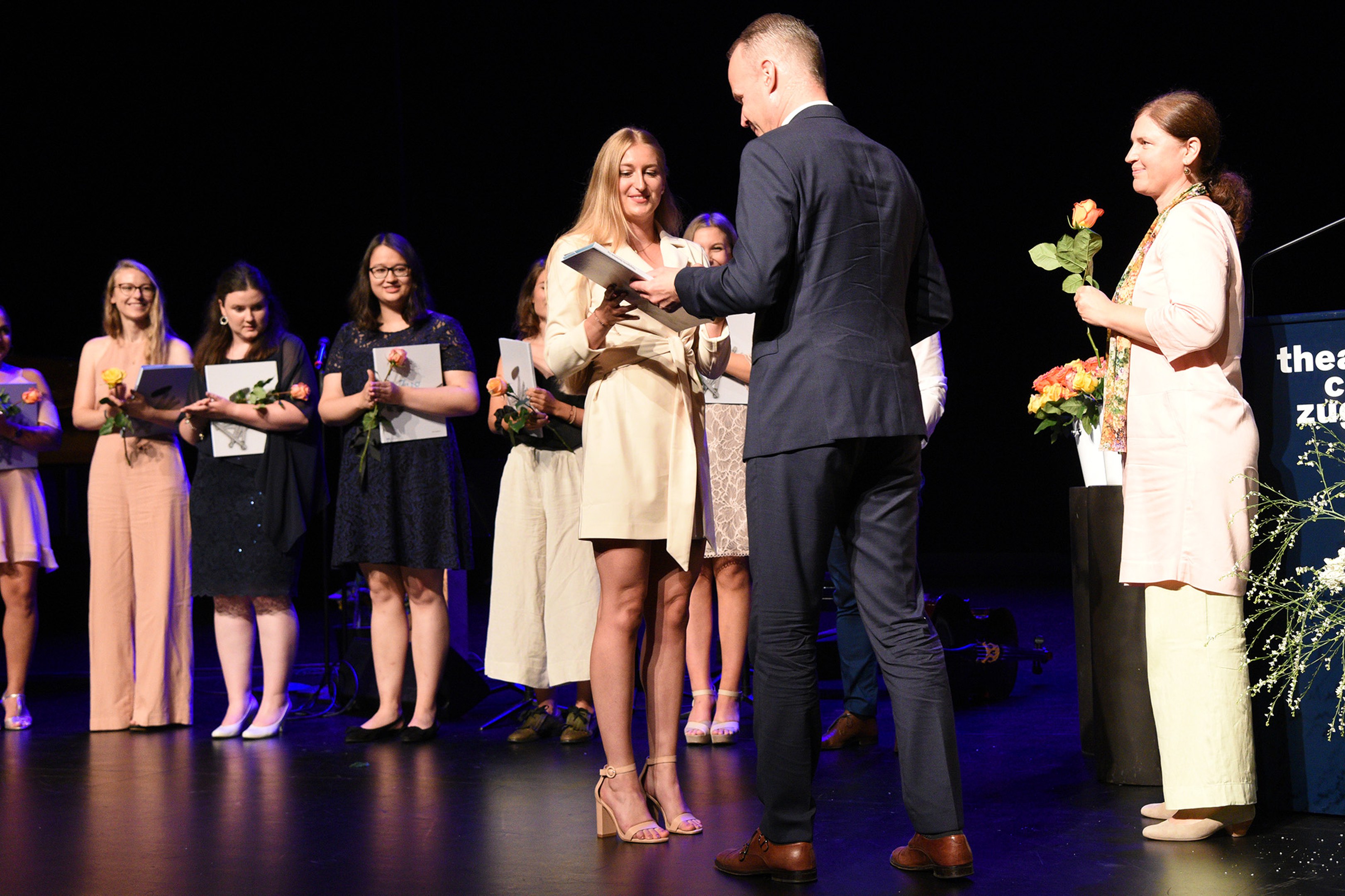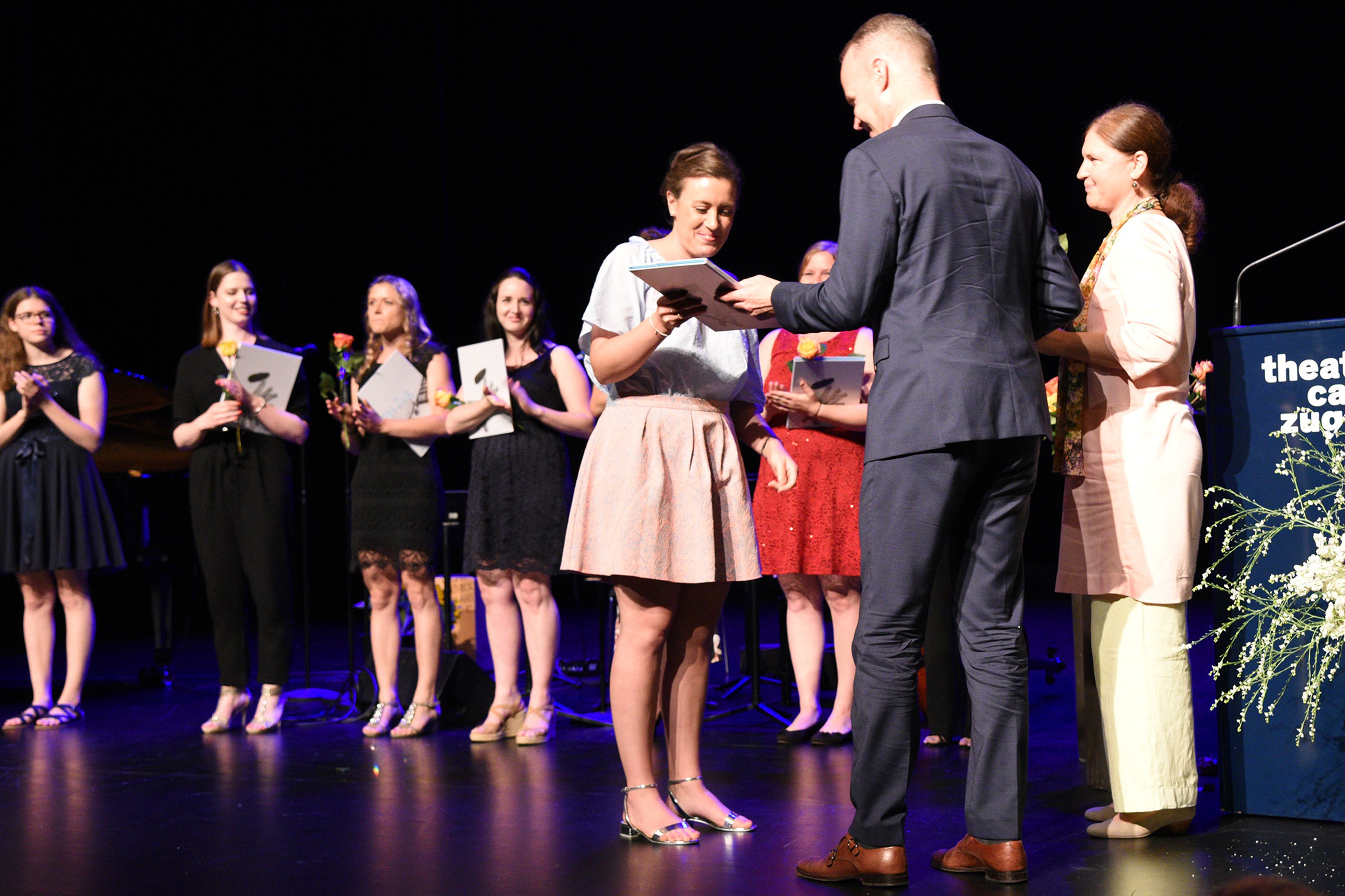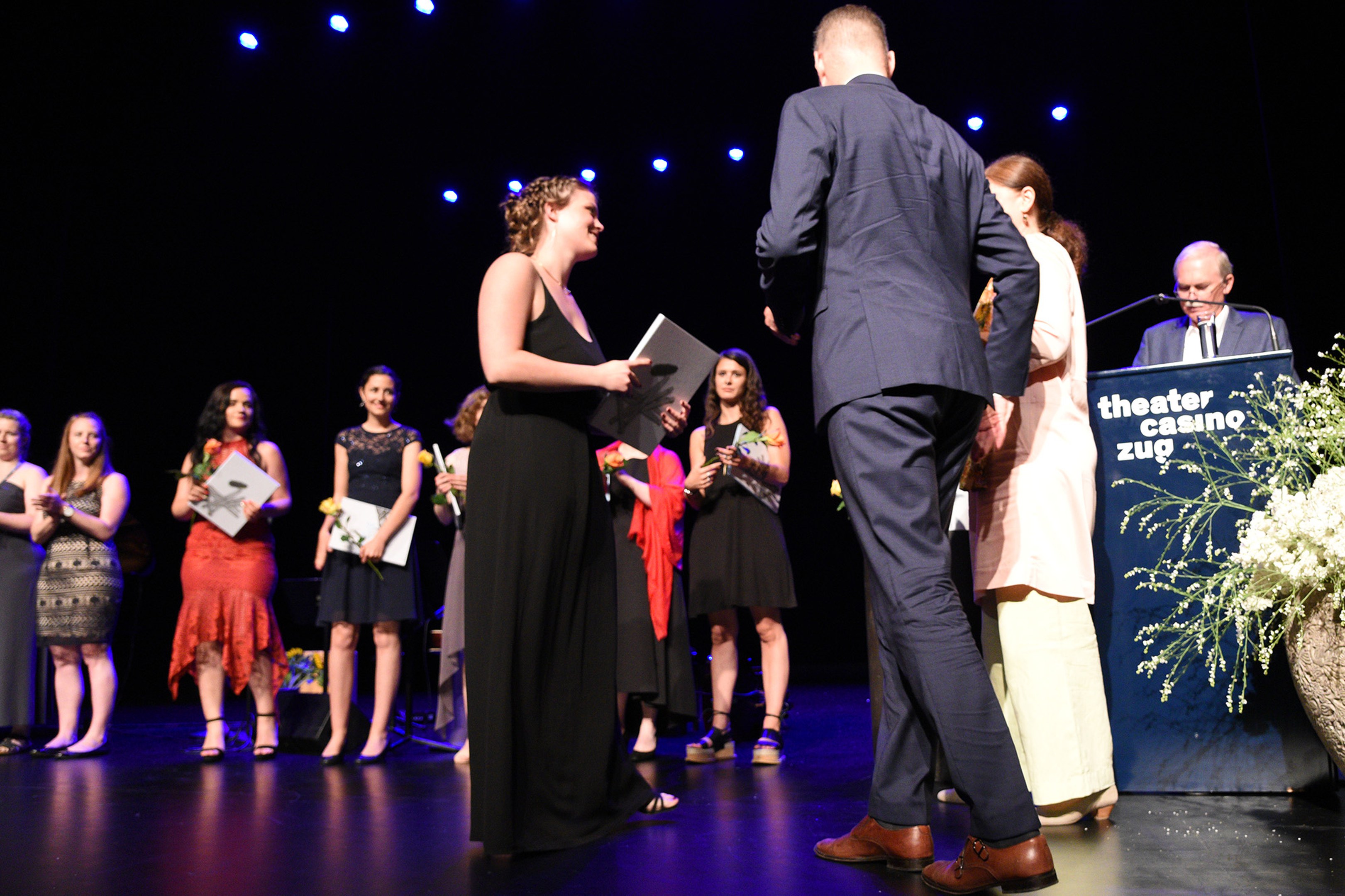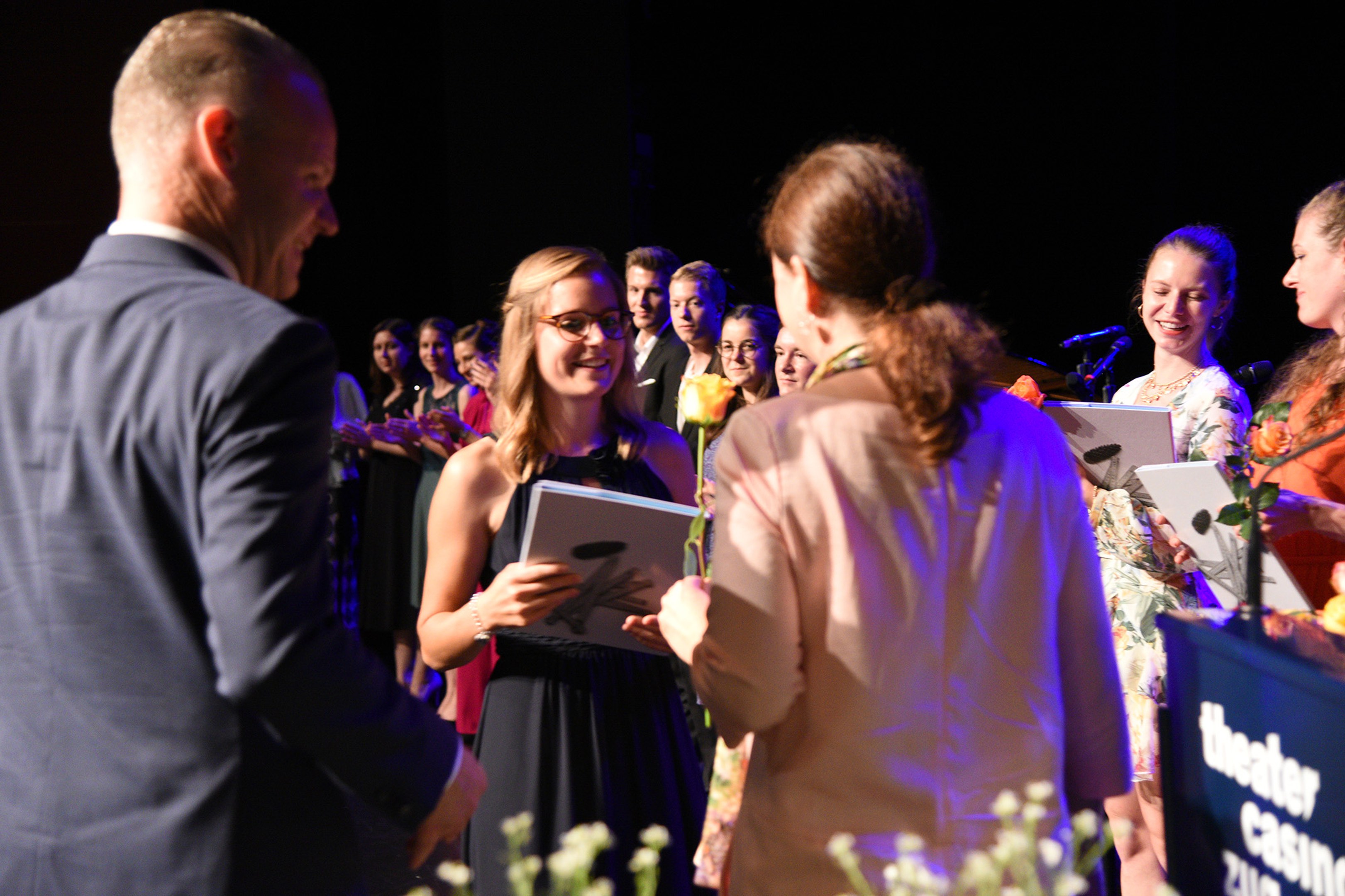 Moderiert wurde die Diplomfeier von Clemens Diesbergen, Prorektor und Leiter Ausbildung der PH Zug. Für die musikalische Umrahmung der im Theater Casino Zug durchgeführten Feier sorgten Studierende der PH Zug. Beim anschliessenden Apéro bot sich den frisch diplomierten Lehrpersonen die Gelegenheit, mit Eltern und Angehörigen sowie mit Dozierenden und Mitarbeitenden der PH Zug auf ihren erfolgreichen Abschluss anzustossen.