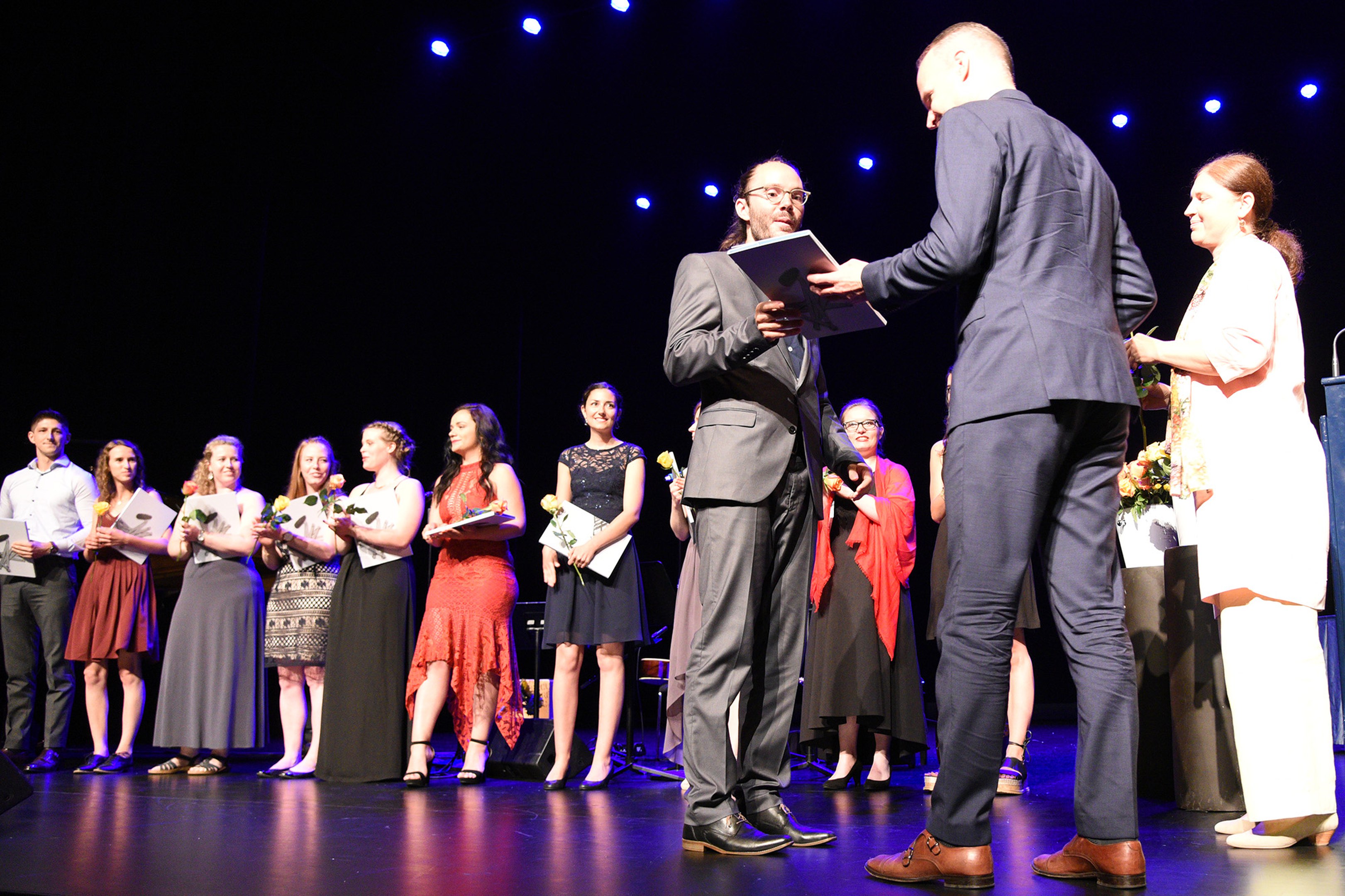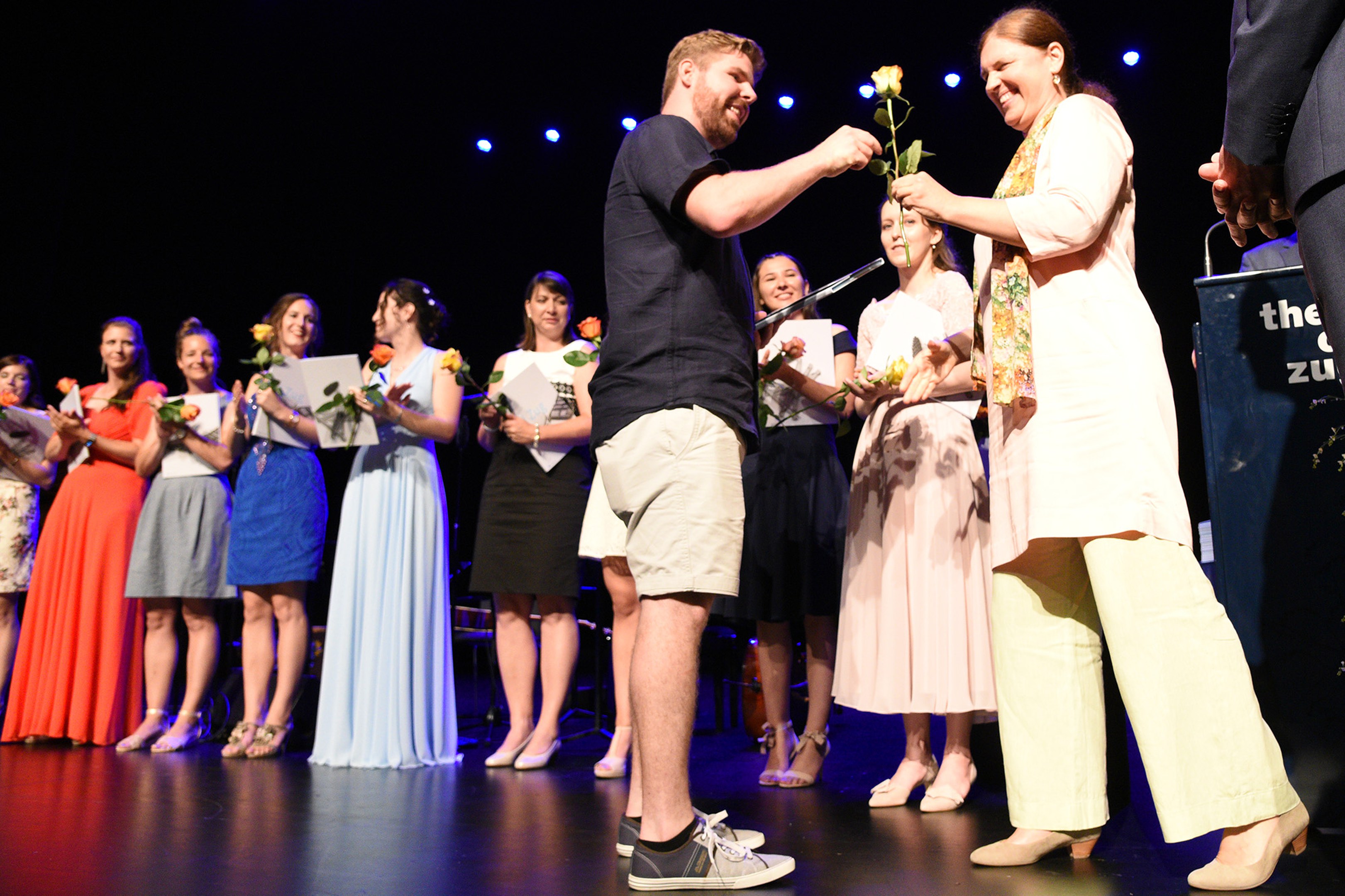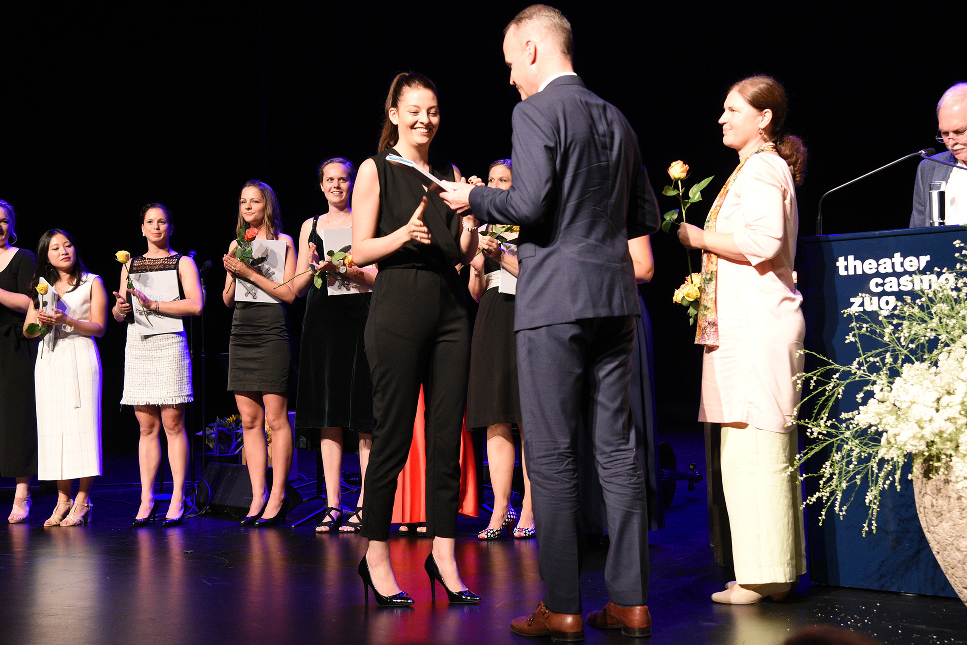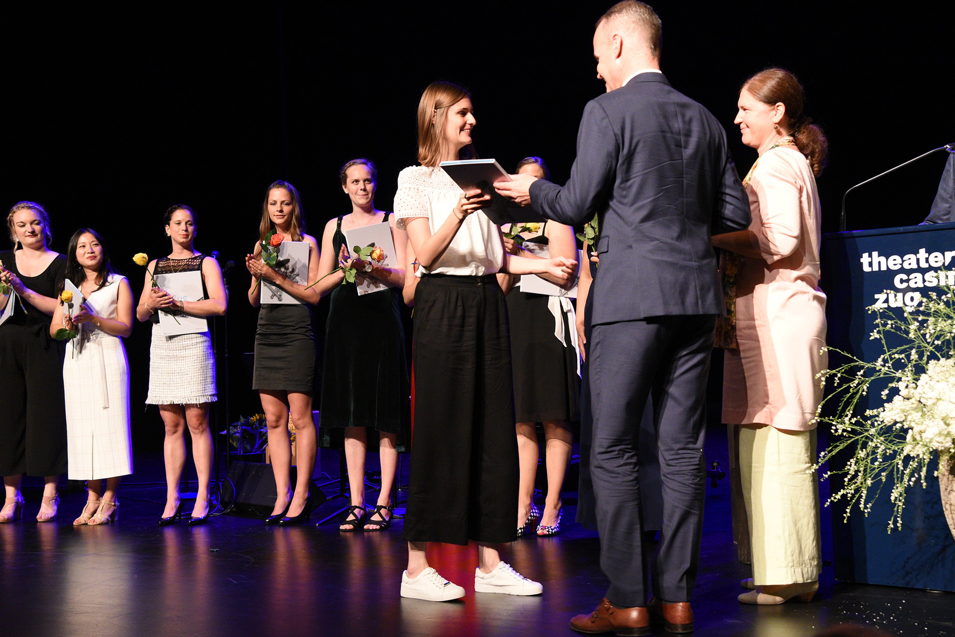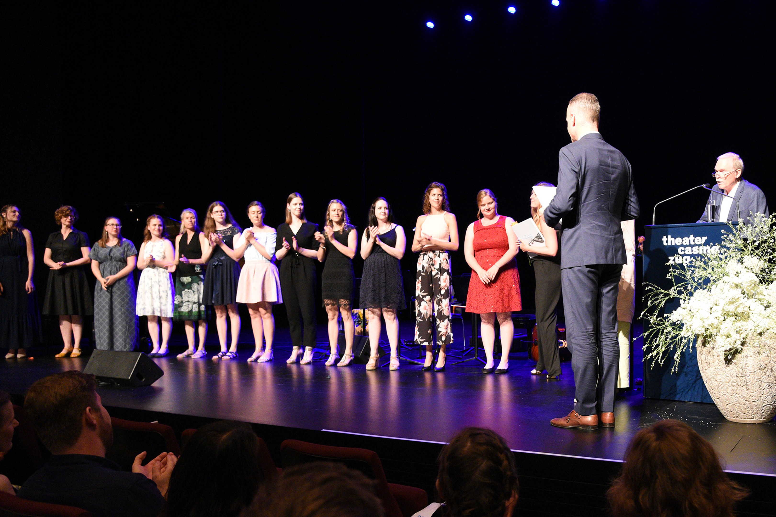 Moderiert wurde die Diplomfeier von Clemens Diesbergen, Prorektor und Leiter Ausbildung der PH Zug. Für die musikalische Umrahmung der im Theater Casino Zug durchgeführten Feier sorgten Studierende der PH Zug. Beim anschliessenden Apéro bot sich den frisch diplomierten Lehrpersonen die Gelegenheit, mit Eltern und Angehörigen sowie mit Dozierenden und Mitarbeitenden der PH Zug auf ihren erfolgreichen Abschluss anzustossen.
