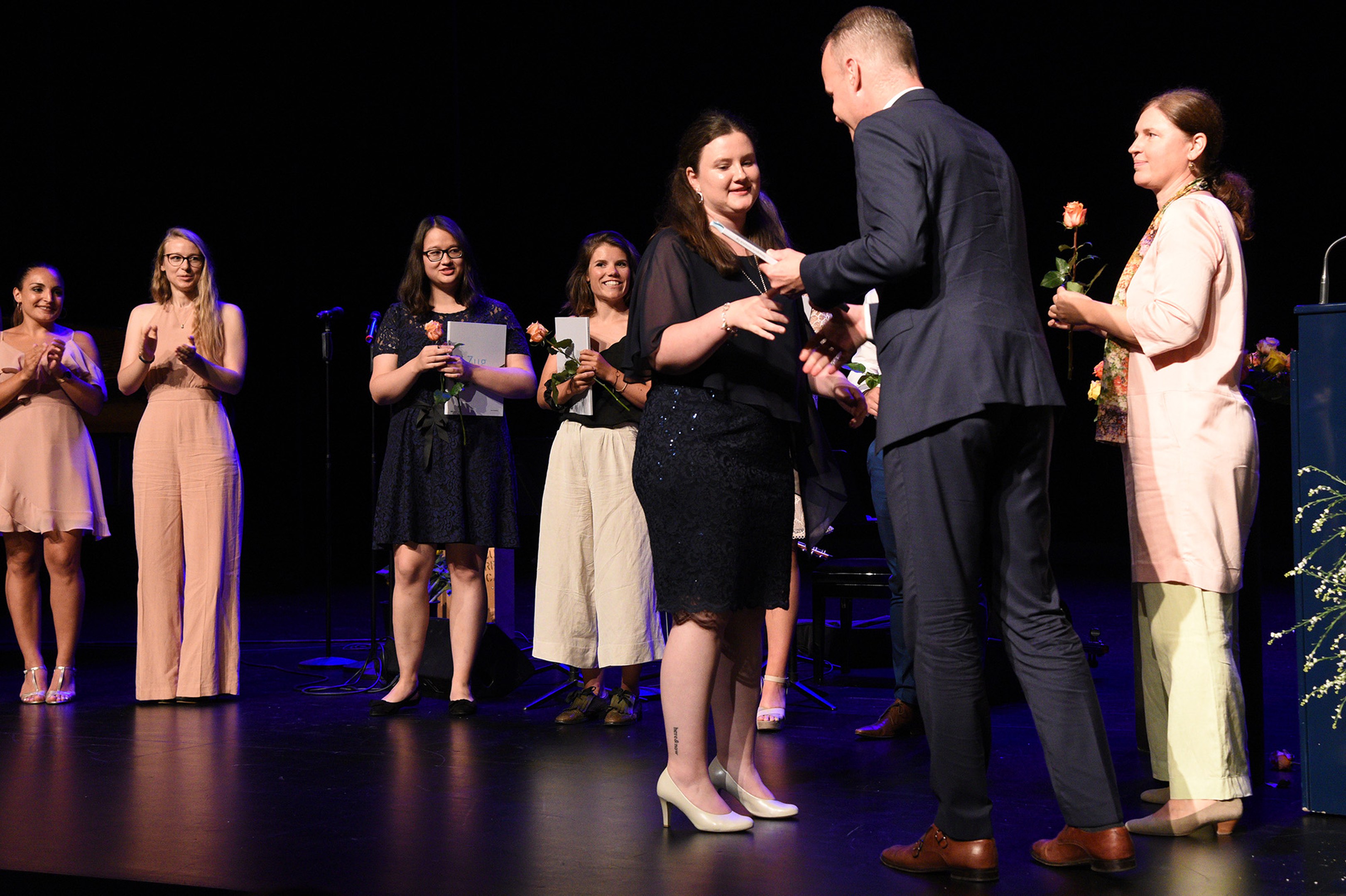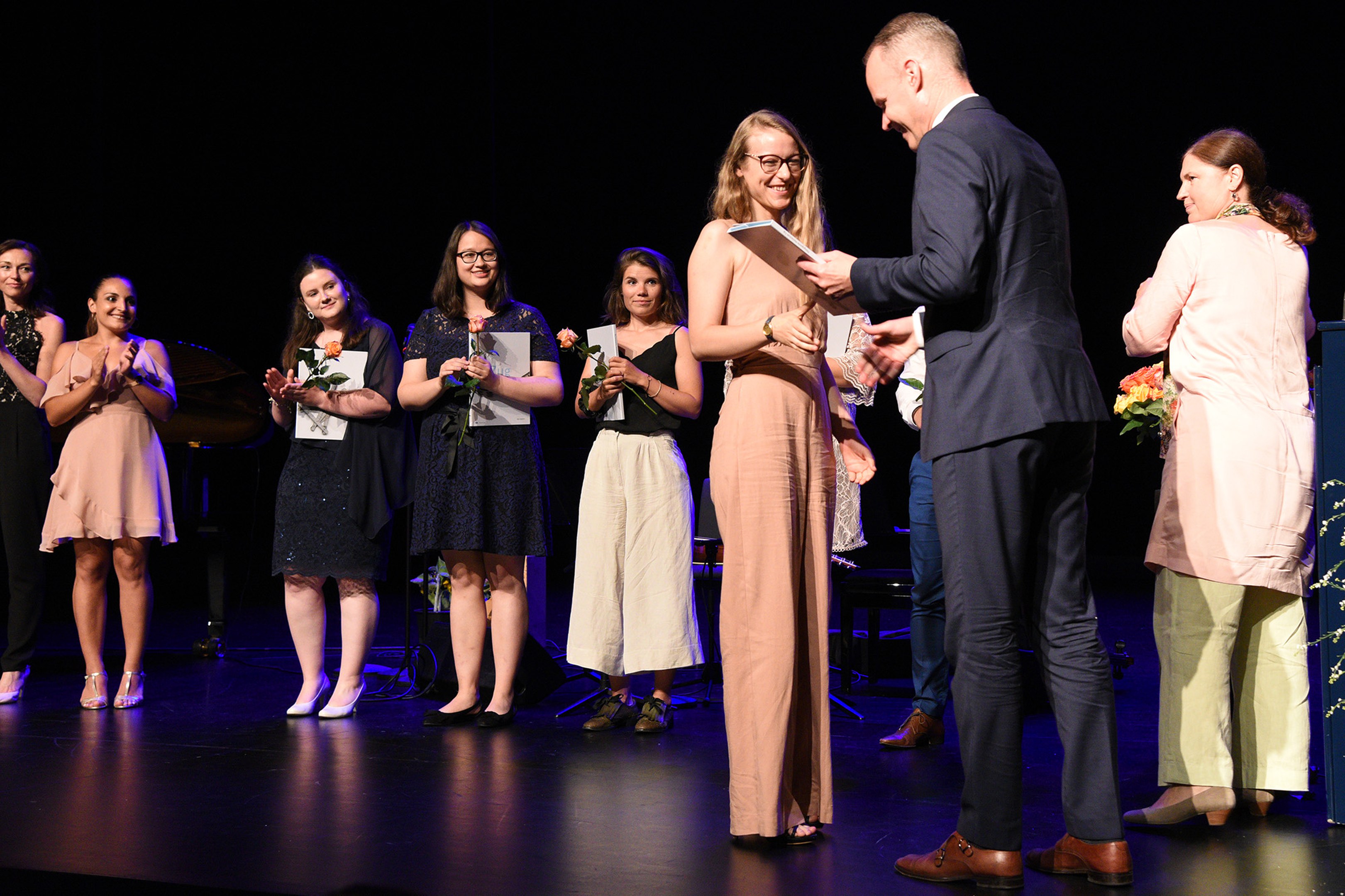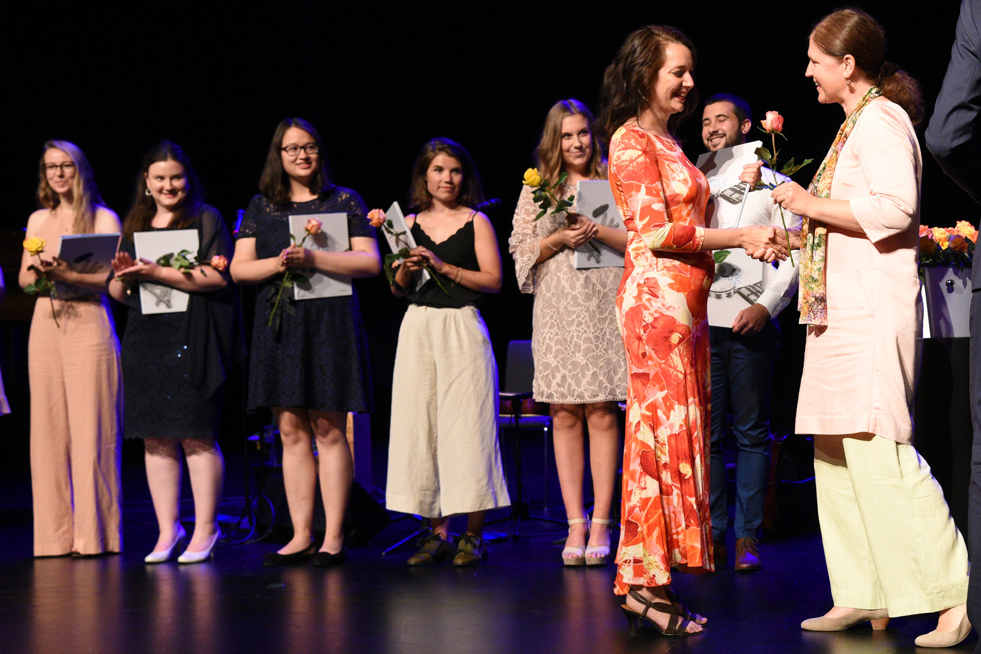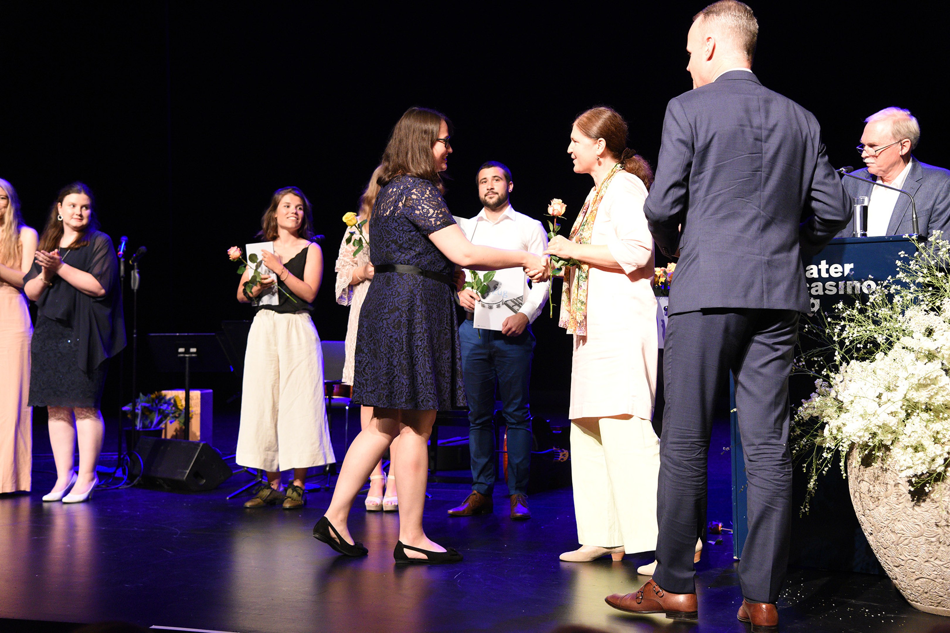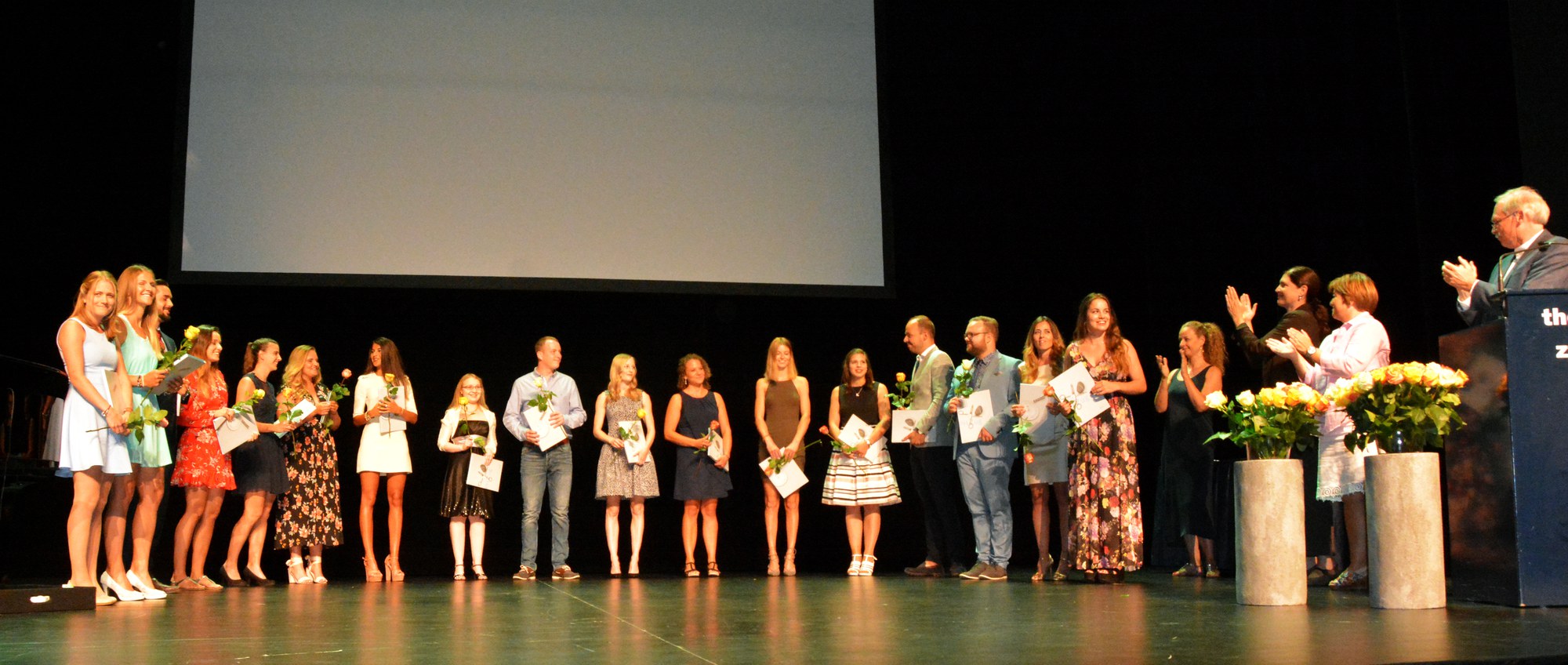 Moderiert wurde die Diplomfeier von Clemens Diesbergen, Prorektor und Leiter Ausbildung der PH Zug. Für die musikalische Umrahmung der im Theater Casino Zug durchgeführten Feier sorgten Studierende der PH Zug. Beim anschliessenden Apéro bot sich den frisch diplomierten Lehrpersonen die Gelegenheit, mit Eltern und Angehörigen sowie mit Dozierenden und Mitarbeitenden der PH Zug auf ihren erfolgreichen Abschluss anzustossen.