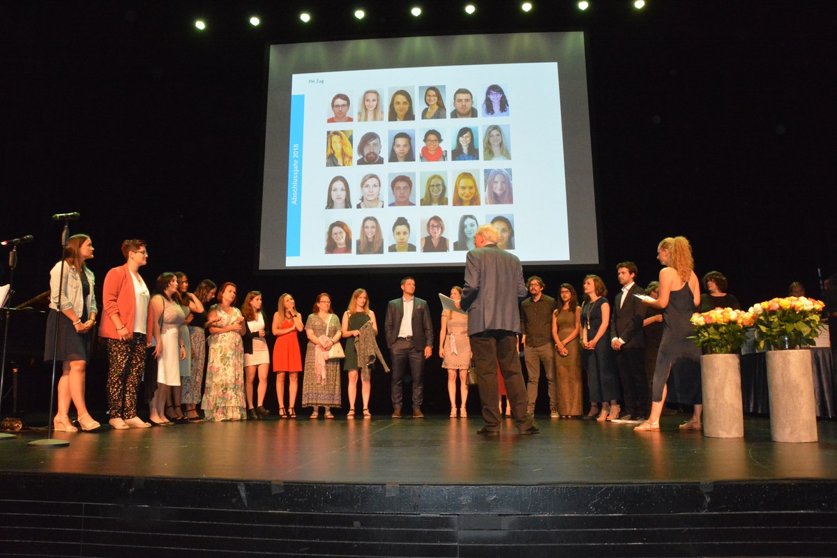 Am 28. Juni 2018 wurden 55 Primarlehrerinnen und Primarlehrer und 15 Lehrpersonen für Kindergarten und Unterstufe diplomiert. Als Lohn für ihre dreijährige Ausbildung überreichten Rektorin Esther Kamm und Vroni Straub-Müller, Mitglied Hochschulrat und Stadt- und Kantonsrätin Zug, den Absolvierenden der PH Zug das Lehrdiplom. Gleichzeitig erhielten die Studierenden des Abschlussjahrgangs auch die Bestätigung für ihren Bachelor-Abschluss. Acht Studierende wurden für herausragende Leistungen speziell gewürdigt: Serena Anania, Bonstetten; Marcel Bieri, Edlibach; Julia Dossenbach, Zürich; Sina Haas, Jonen; Sarah Huwyler, Hünenberg; Lea Jauch, Zug; Jonas Reding, Zug; Nicole Schneebeli, Küsnacht ZH.