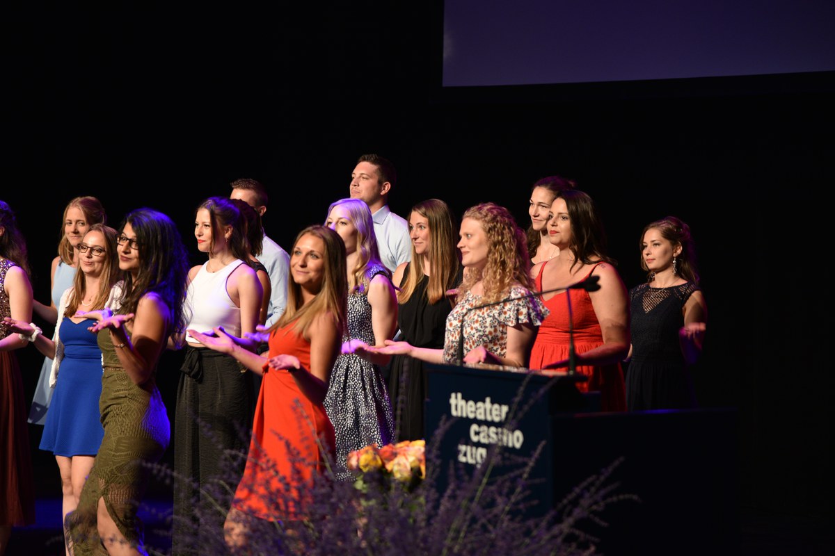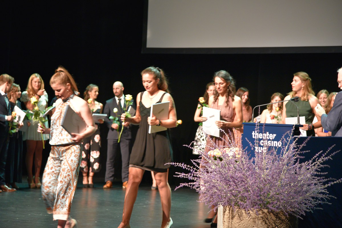 Fünf Studierende wurden für herausragende Leistungen speziell gewürdigt: Lucia Meier aus Neuheim, Fiona Schlegel aus Merenschwand, Anja Spadin aus Oberägeri, Jasmin Tiefenauer aus Hagendorn und Tanja Zürcher aus Cham.
