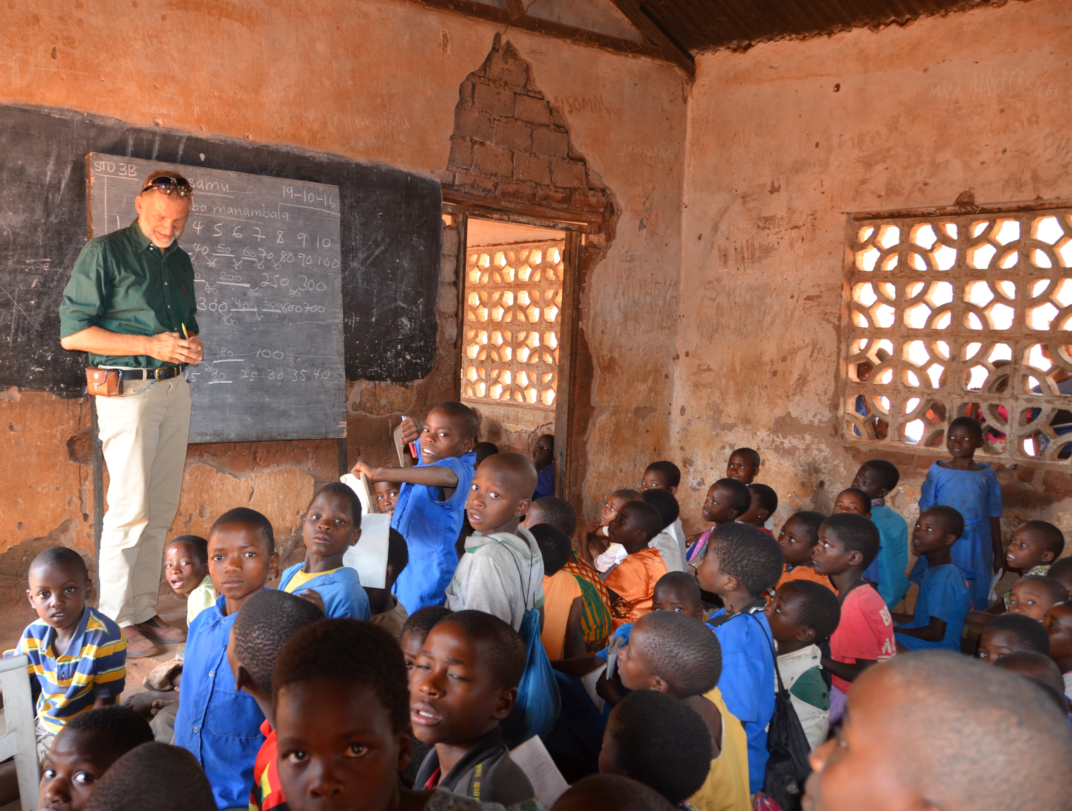 Jetzt stehe ich also da, vor mir ein 6 x 6 Meter grosser Raum mit rund 80 Kindern am Boden sitzend, hinter mir ein schwarz bemaltes Brett von der Grösse moderner Flachbildschirme – die Wandtafel. Die neugierigen Augen der Kinder auf mich gerichtet, mich, den Fremden, Weissen, der eigentlich nur eine Schule in Malawi in Afrika anschauen wollte.