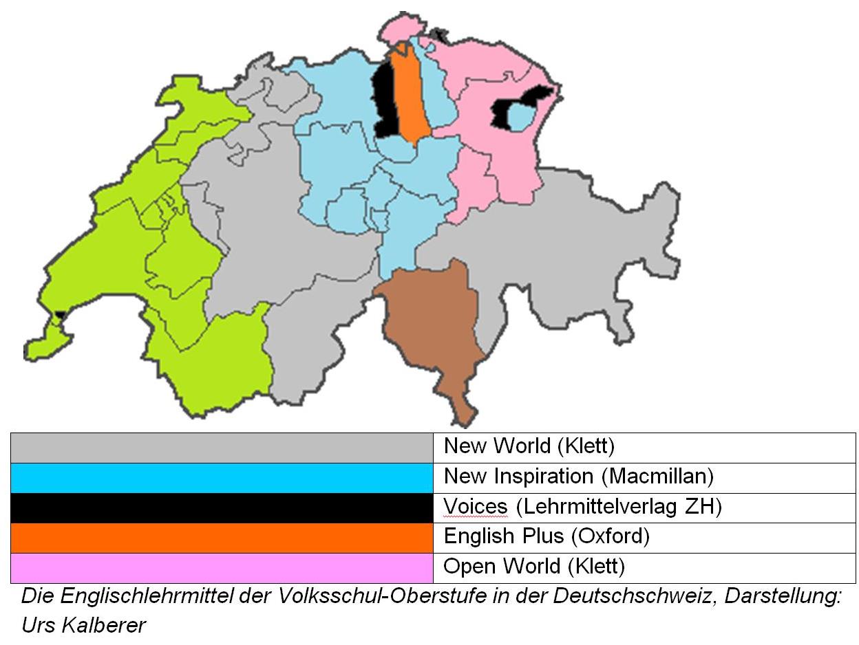 - Obwohl für die Deutschschweizer Kantone dieselben Ziele für den Englischunterricht gelten, werden dafür je nach Kanton andere Lehrmittel verlangt. Der Entscheid ist oft regional abgesprochen. Während Zug, zusammen mit seinen Zentralschweizer Partnern auf New Inspiration setzt, stützt sich Glarus zusammen mit anderen Ostschweizer Kantonen auf Open World. Grundsätzlich können die Lernziele aber mit verschiedenen Lehrmitteln erreicht werden.