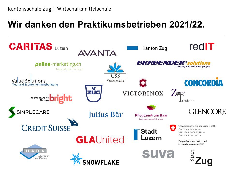 Wir danken diesen Betrieben, die im Schuljahr 2021/22 unsere Lernenden im Langzeitpraktikum ausbilden:
