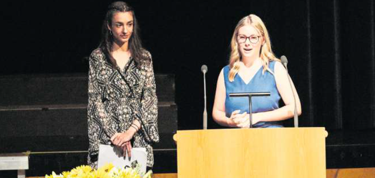 Die Festansprache hielten Imke Keimer, Professorin an der Hochschule Luzern – Wirtschaft und die Absolventinnen Tanisha Giger und Nadine Seiler. Die Wirtschaftsmittelschule (WMS) Zug bildet jährlich rund 130 Schülerinnen und Schüler aus. Diese erhalten nach vier Jahren den Berufsabschluss als Kauffrau/Kaufmann mit dem Eidgenössischen Fähigkeitszeugnis bescheinigt. Gleichzeitig erhalten Sie bei erfolgreichem Abschluss die Berufsmaturität kaufmännische Richtung, die ihnen den prüfungsfreien Weg an die Fachhochschule ermöglicht.