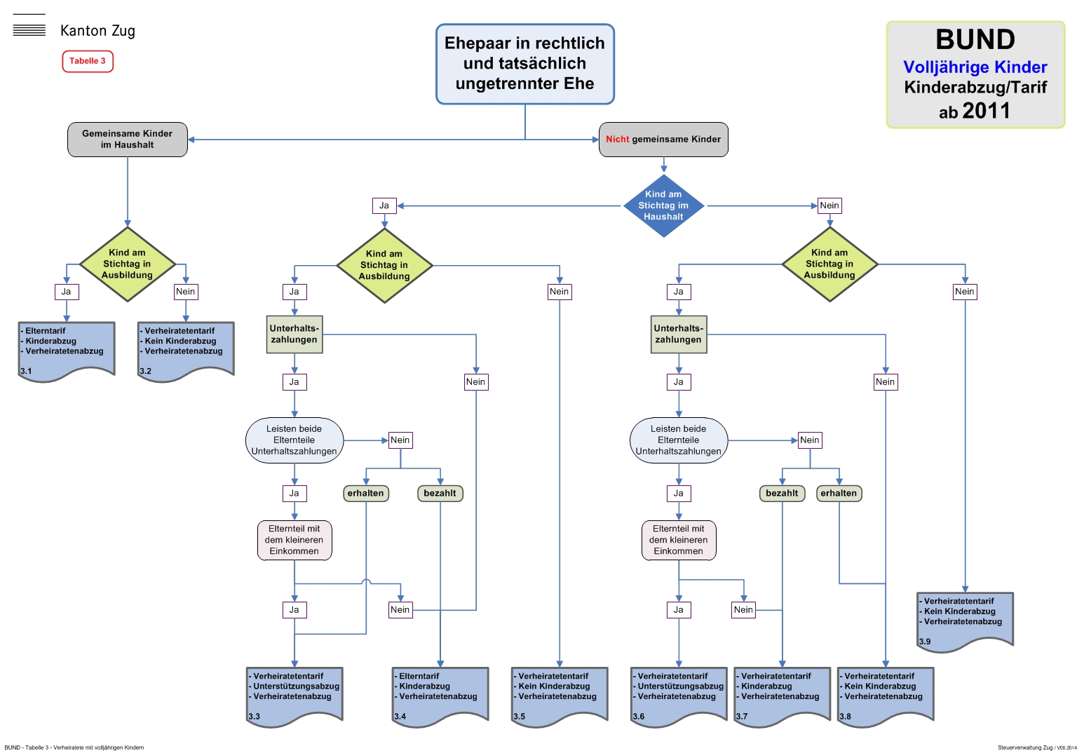 - Tabelle 3: Ehepaar in rechtlich und tatsächlich ungetrennter Ehe mit volljährigen Kindern.