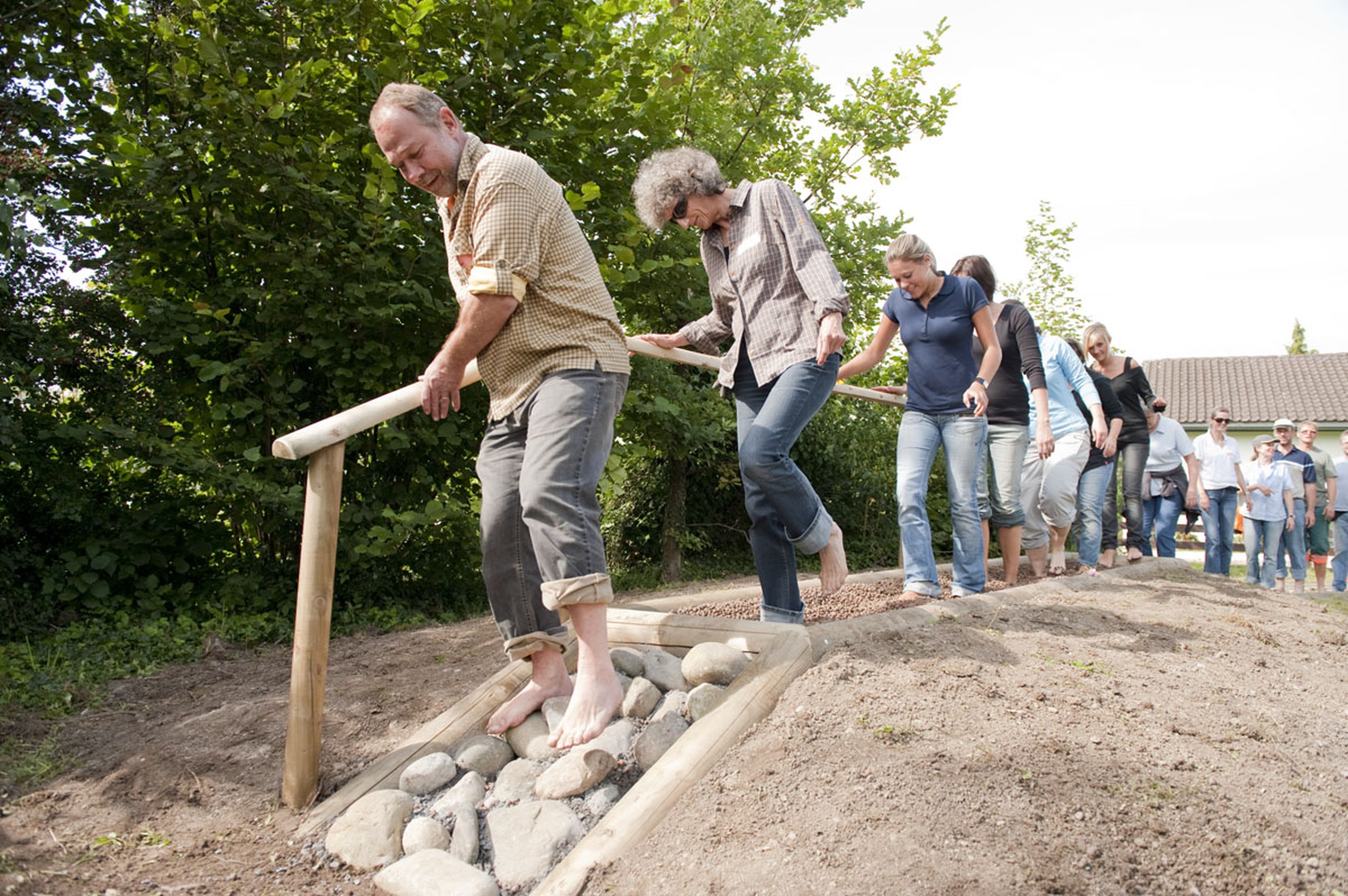 Die Gemeindeverwaltung Hünenberg durfte gemeinsam einen Barfussweg gestalten.