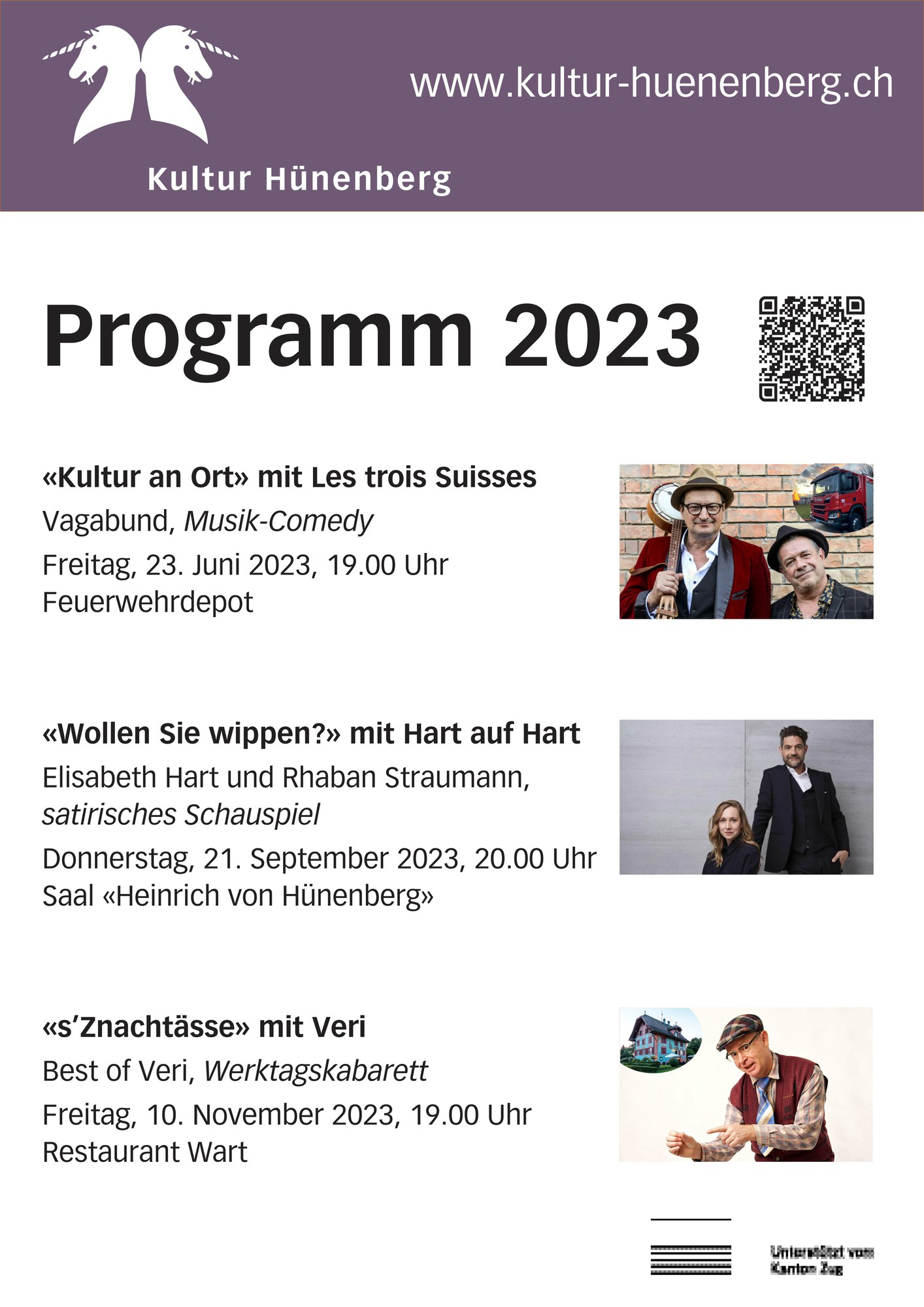 | Vorverkauf | Gemeinde Hünenberg, Tel. 041 784 44 44, Keine Abendkasse, Platzzahl beschränkt. |