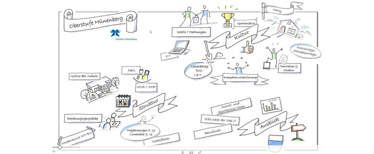 Überblick über die Hünenberger Schulen, ihre Dienstleistungen und ihre Struktur