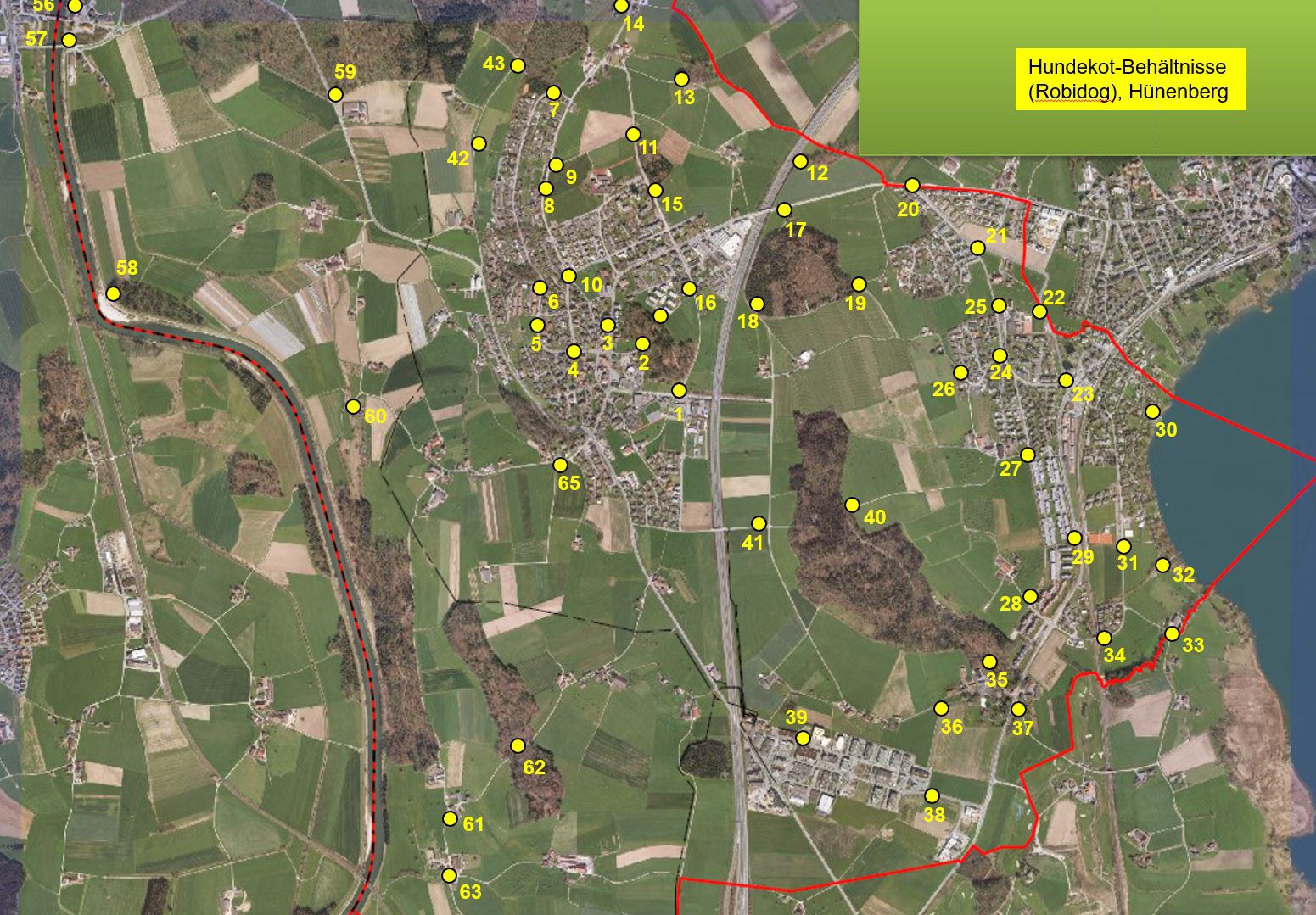 Die Gemeinde Hünenberg stellt Hundekot-Container (Robidog) zur Verfügung. Hier finden Sie eine Übersicht der Standorte.