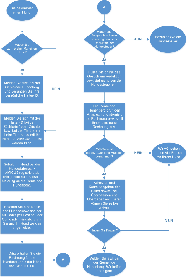 Am 1. Januar 2016 wurde die nationale Hundedatenbank AMICUS in Betrieb genommen. Sie löste die ehemalige Datenbank ANIS ab. Es wurden alle Daten übernommen. Die Hundehalterin bzw. der Hundehalter ist dafür verantwortlich, dass der Hund in der Hundedatenbank AMICUS korrekt registriert ist.